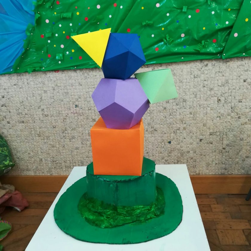 Osservando il cappello di Poliedro noi, bambini e bambine di 3 anni, abbiamo scoperto che le strane figure colorate che lo sormontano sono forme geometriche… a dir la veritá ancora troppo complesse per conoscerle e studiarle…