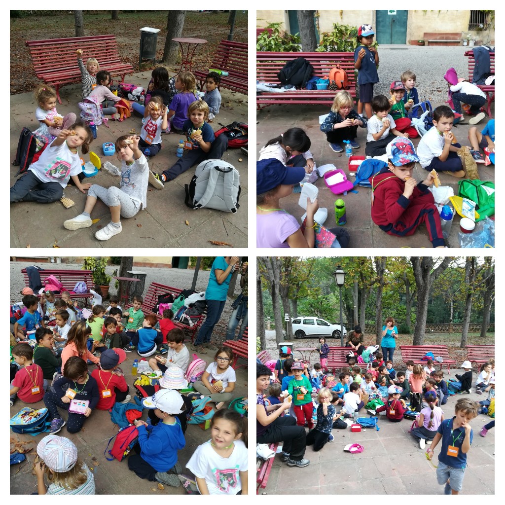 Il giorno dopo, a scuola, in grande assemblea, ci siamo raccontati le nostre avventure e abbiamo mostrato i ritrovamenti ai compagni. Una bottiglia con strati di pietre, sabbia e terra e tante immagini che ci ricordano i colori dell’autunno, gli alberi e i suoi frutti.