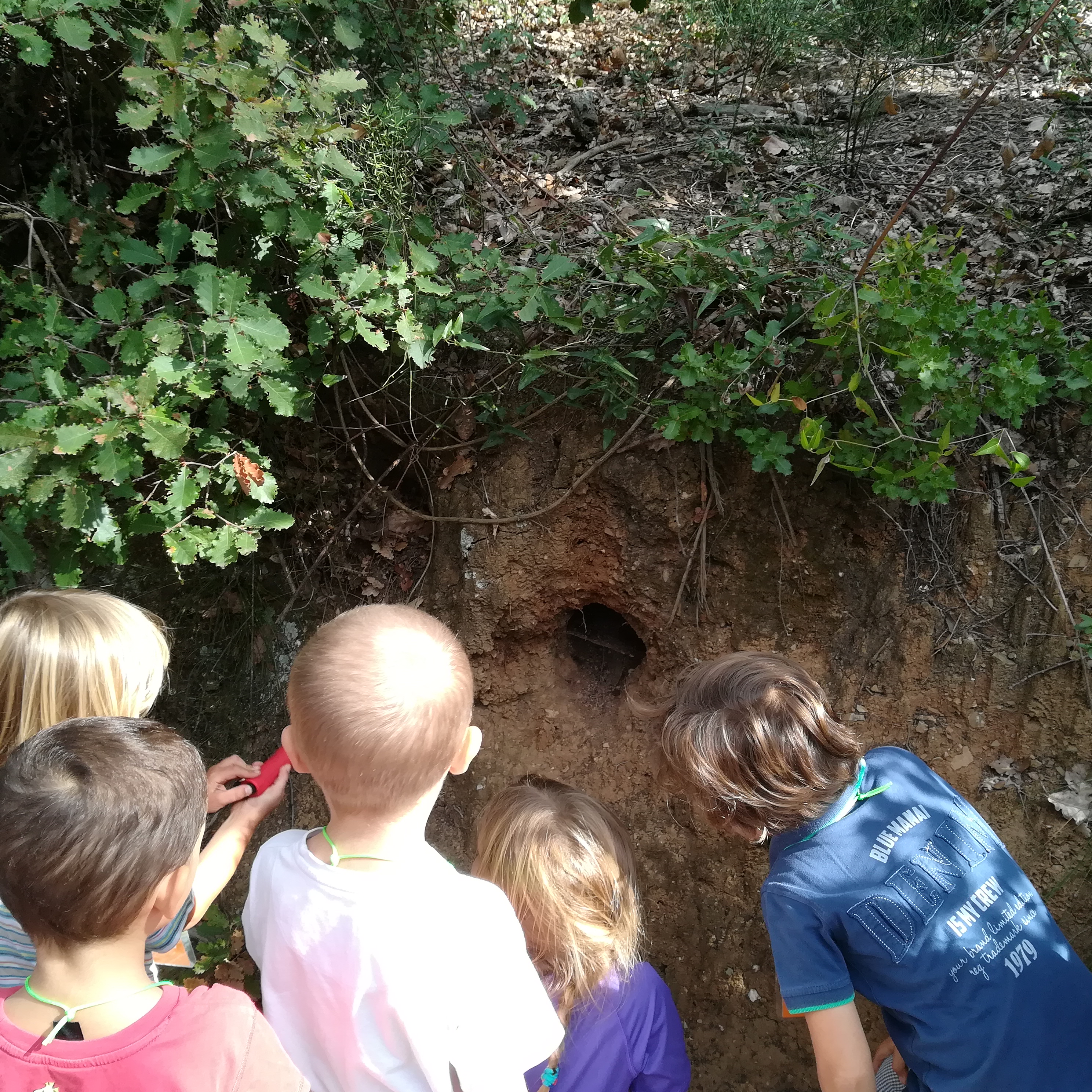 … Hanno trovato tracce lasciate da animali come il cinghiale, la volpe o il topolino da bosco. Anche la tana di un animale silvestre!
