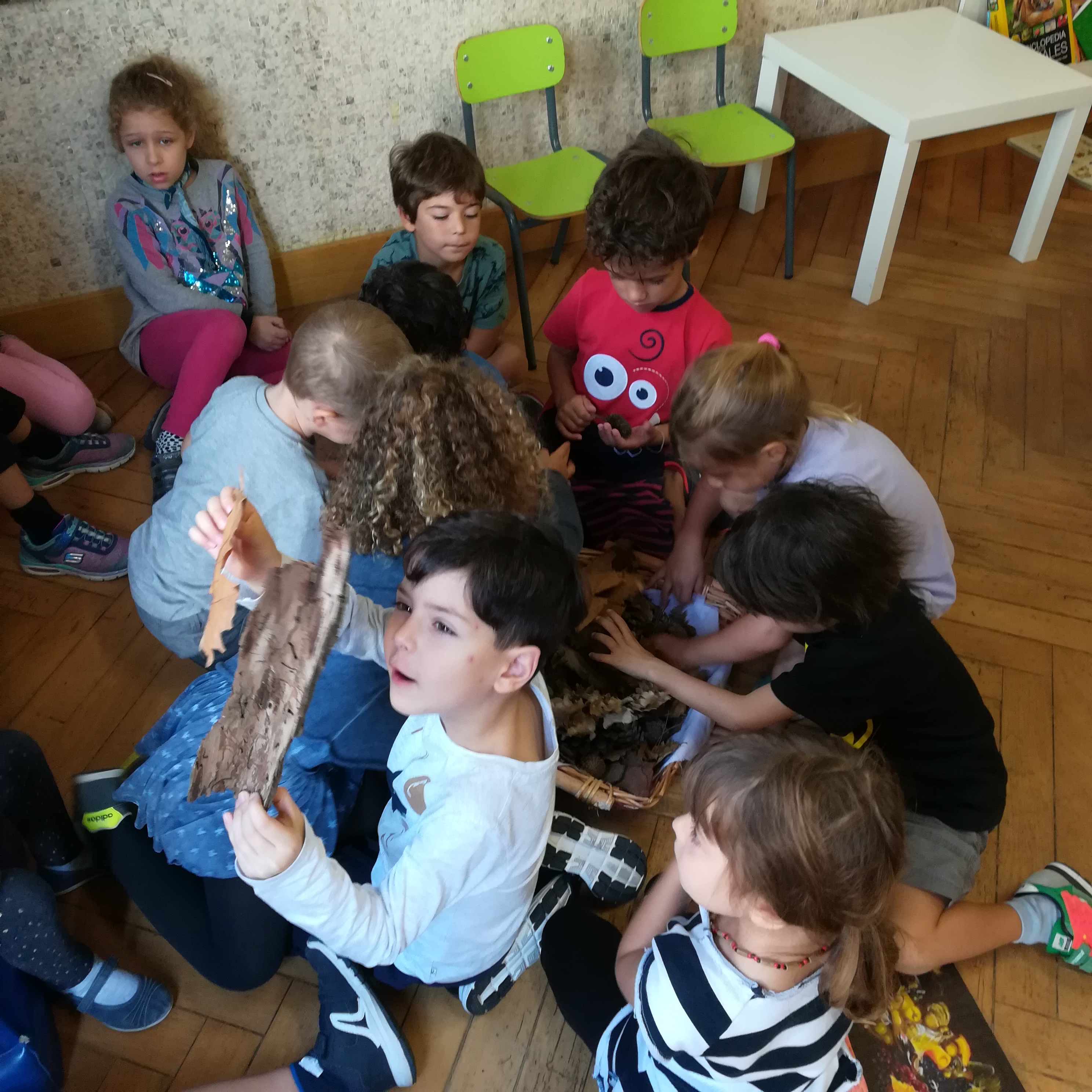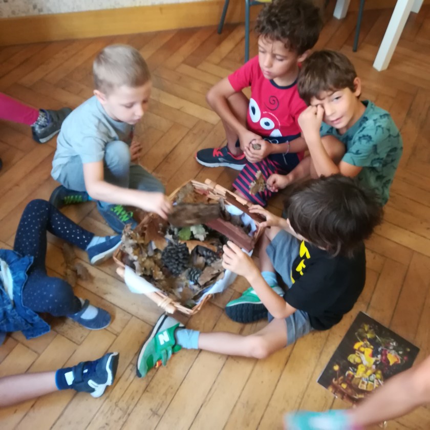 La raccolta fatta nel bosco di “Can Catà” è servita come spunto ai bambini di 5 anni per studiare e manipolare diversi materiali. Studieremo i minerali, esperimenteremo con l’argilla, ci lasceremo portare dai colori e dai profumi d’autunno per addentrarci nel mondo dell’arte: Arcimboldo, Van Gogh, Klimt…