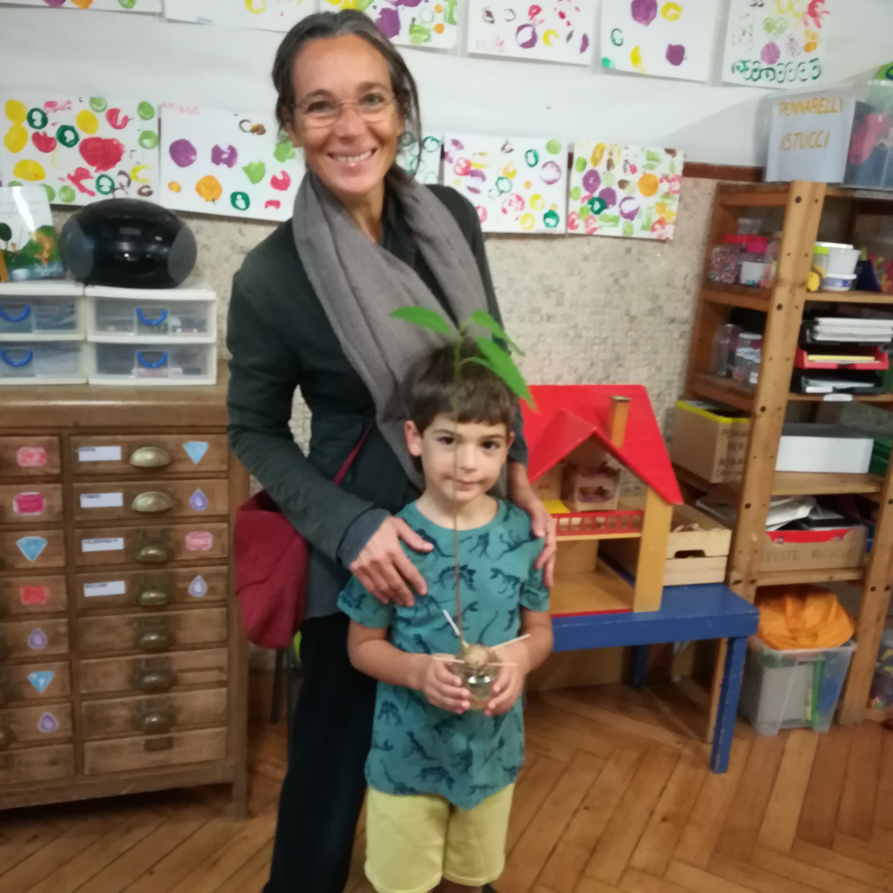 Questa mattina è arrivato Elías con una sorpresa speciale per i suoi compagni. Una pianta di avocado.
