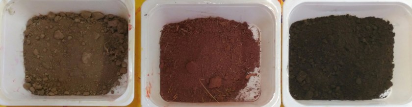 Mescolando i diversi tipi di terra con acqua e colla otteniamo diverse tonalità di marrone per dipingere dando via libera alla nostra fantasia.