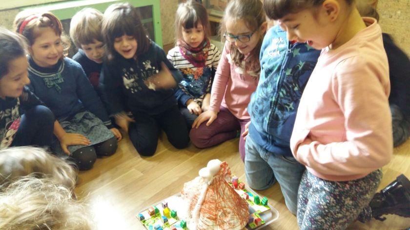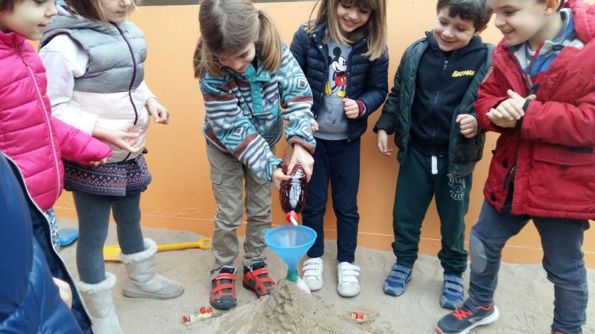 Tutti insieme abbiamo costruito dei vulcani sia con la sabbia che con il cartoncino e creando una reazione chimica con il bicarbonato e l’aceto abbiamo fatto fuoriuscire la lava. È stato divertentissimo!!!