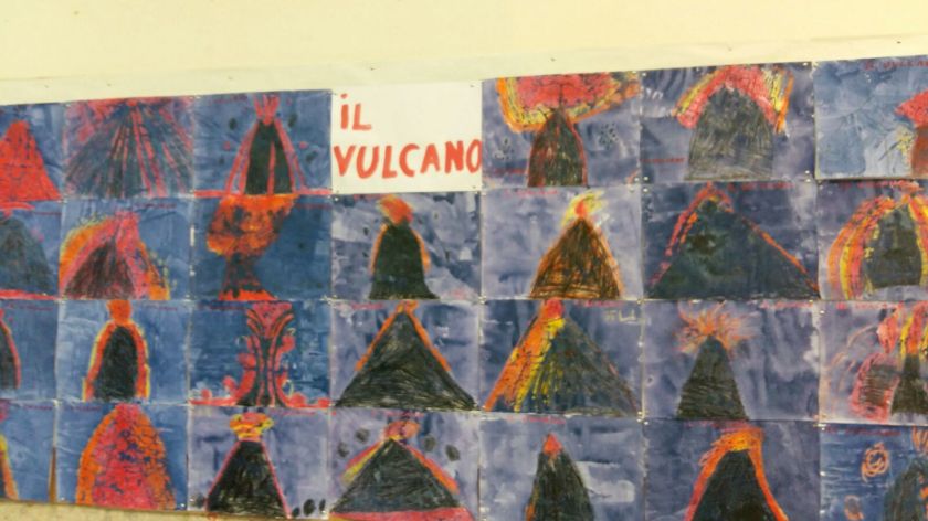 Ci siamo chiesti come mai fuoriesce la lava dai vulcani. E abbiamo espresso le nostre idee: ” Sotto la terra c’è un drago di fuoco che sputa fuoco dai vulcani”, “la lava è bollente ed esce fumo”, ” quando la lava si raffredda diventa pietra” “dentro la terra c’è un cuore di fuoco”.