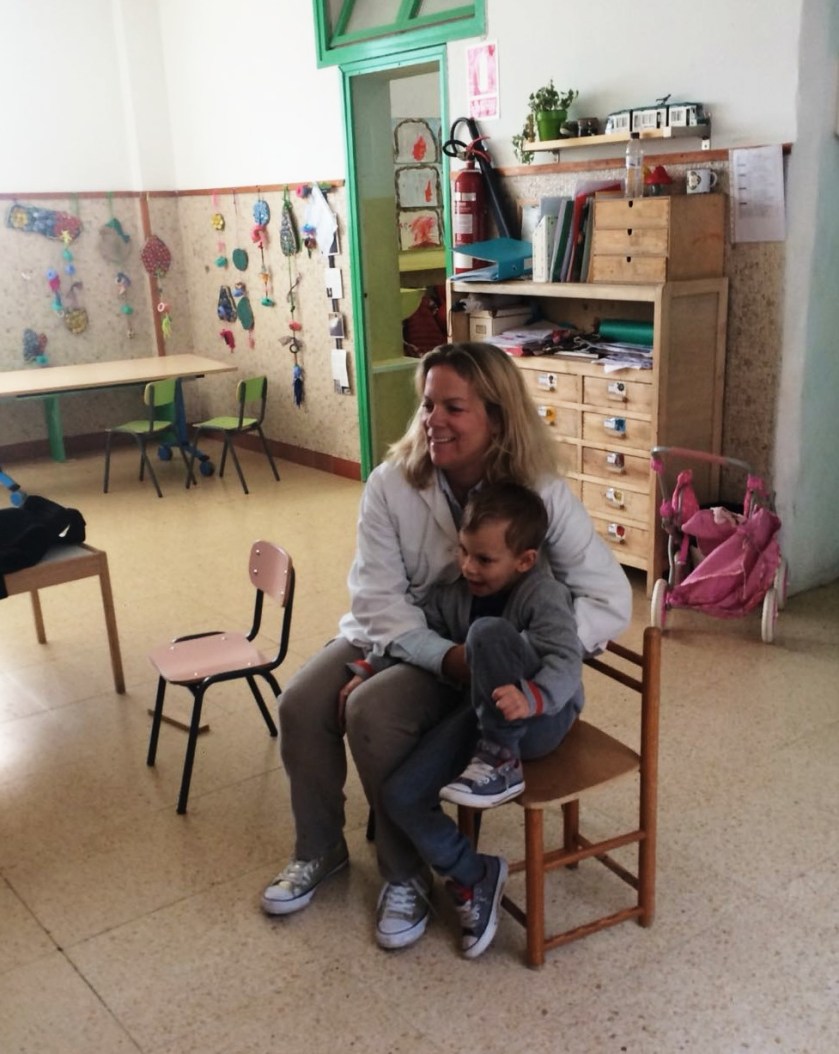 Oltre ai libri ci ha portato tre grandi cartelloni disegnati da lei con grande maestria, per farli decorare dai bambini con la pittura..