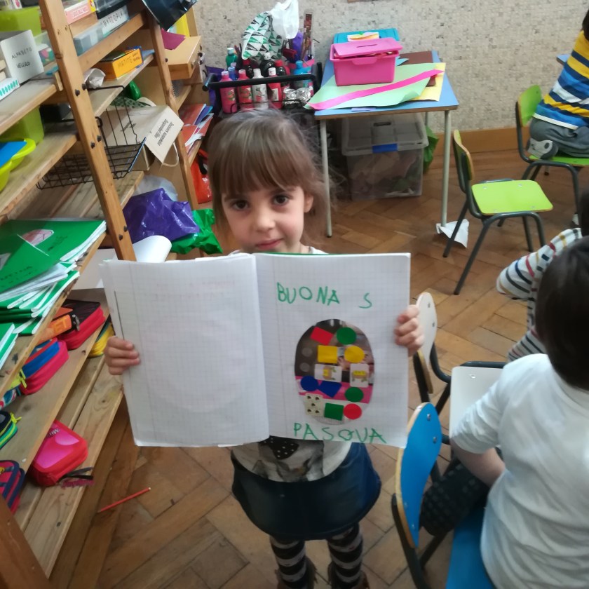 Noi abbiamo preso come ispirazione le uova che ha portato già decorate per preparare il nostro biglietto di Pasqua.
