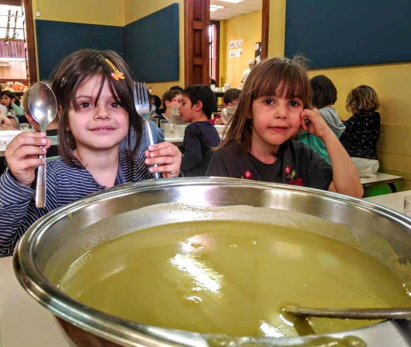 Oggi abbiamo mangiato una deliziosa crema di piselli, ancor piú buona perchè i piselli li abbiamo sgranati proprio noi!!!