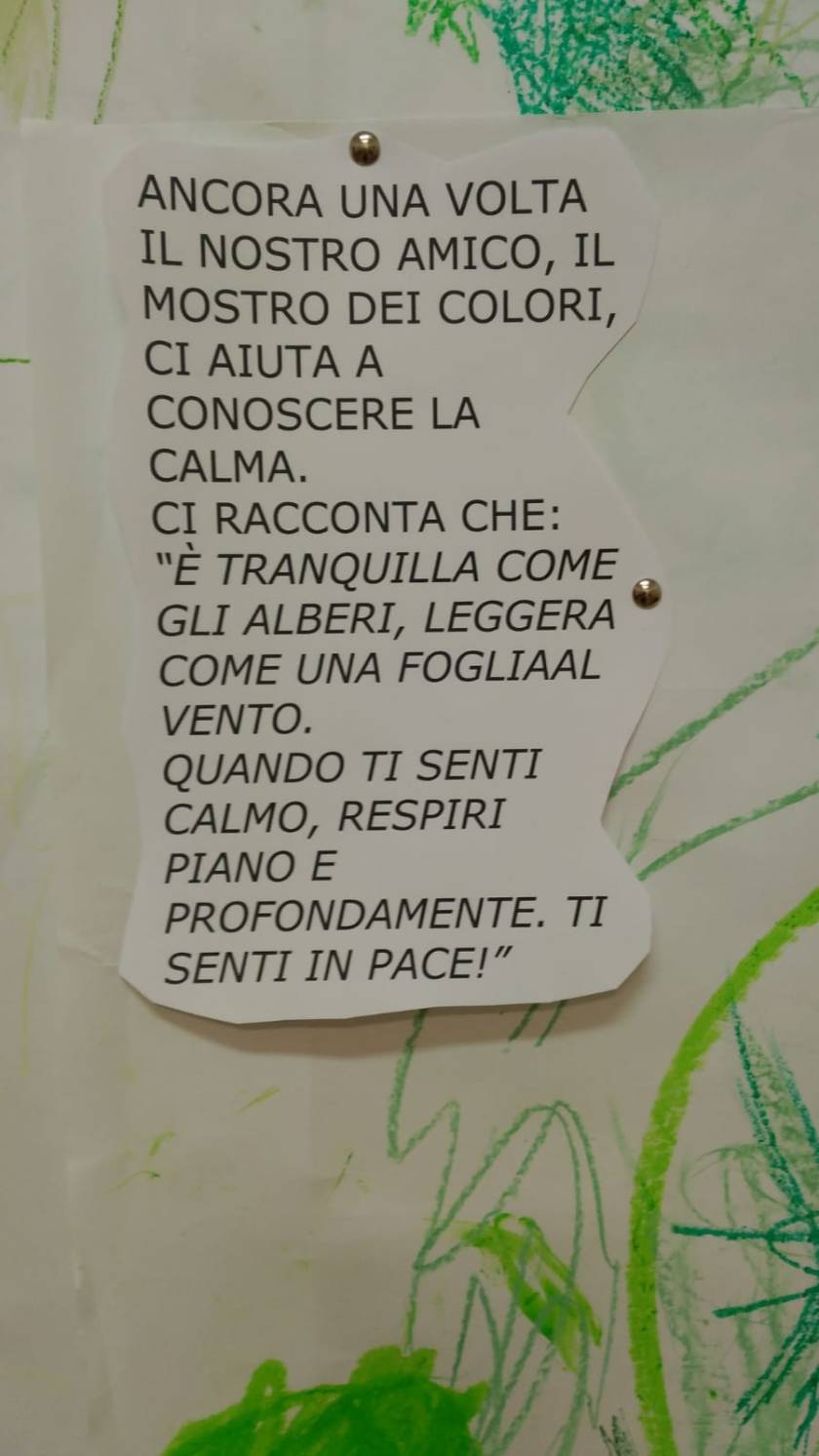 Proviamo a immaginare come si stava nel pancione della mamma! Era un posticino tranquillo! Ci stendiamo e ascoltiamo una musica rilassante e continuiamo ad ascoltare la musica dipingendo su fogli grandi liberamente.