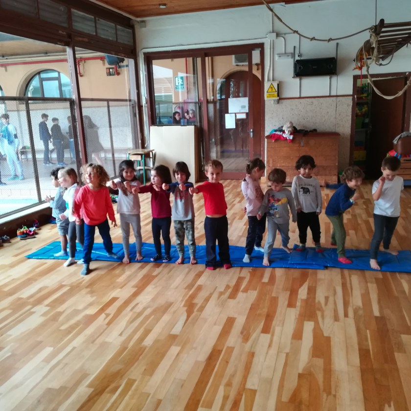 Continua il nostro progetto sul movimento ed esperimentazione corporea attraverso lo spazio e con il materiale della palestra.
