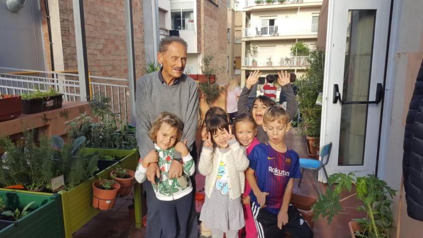 Il nonno di Lavinia é venuto ad aiutarci a ripulire e sistemare il nostro orto.
