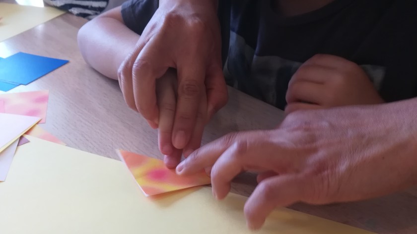 L’immersione culturale ha proseguito elaborando dei bellissimi biglietti di auguri. Hanno scoperto che la scrittura è molto particolare, molti hanno potuto vedere il proprio nome scritto in giapponese.