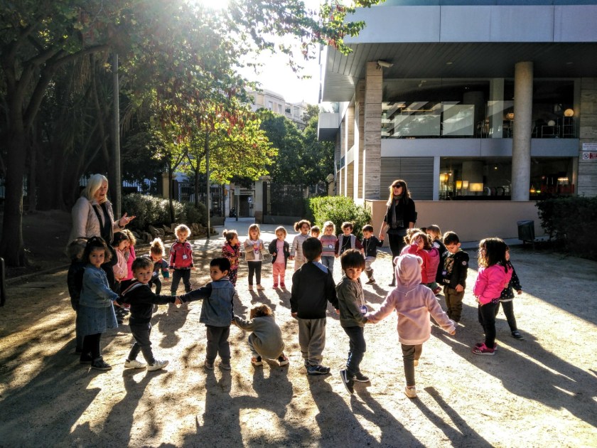 Oggi, approfittando del bel tempo, gli esploratori e esploratrici di 3 anni sono andati a passeggiare in quartiere. Lungo la strada ci siamo imbattuti in un parco e là ci siamo fermati a giocare!