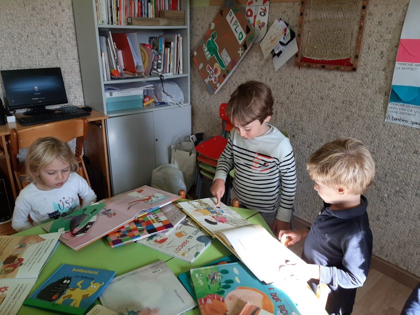 Ogni martedi svolgiamo l’attivitá del prestito dei libri. Ci piace tanto sfogliarli e scambiarci opinioni. Infine scegliamo il libro che piú ci piace per leggerlo a casa.