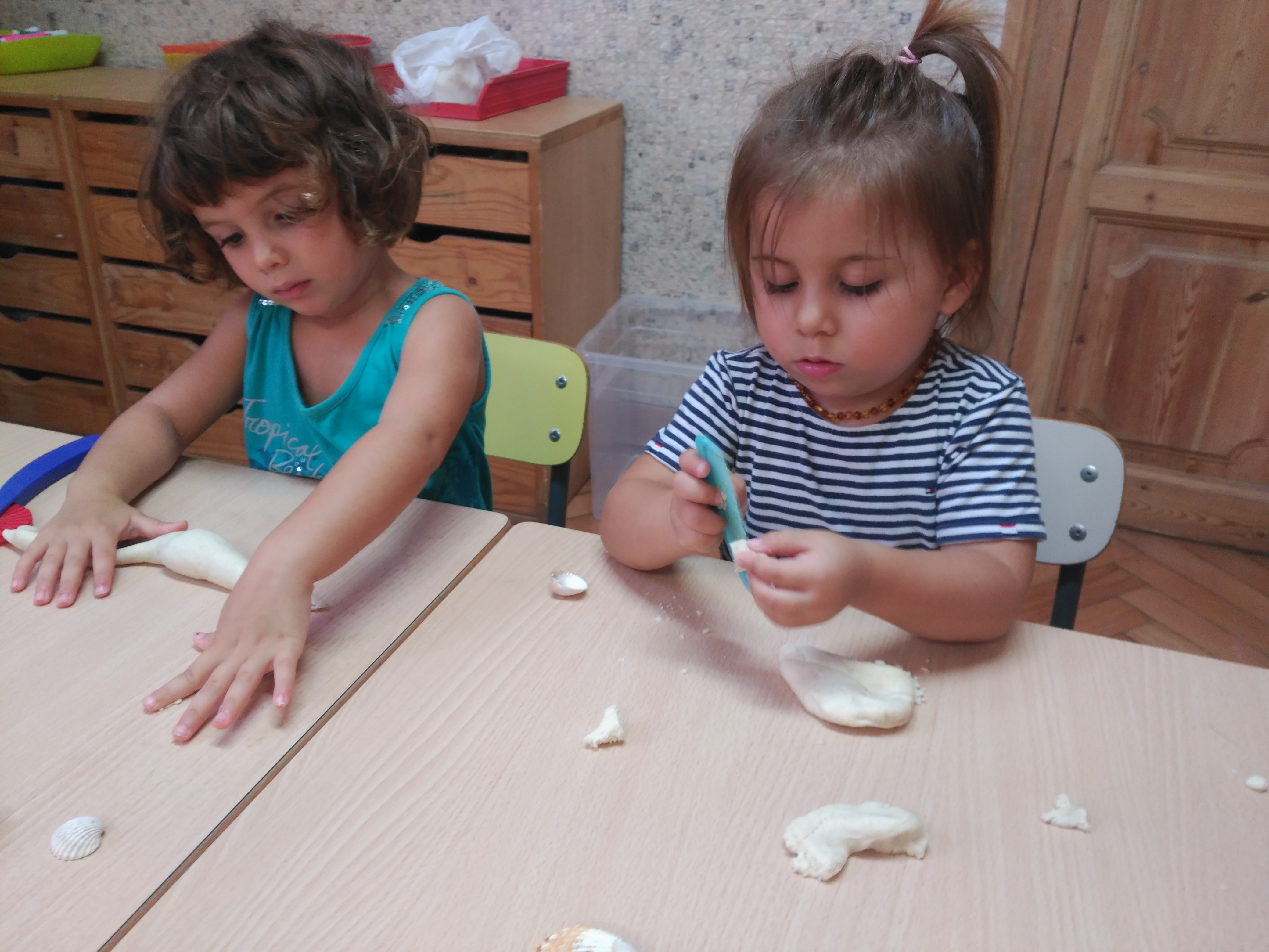 Acqua, sale e farina: impastiamo e otteniamo la pasta di sale, con oggetti naturali poi lasciamo le tracce. Il contatto delle dita con la pasta di sale è oggetto di molte conversazioni e sorprese.