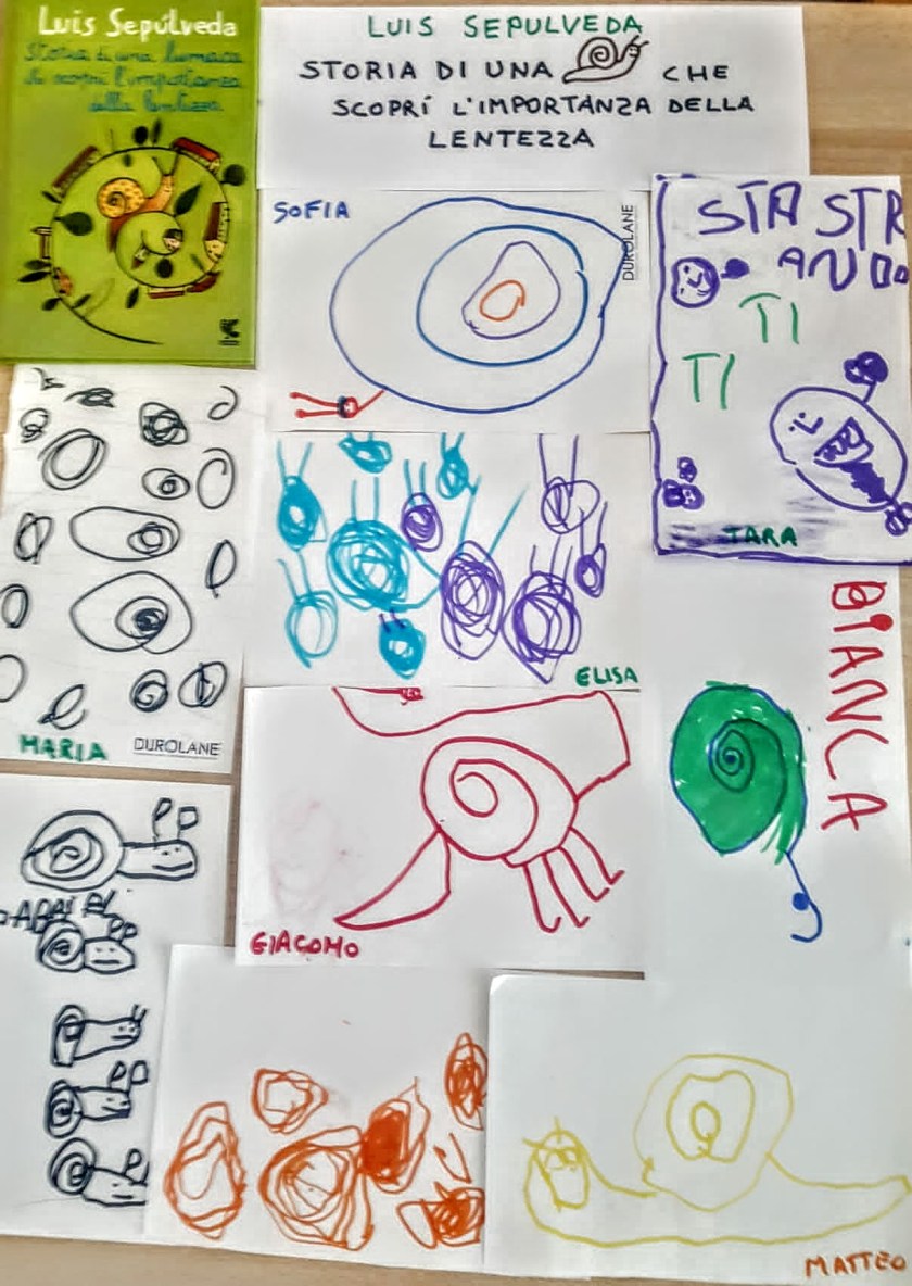 Una lettura tranquilla, ogni giorno un capitolo, accompagna i nostri pomeriggi. E da lì prendiamo spunto per attività grafiche e manipolative.