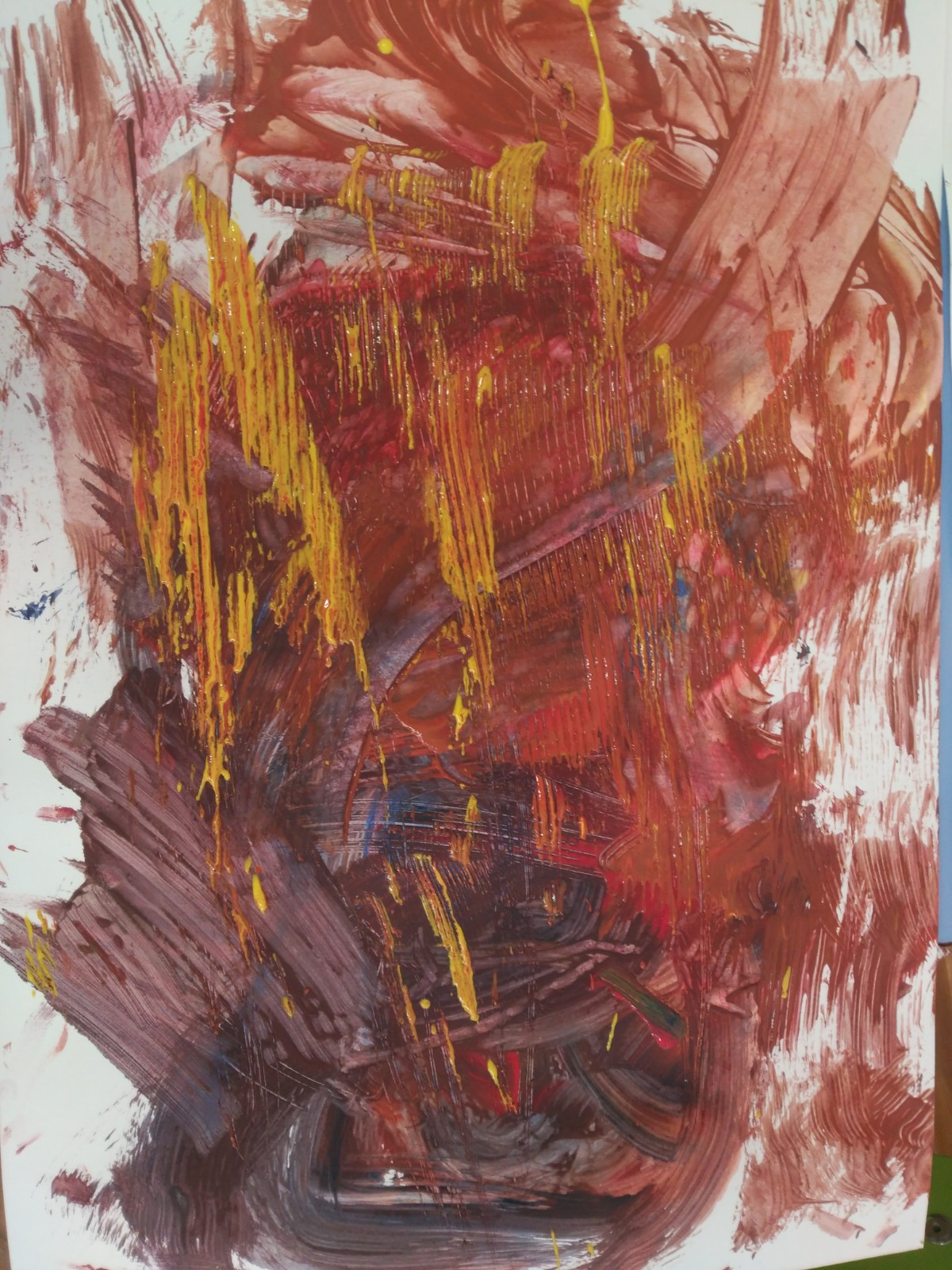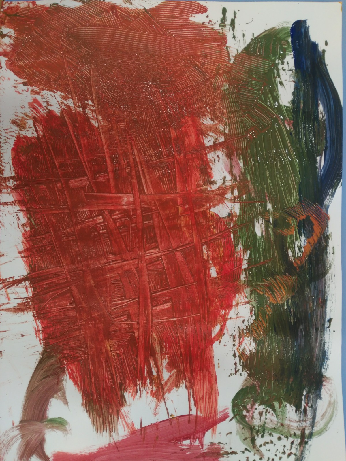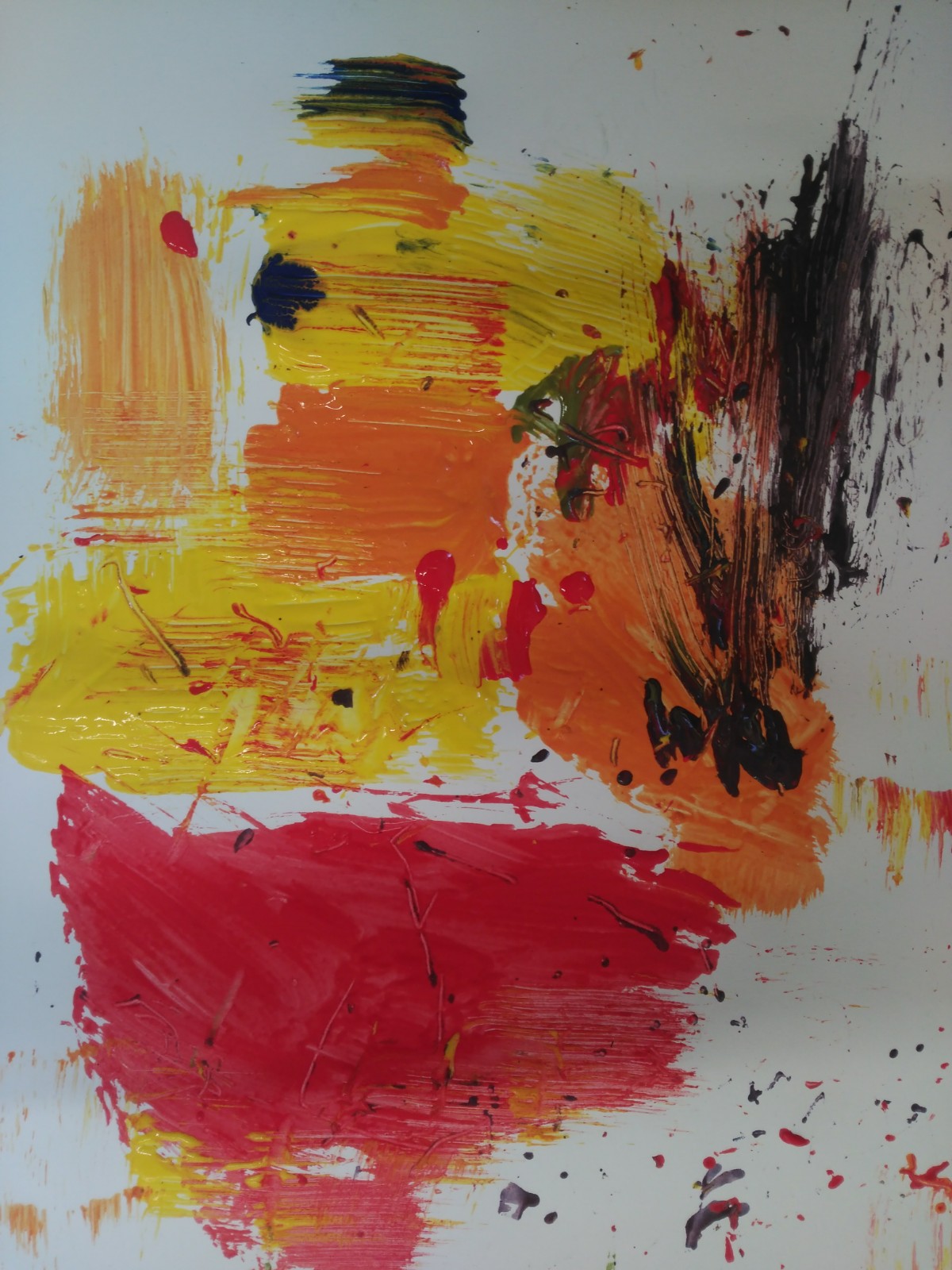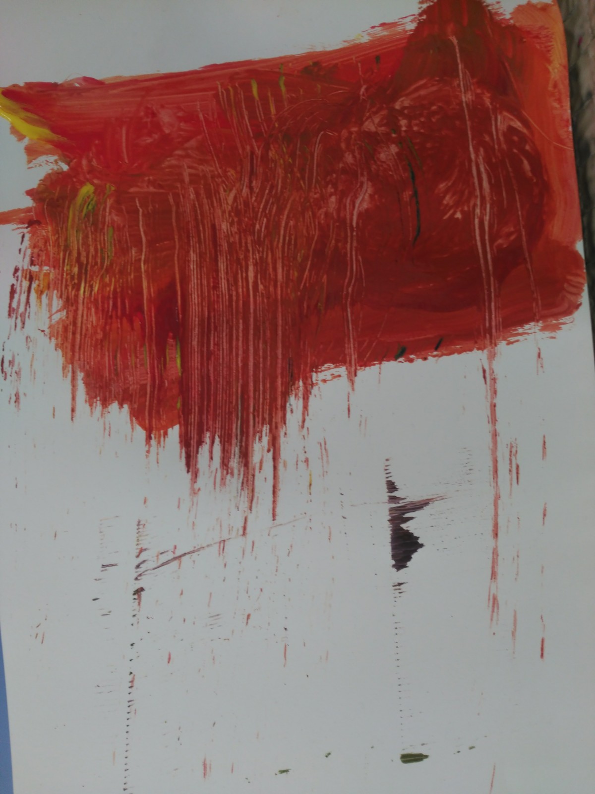 Poi sperimentiamo con i segni e le tracce che lasciano strumenti e oggetti di uso quotidiano, non convenzionali per la pittura. Esploriamo le differenti azioni che si possono fare e i segni che si creano. Con lo stesso oggetto che succede se faccio più o meno pressione, se striscio, se lo faccio “saltellare”…?