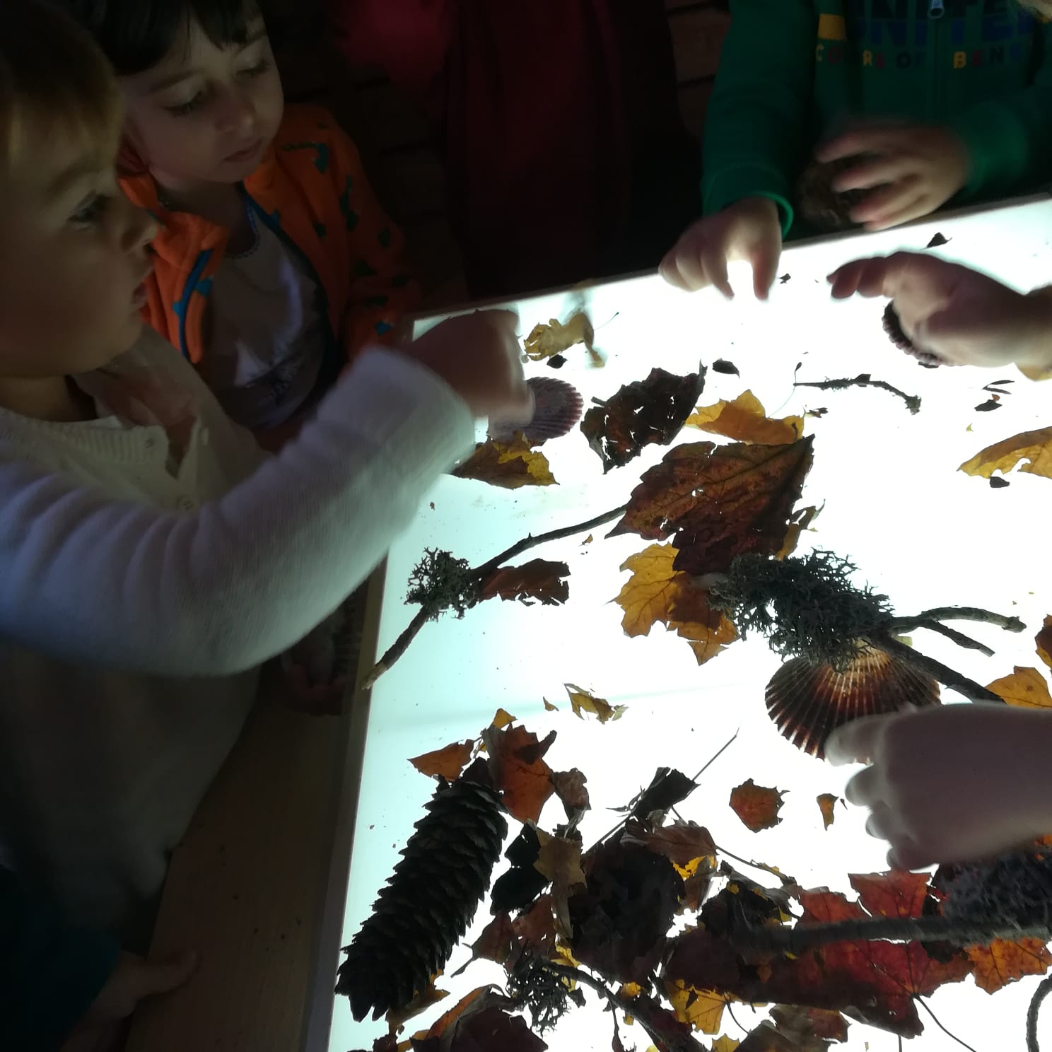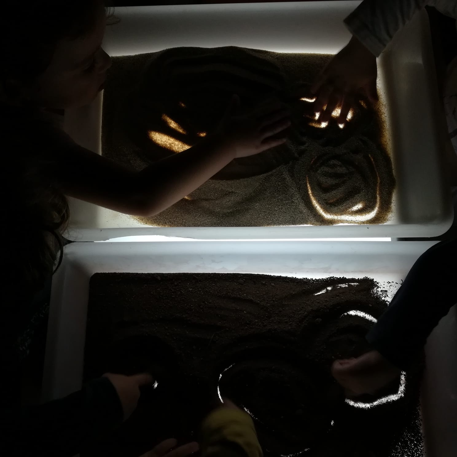 Giochiamo con la magia della luce. In una stanza in penombra, con lavagne luminose, torce, sabbia e molti altri oggetti creiamo, sperimentiamo e ci emozioniamo con le suggestioni prodotte dalla luce: distorsioni, trasformazioni, esaltazione degli oggetti, punti di vista insoliti…
