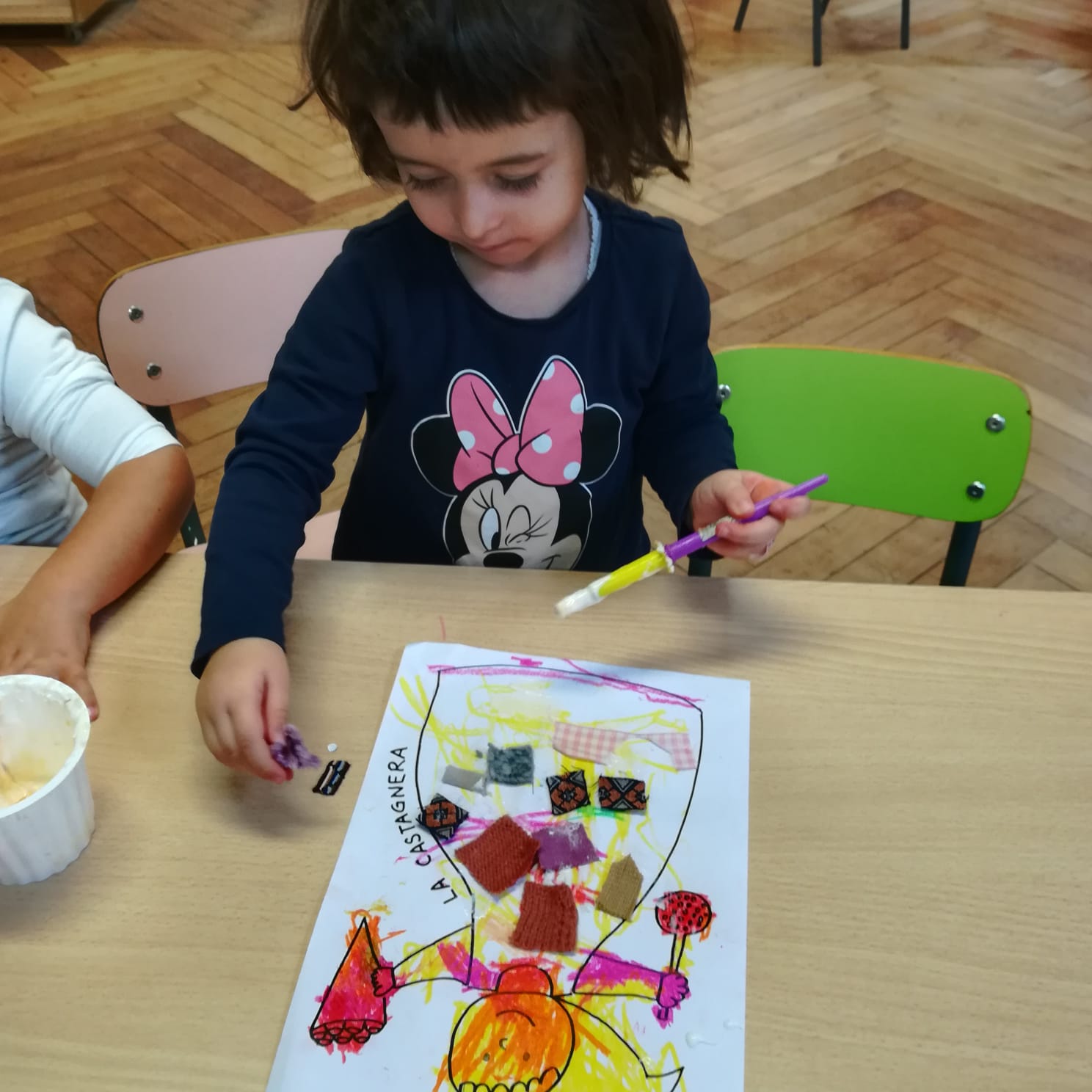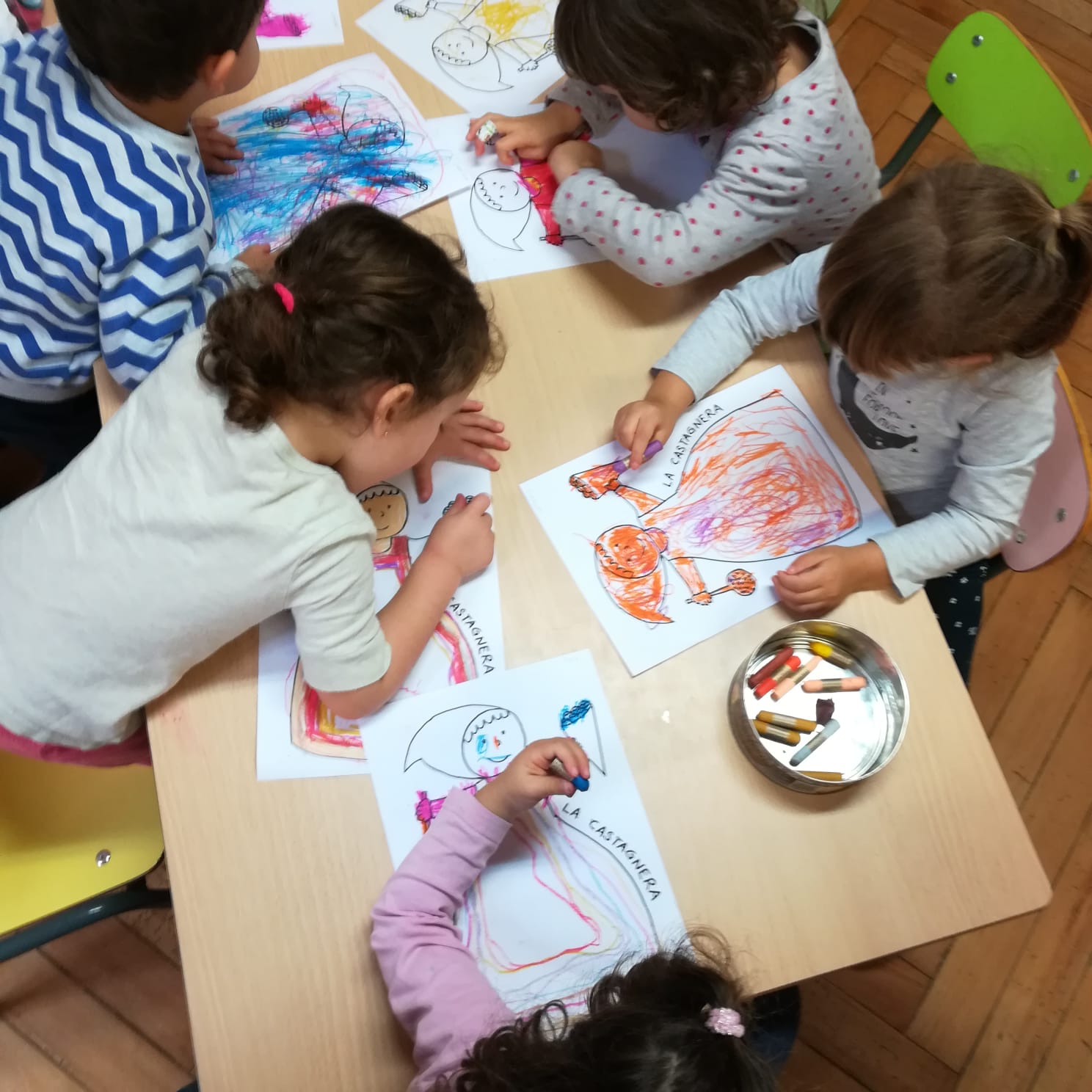 La castagnera ci ha fatto assaggiare le castagne. La rappresentiamo e la vestiamo così!