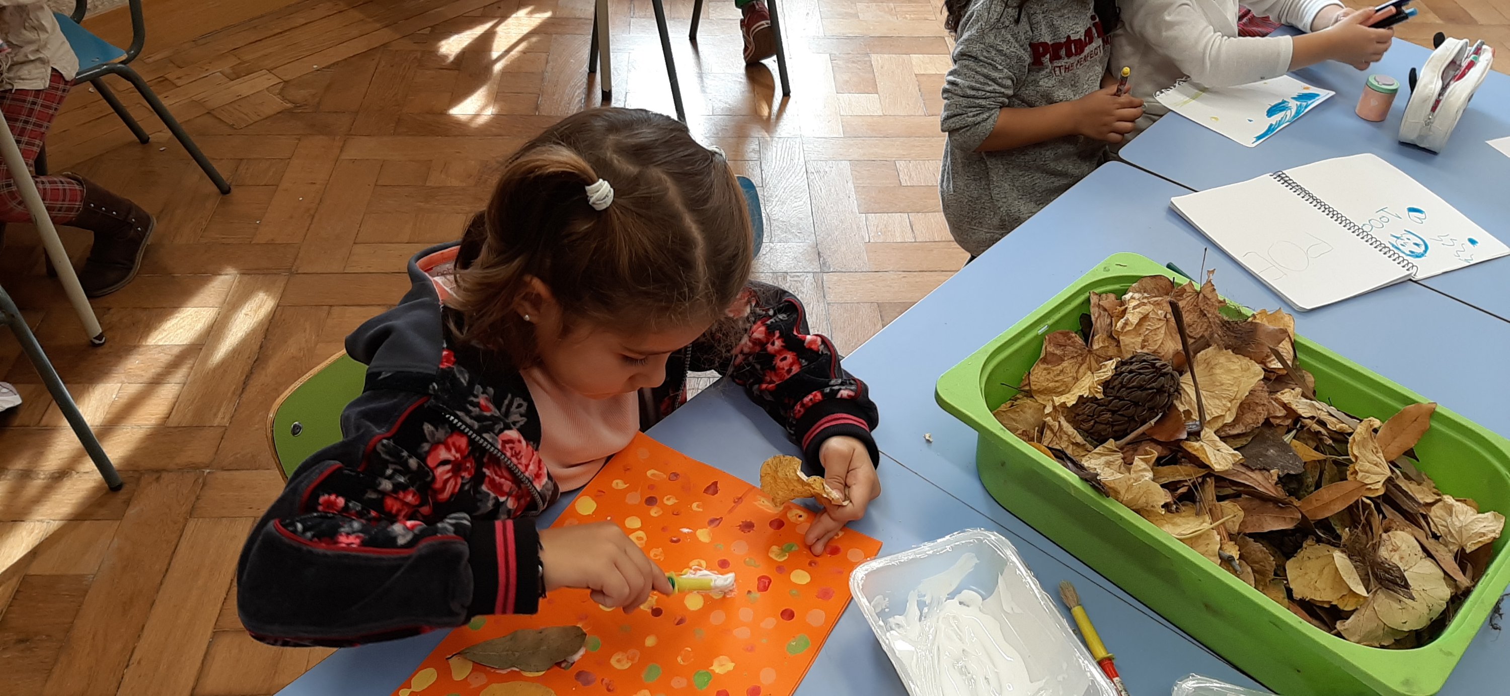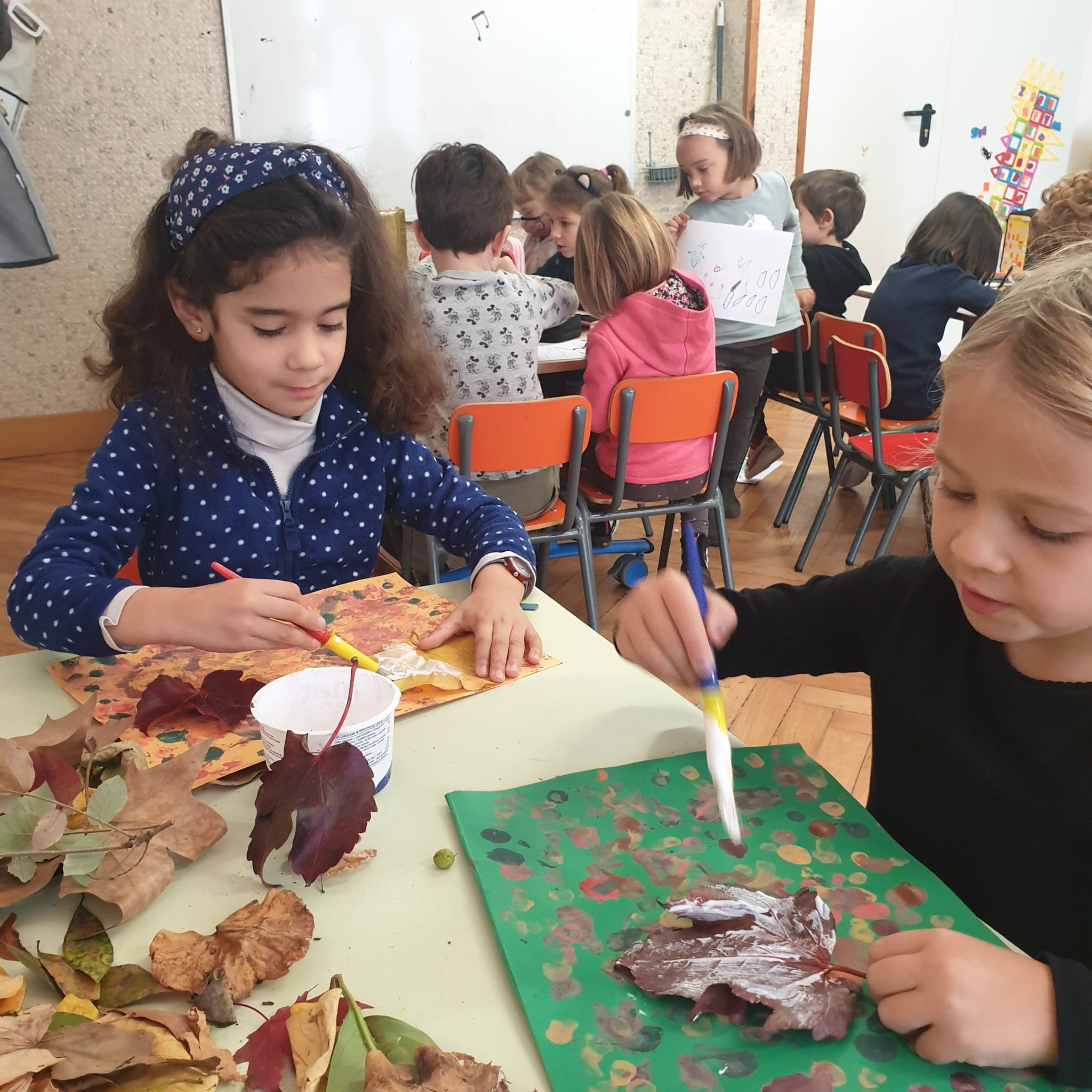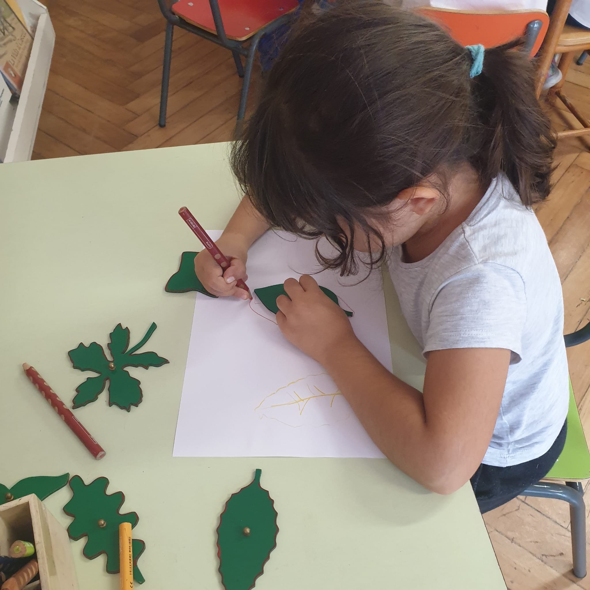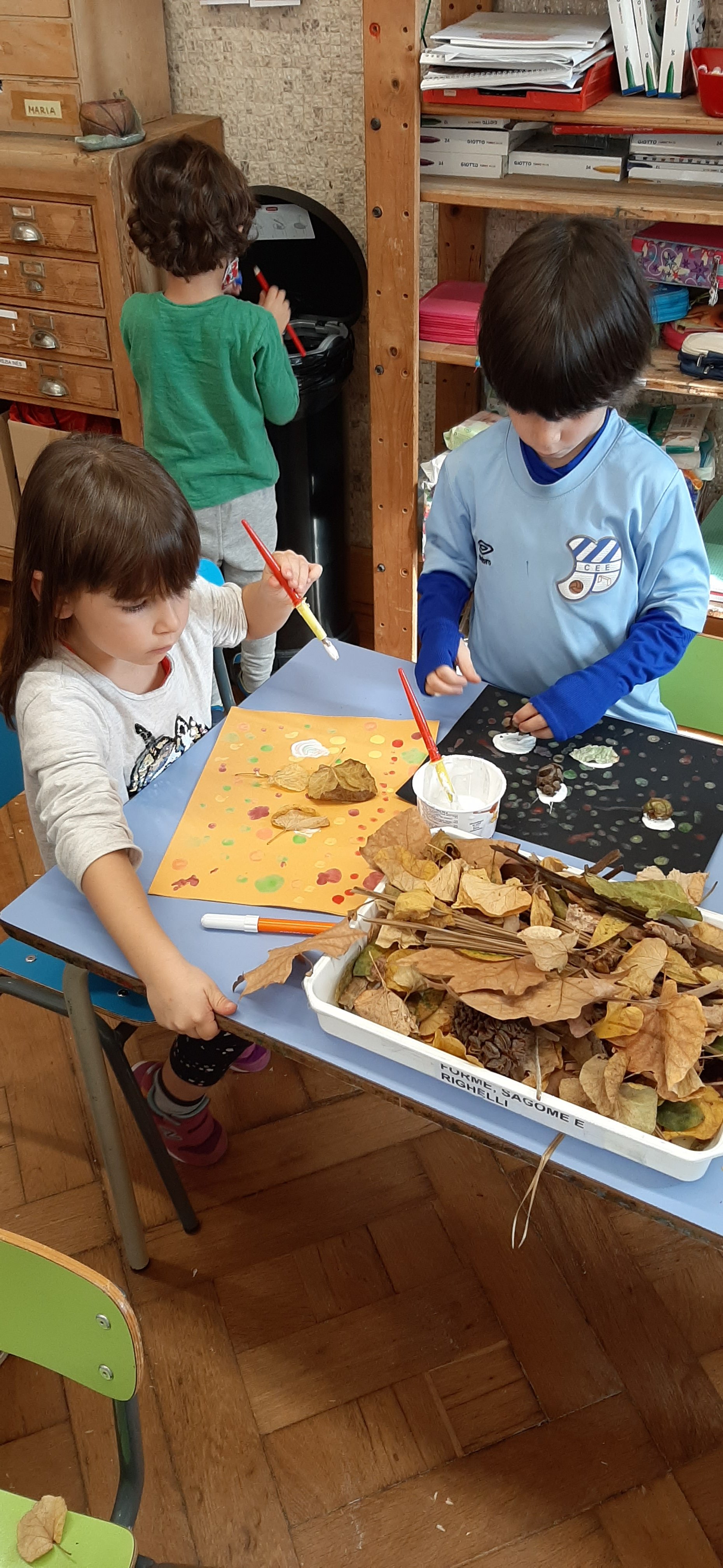 Ascoltando la música delle Quattro Stagioni di Vivaldi ed in particolare l’Autunno, ci siamo soffermati ad osservare le forme e i colori delle foglie in questo periodo dell’anno. Approfittando delle nostre passaggiate nei parchi i lunedi, abbiamo raccolto foglie di varie dimensioni che poi a scuola abbiamo classificato, scoprendo che possono essere palmate, cuoriformi, aghiformi etc. Inoltre le foglie possono anche suddividersi in caduche e sempreverdi. Infine utilizzando autentici materiali montessoriani abbiamo ripassato le differenti sagome.