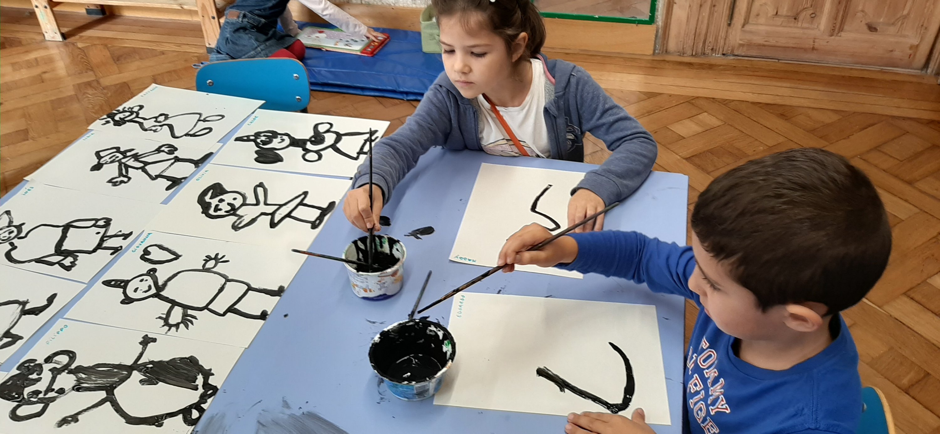 Dopo aver ricevuto la visita della Castañera a scuola, abbiamo pensato di farle un gradito omaggio dedicandole dei bellissimi dipinti in bianco e nero.