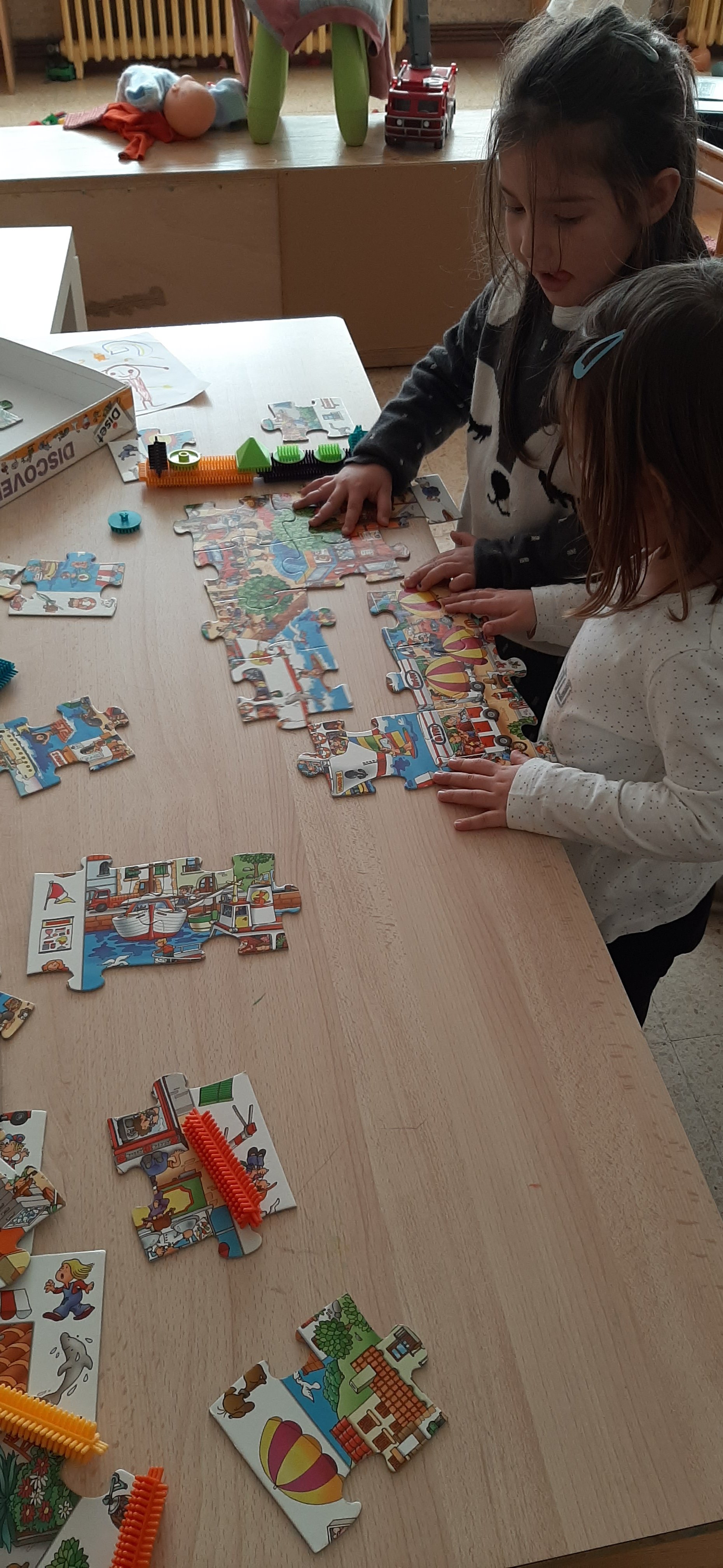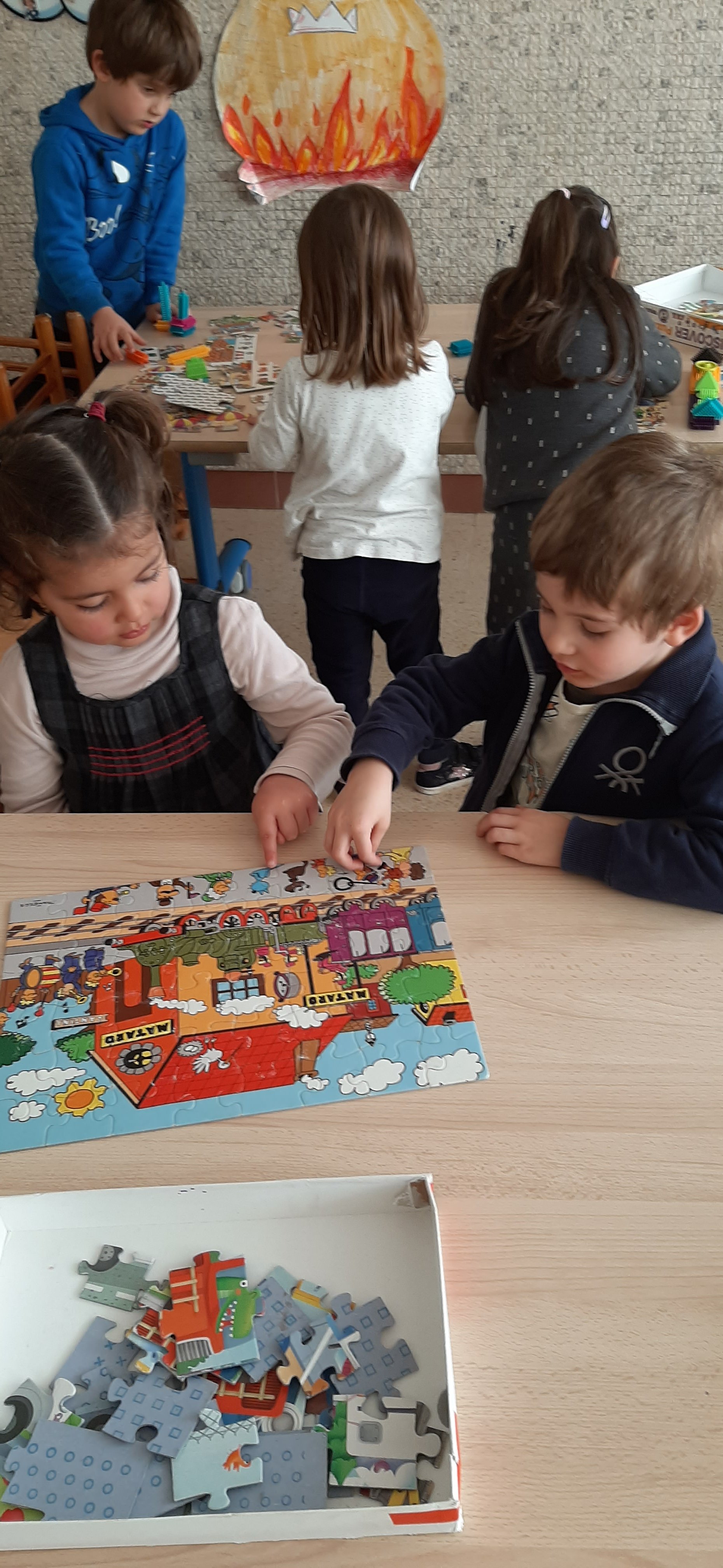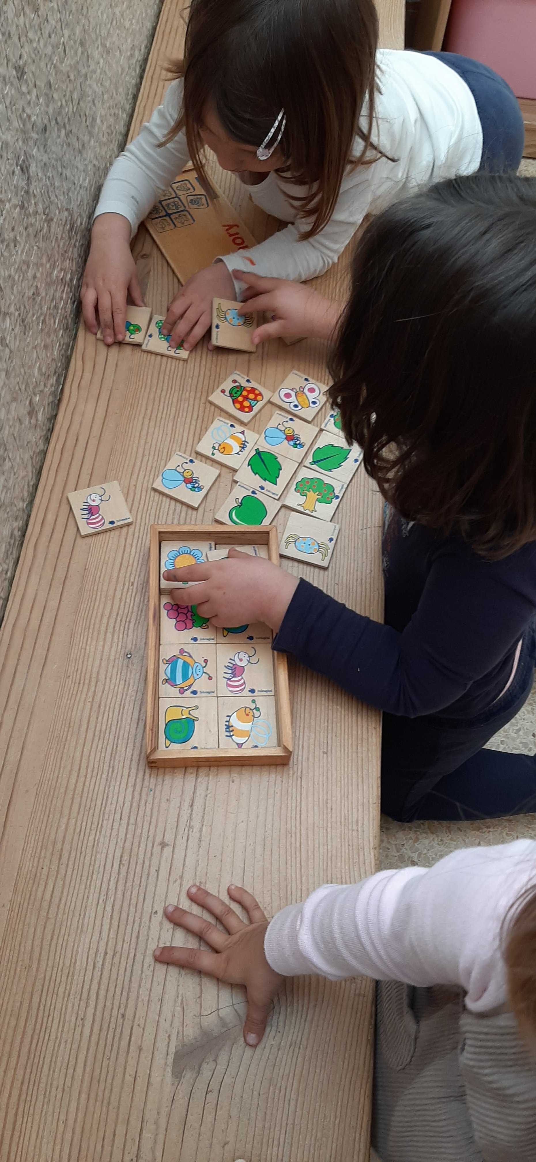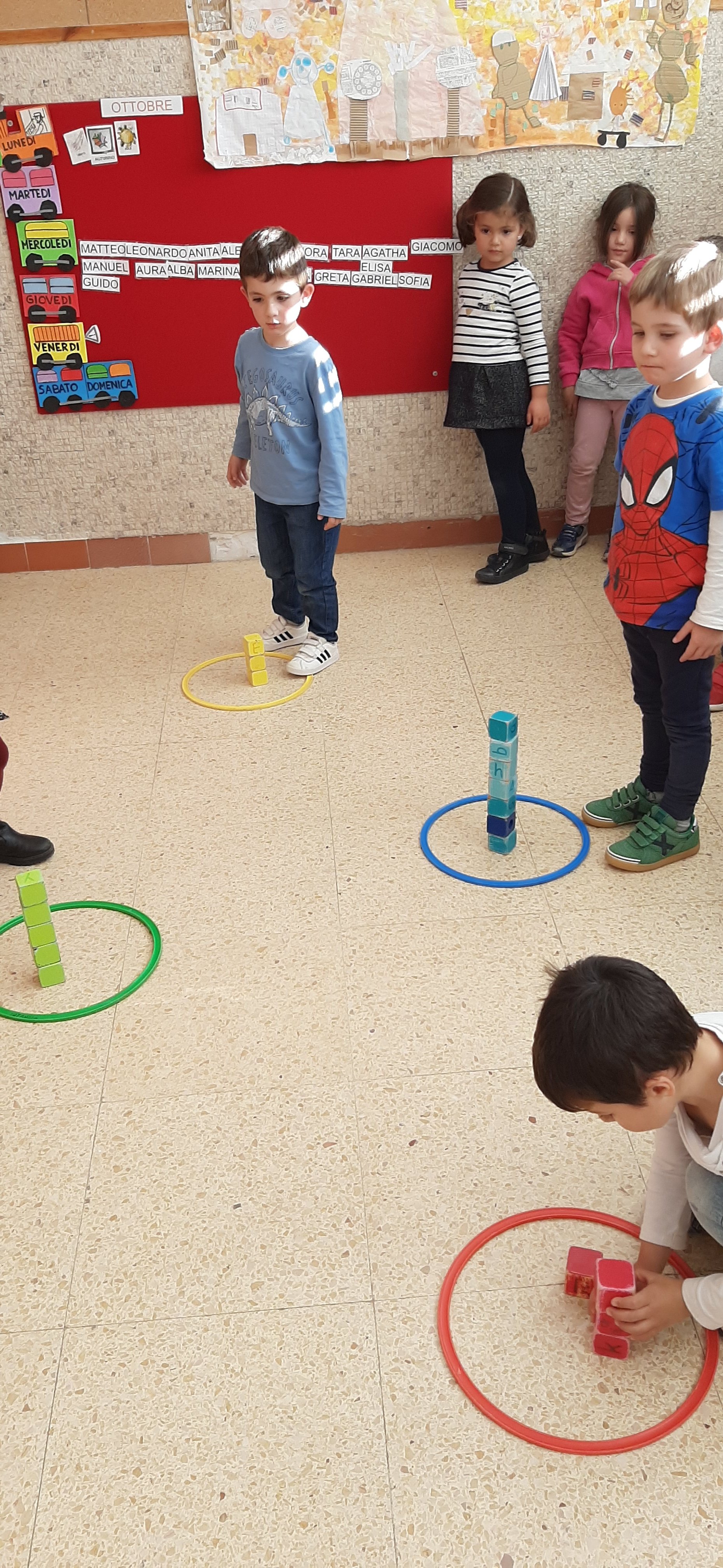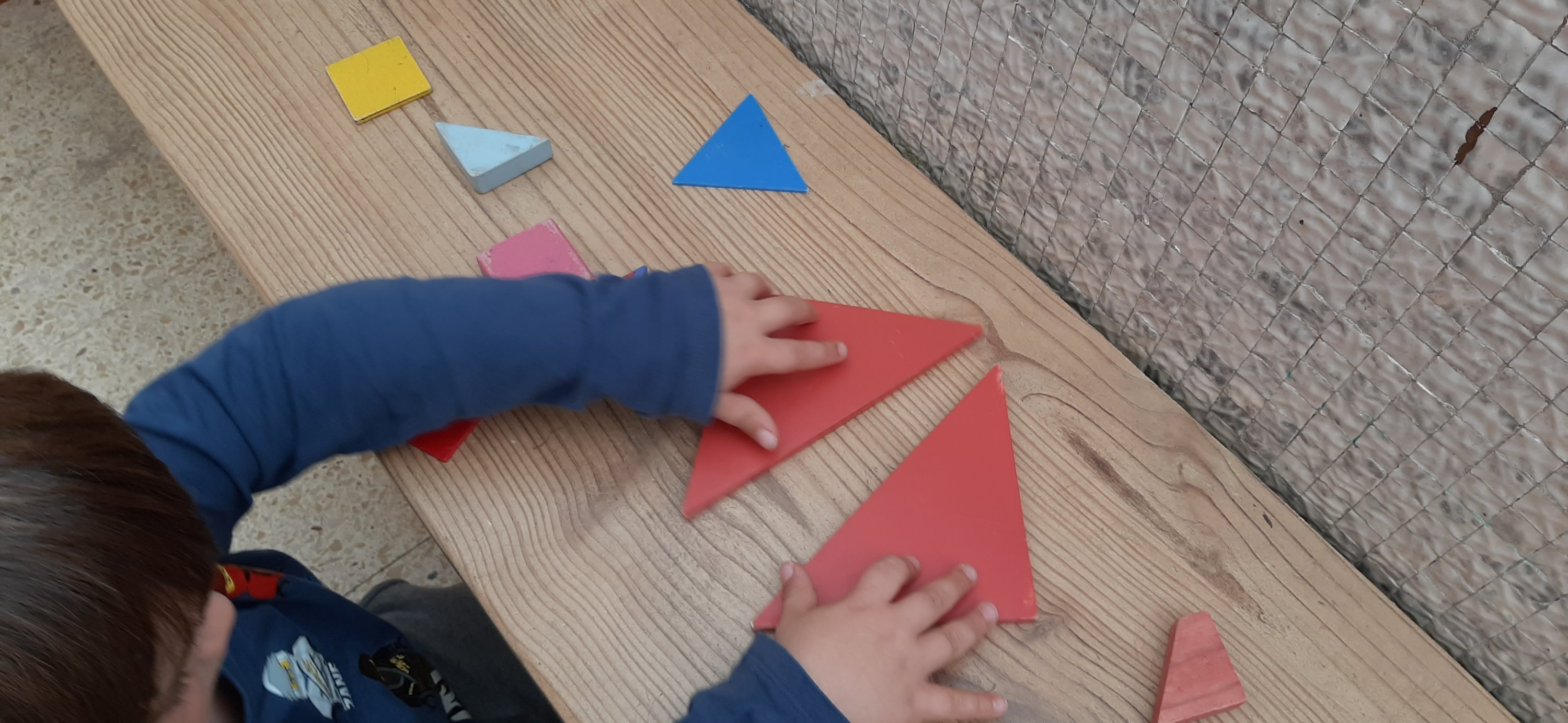Hanno giocato con le seriazioni in ordine crescente e decrescente e con le alternanze ritmiche di forme e colori. Si sono divertiti con puzzle, giochi ad incastro e domino. Si sono soffermati sui concetti di grande e piccolo, maggiore,minore ed uguale. Hanno imparato a distinguere le principali figure geometriche, scoprendo che queste si possono ritrovare in moltissime cose che ci circondano quotidianamente.