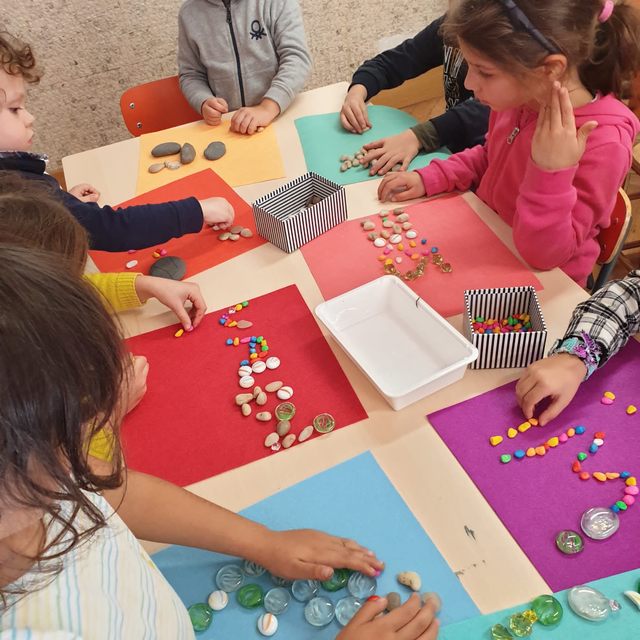 Scriviamo con diversi materiali: pietre, fil di ferro, corde e lane.