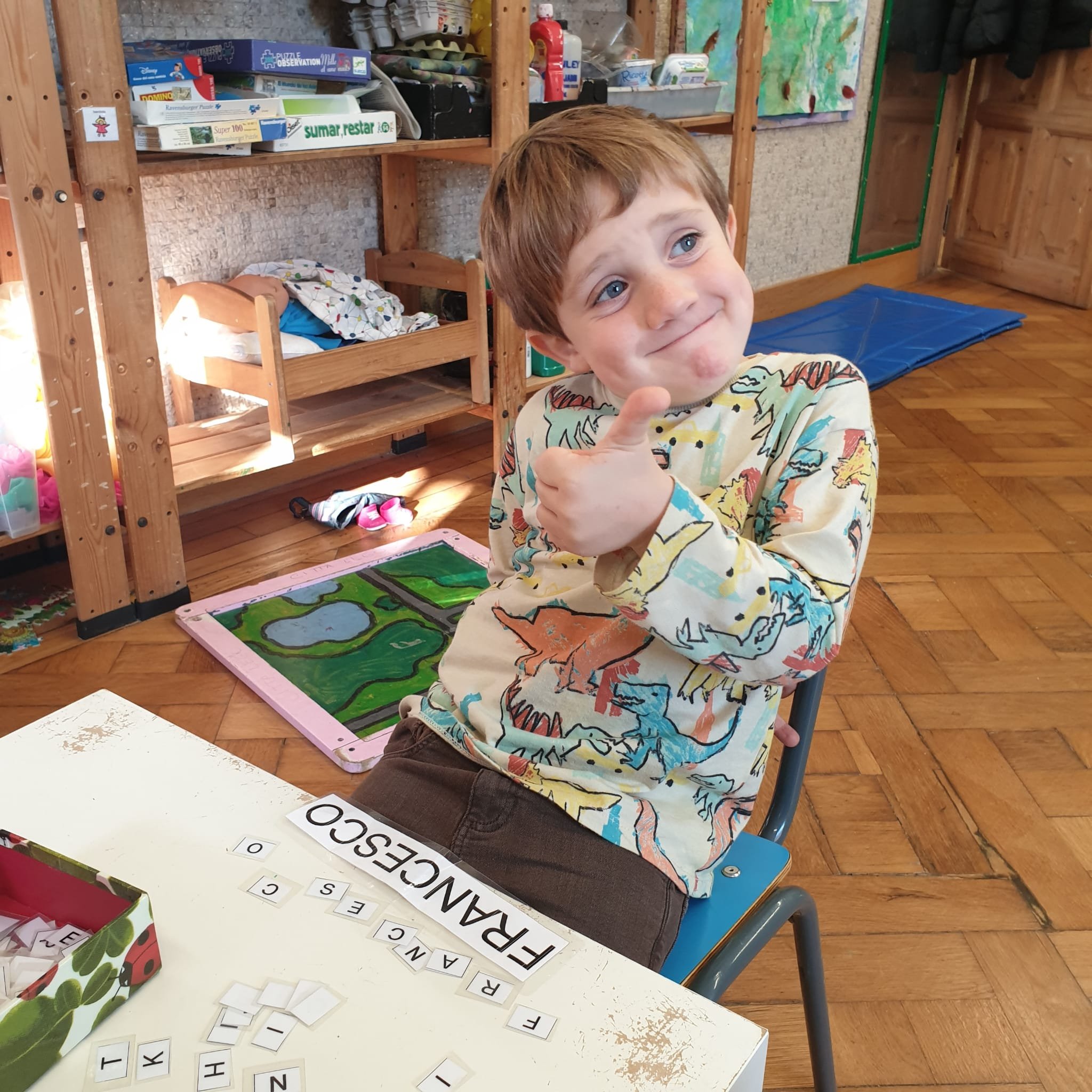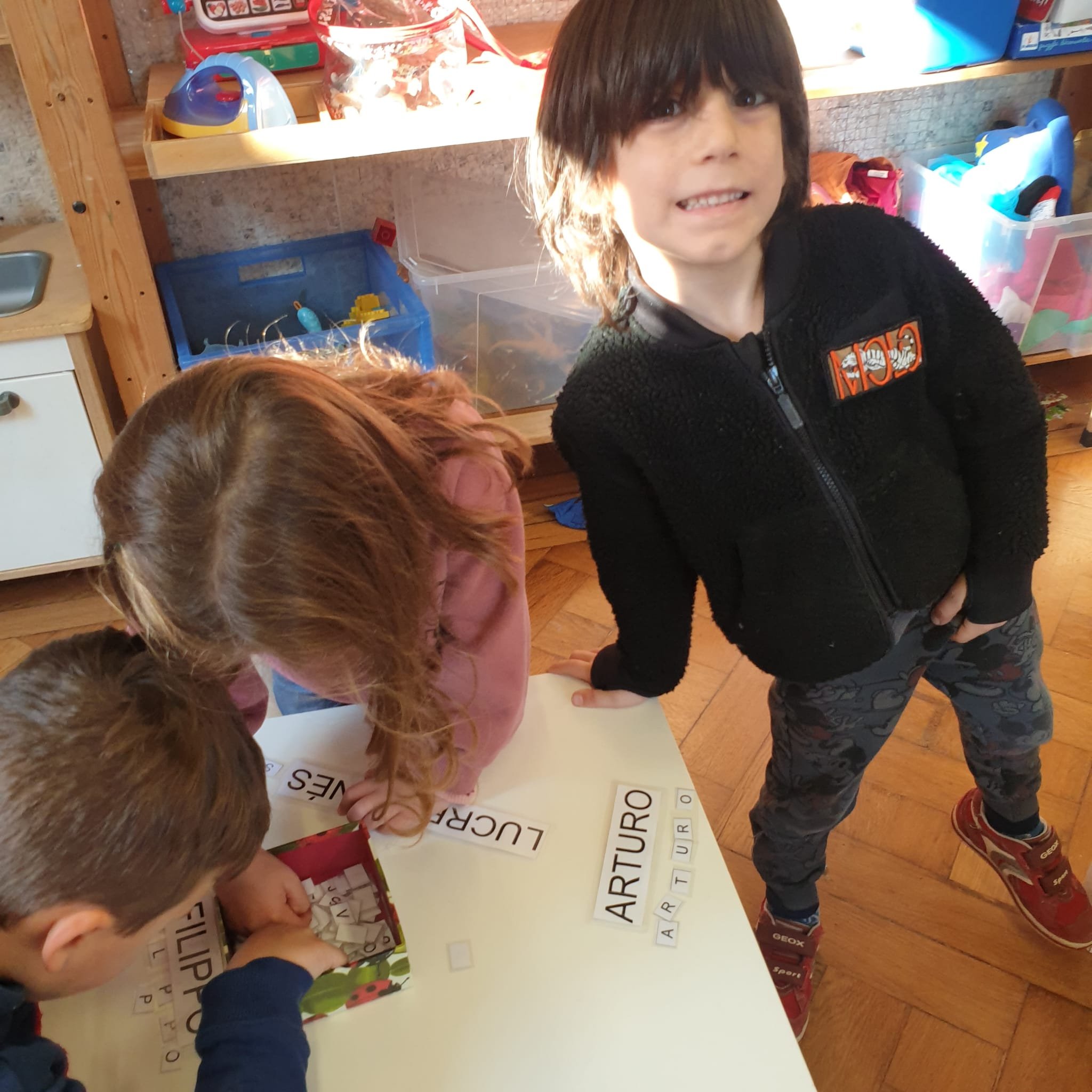 La formichina Inna ci presenta l’alfabeto e noi, con le letterine mobili, riproduciamo i nostri nomi e quelli dei compagni.