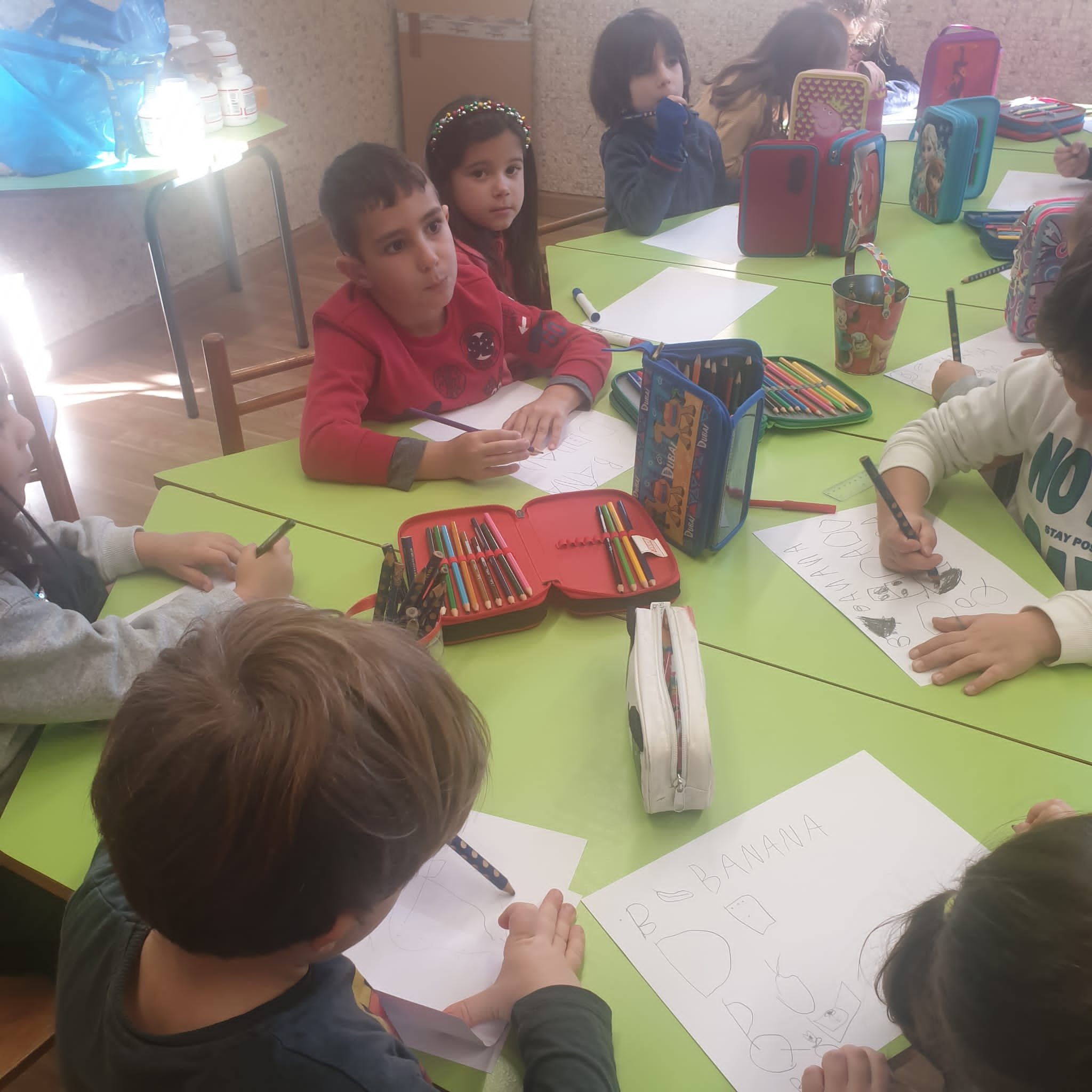 Le letterine drittine, panciute, e ricurve si mescolano e creano parole: B come banana, T come topo, Z come zebra etc…