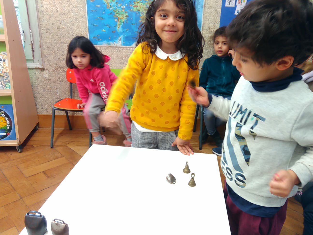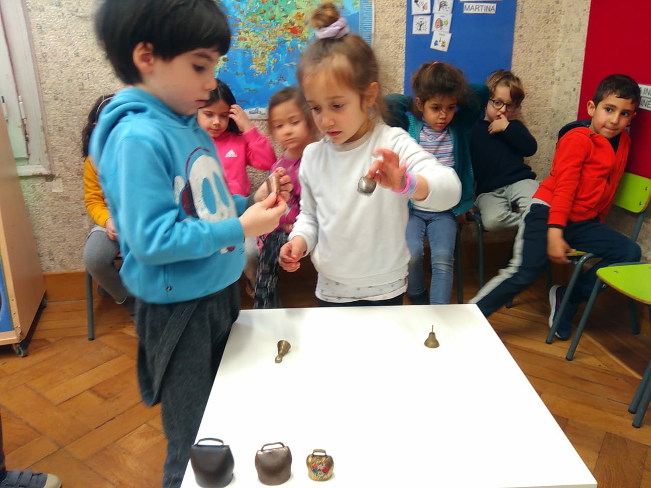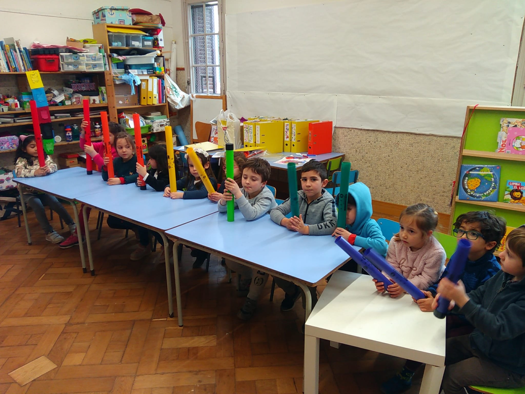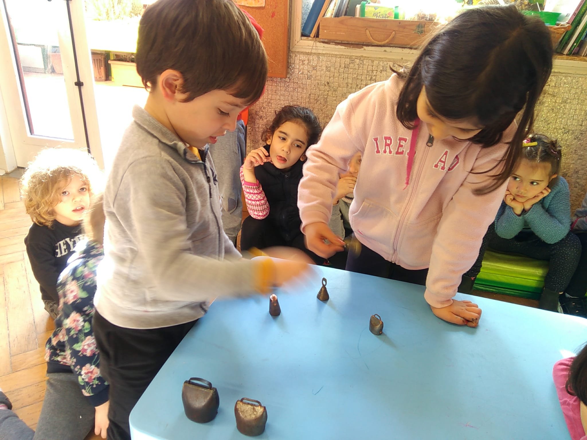 I bambini e le bambine dei 5 anni stanno continuando il loro percorso nell’apprendimento della musica. Stanno imparando insieme i ritmi e la scala musicale, attraverso il gioco dei campanellini da ordinare. Inoltre si stanno divertendo ad eseguire piccole melodie con i Boomwhackers.