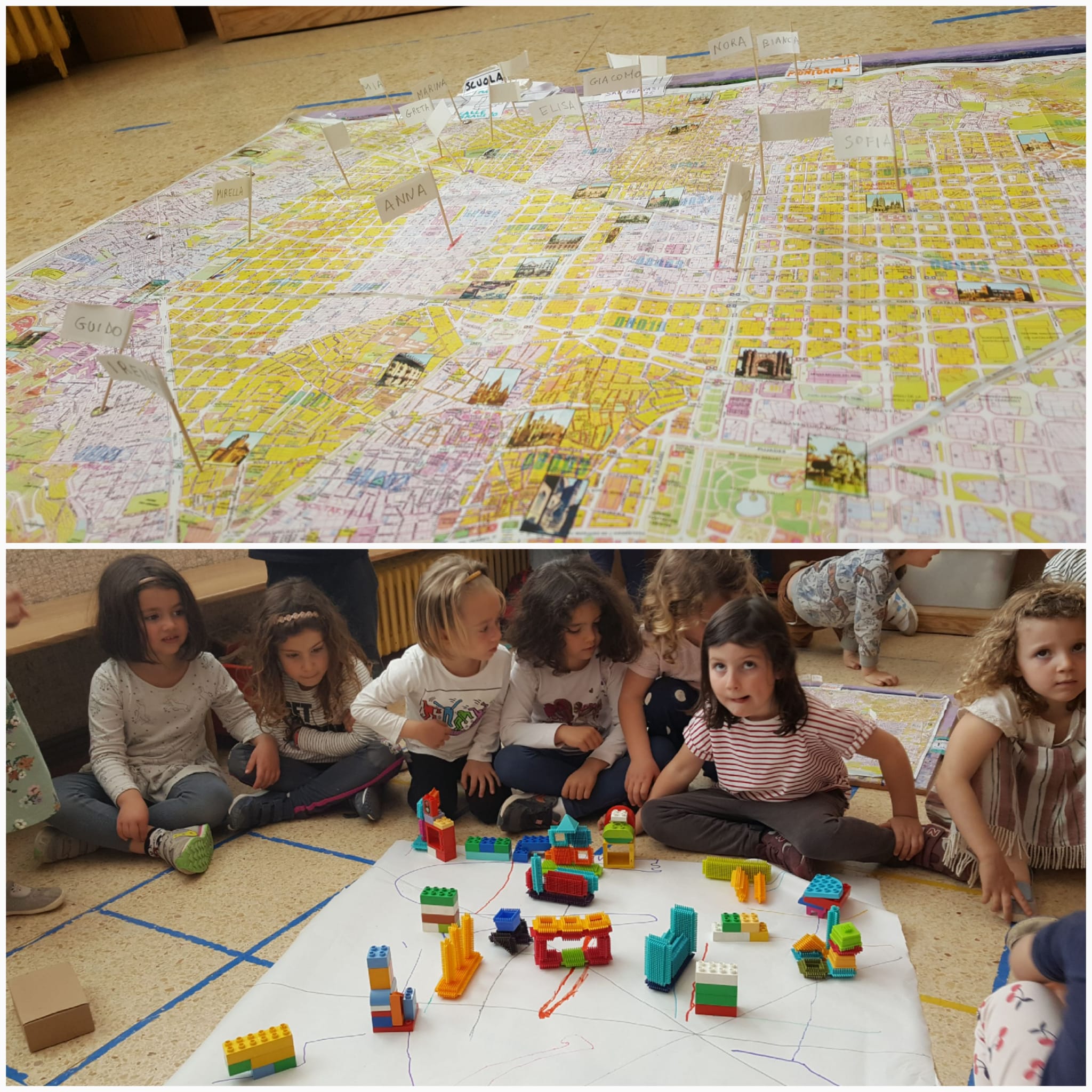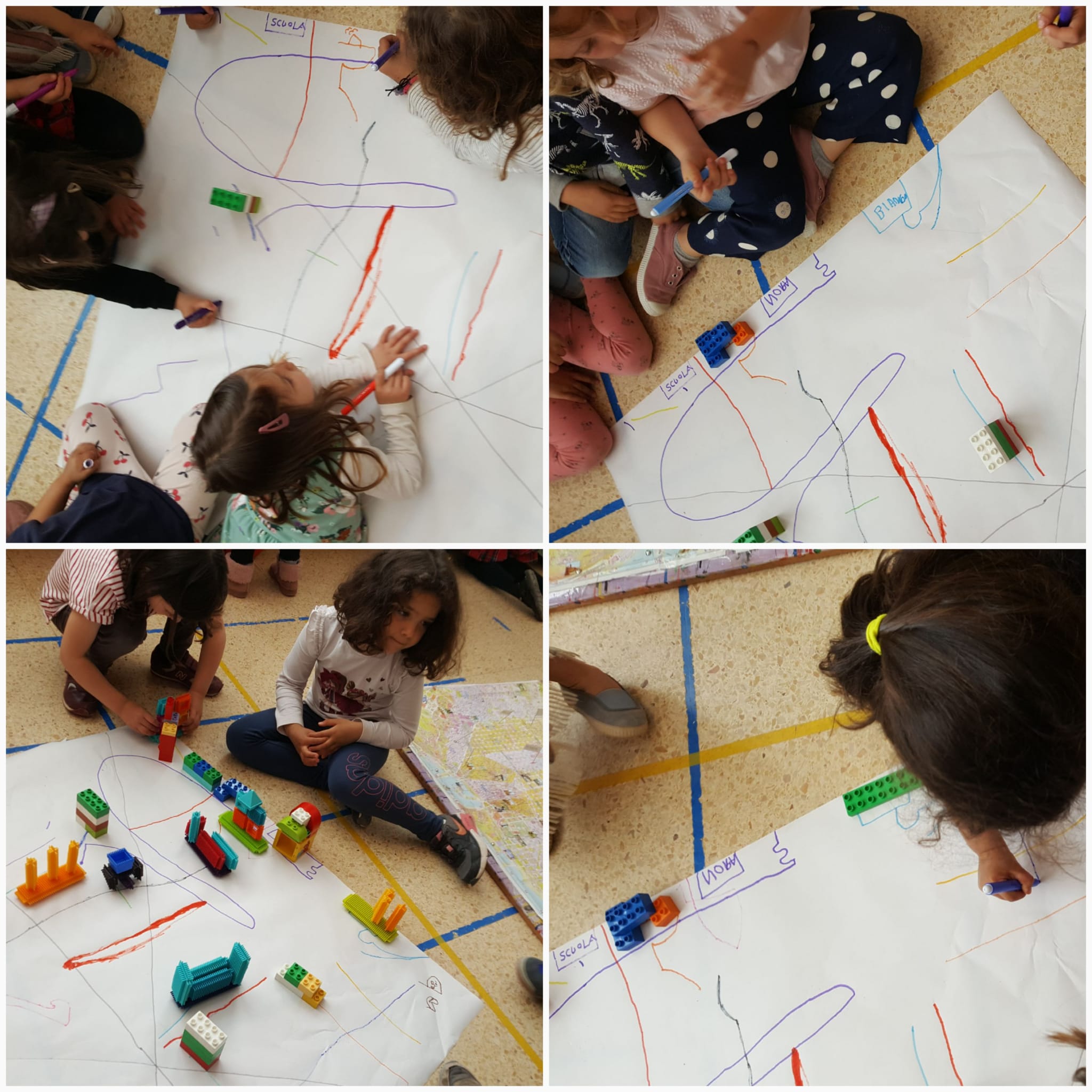 Infine riproduciamo la nostra personale mappa della città su un grande foglio, rappresentando le strade e i punti emblematici e usando il lego per indicare gli edifici.