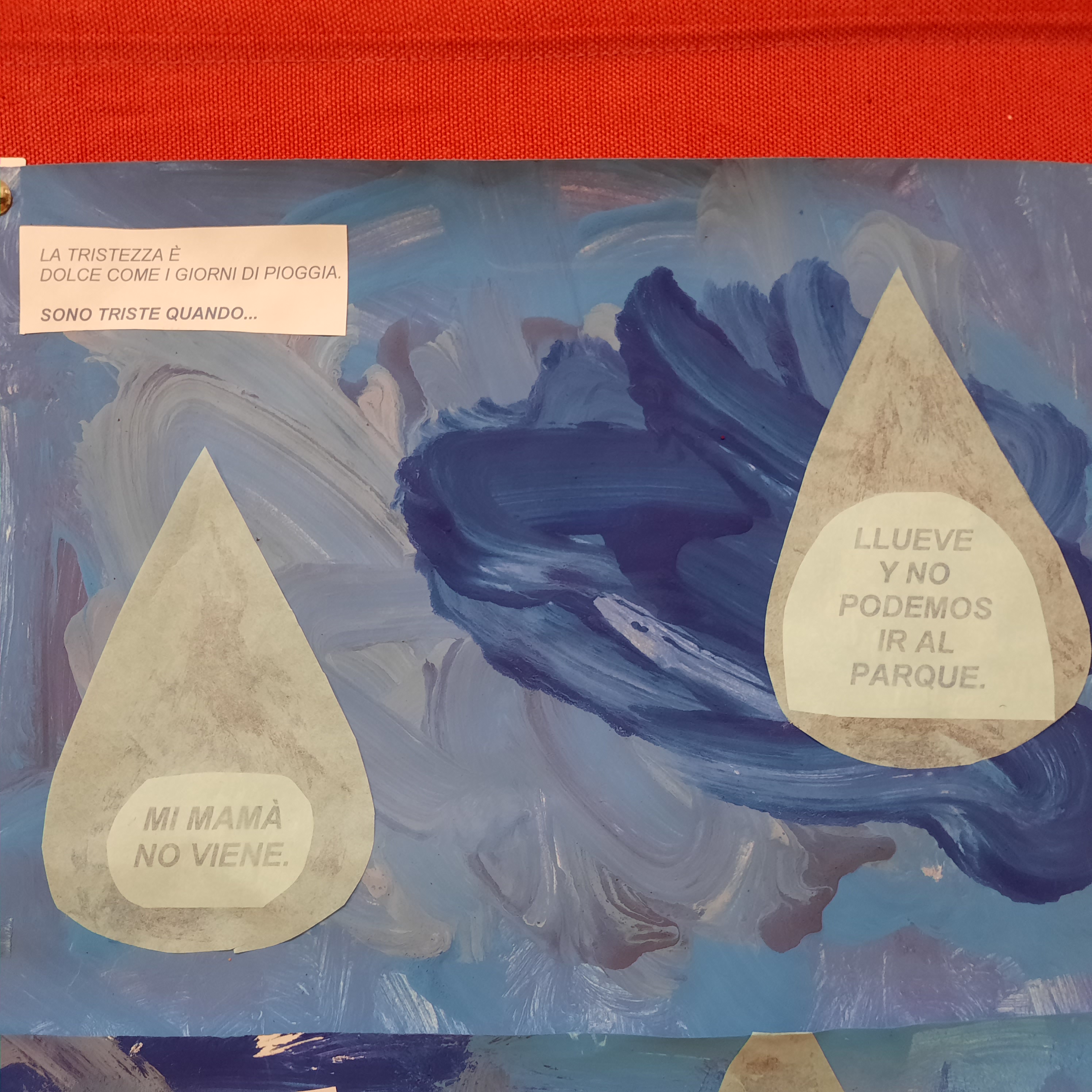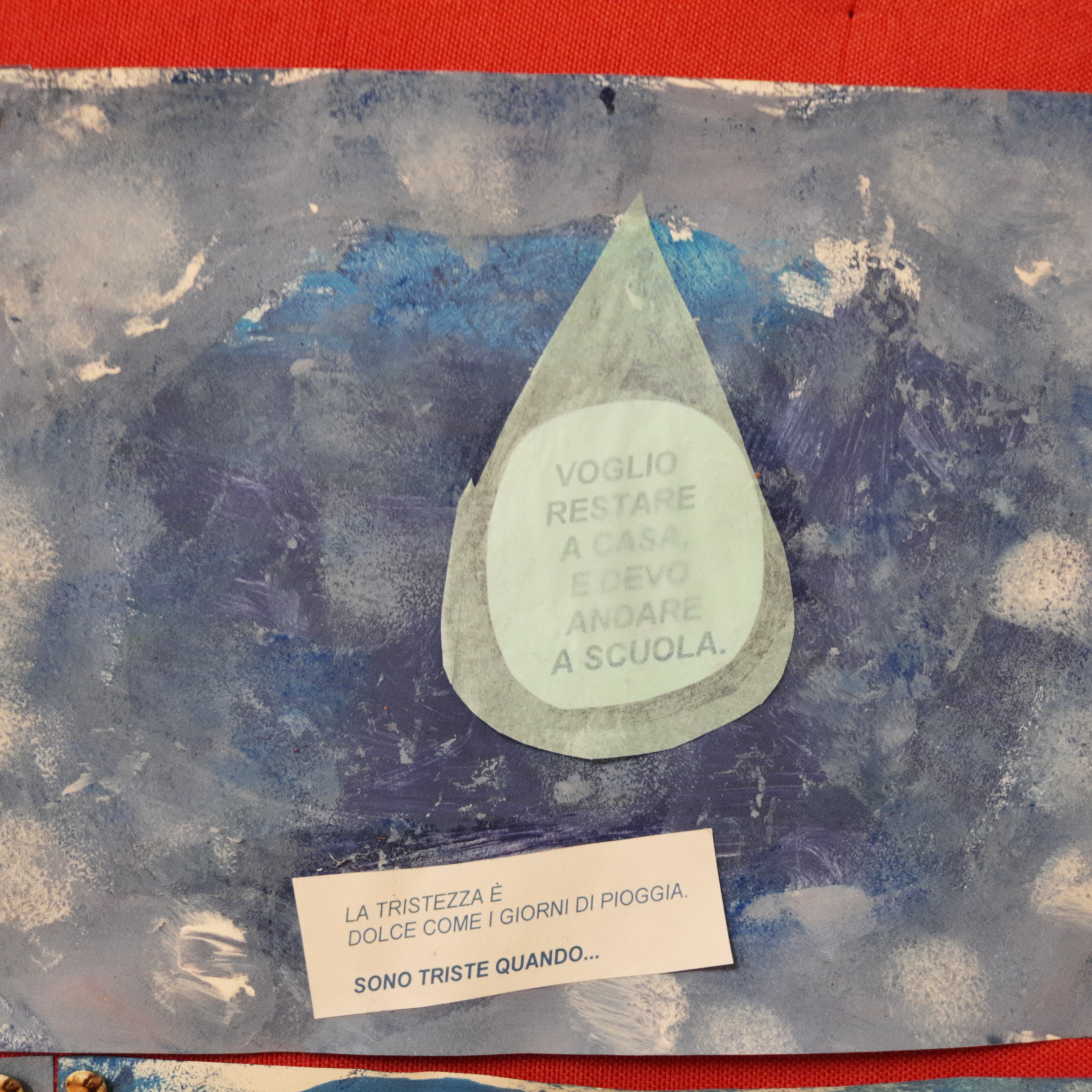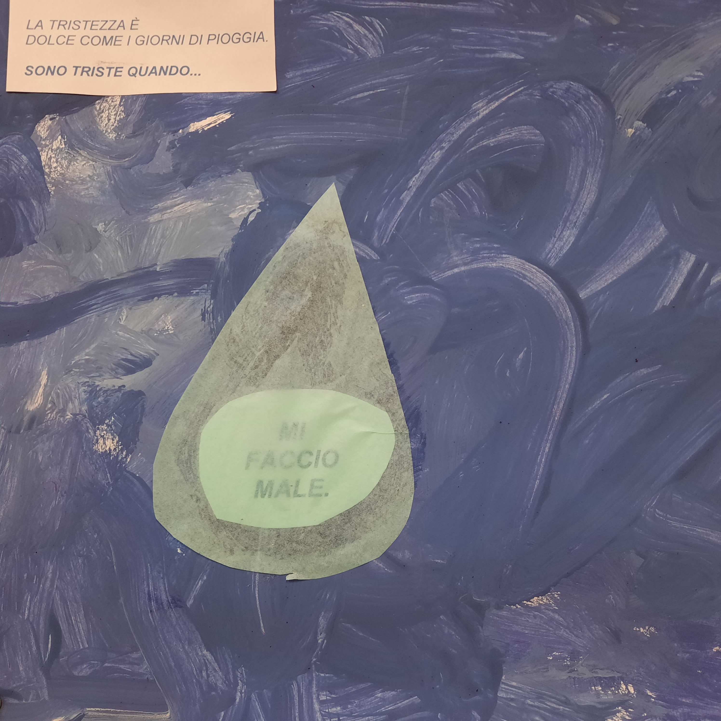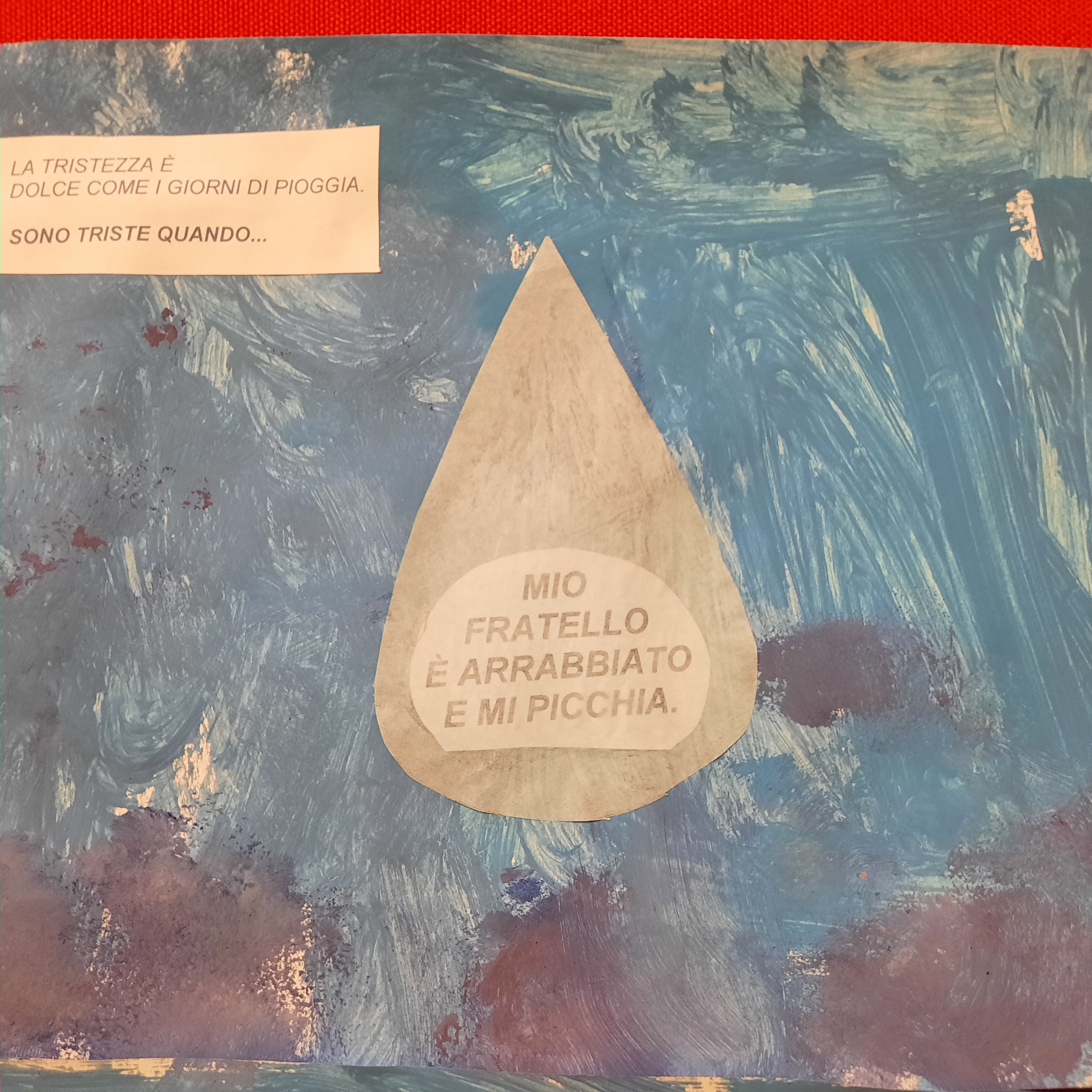 Nel libro: “I colori delle emozioni” la tristezza è blu, ed è così che le bambine ed i bambini dei P3 hanno amato rappresentarla, blu come una gocciolina di pioggia triste, che contiene la loro esperienza personale.