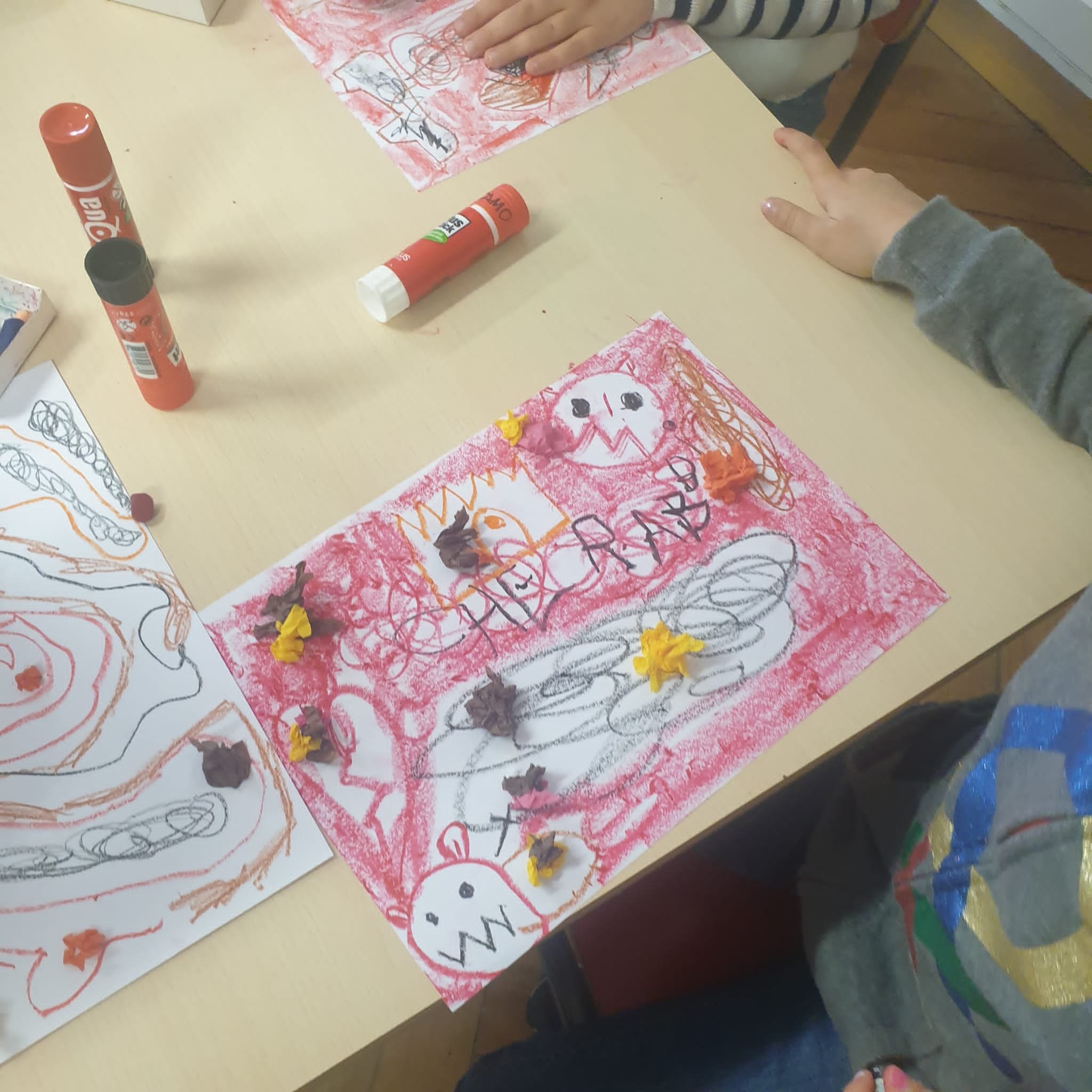 Concordando che il colore della rabbia é il rosso, con cere e carta velina abbiamo fatto dei bei collages. Infine abbiamo letto la storia”Il litigio” di C.Bujon, che ci ha dato l’occasione per riflettere insieme sulle strategie da utilizzare per dissipare i piccoli contrasti, che possono succedere quotidianamente anche tra amici.