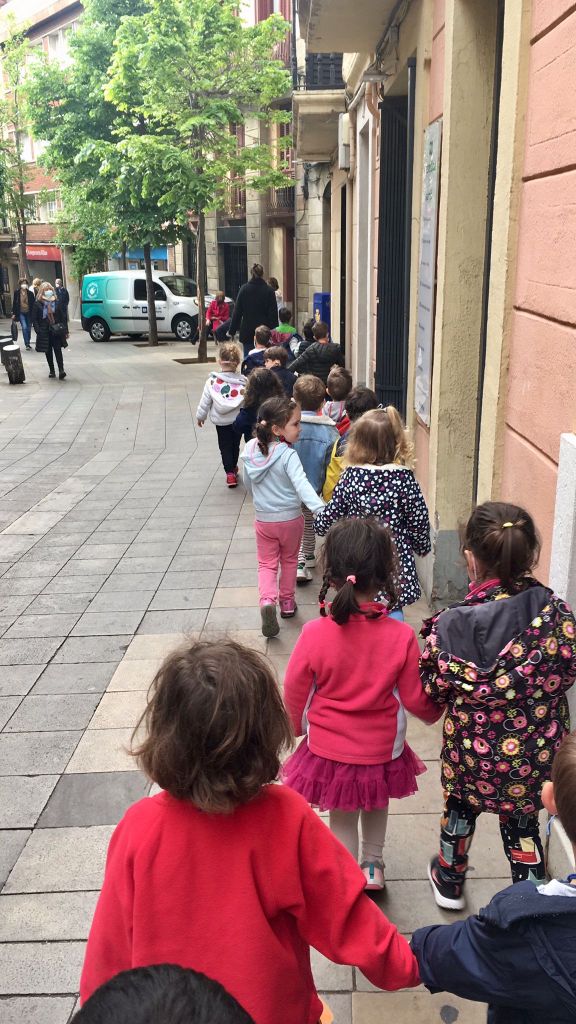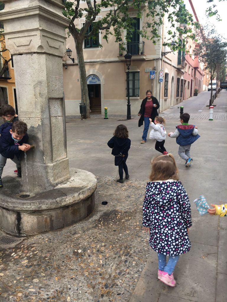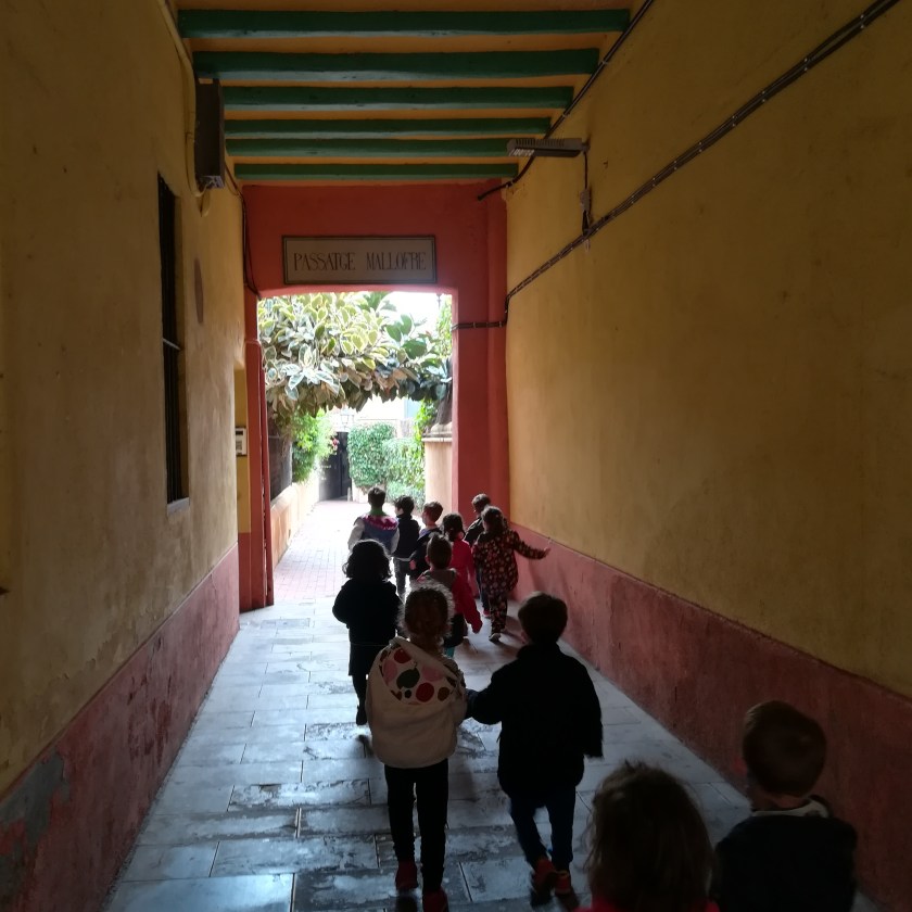 Venerdì scorso, invece di andare al parco, abbiamo deciso di esplorare un po’ quella parte del nostro quartiere di Sarriá che ci è più vicina. Così, uscendo dalla scuola, abbiamo attraversato il “Passatge Mallofré”, dove abbiamo osservato un bel batacchio a forma di mano su una porta. Abbiamo proseguito, poi, attraverso Major de Sarriá, e altre bellissime viette, per raggiungere la piazza di “Sant Vicenç”, dove abbiamo sostato un po’ per giocare e rilassarci.