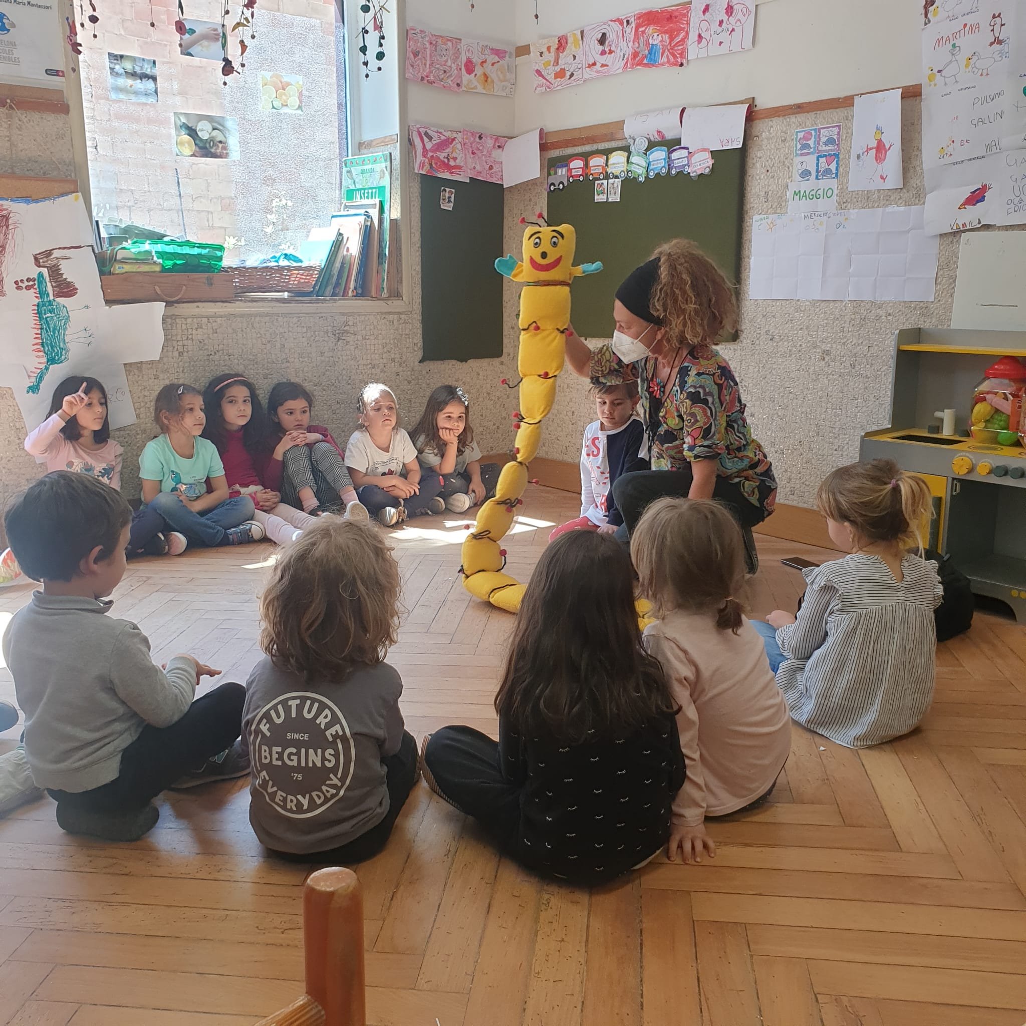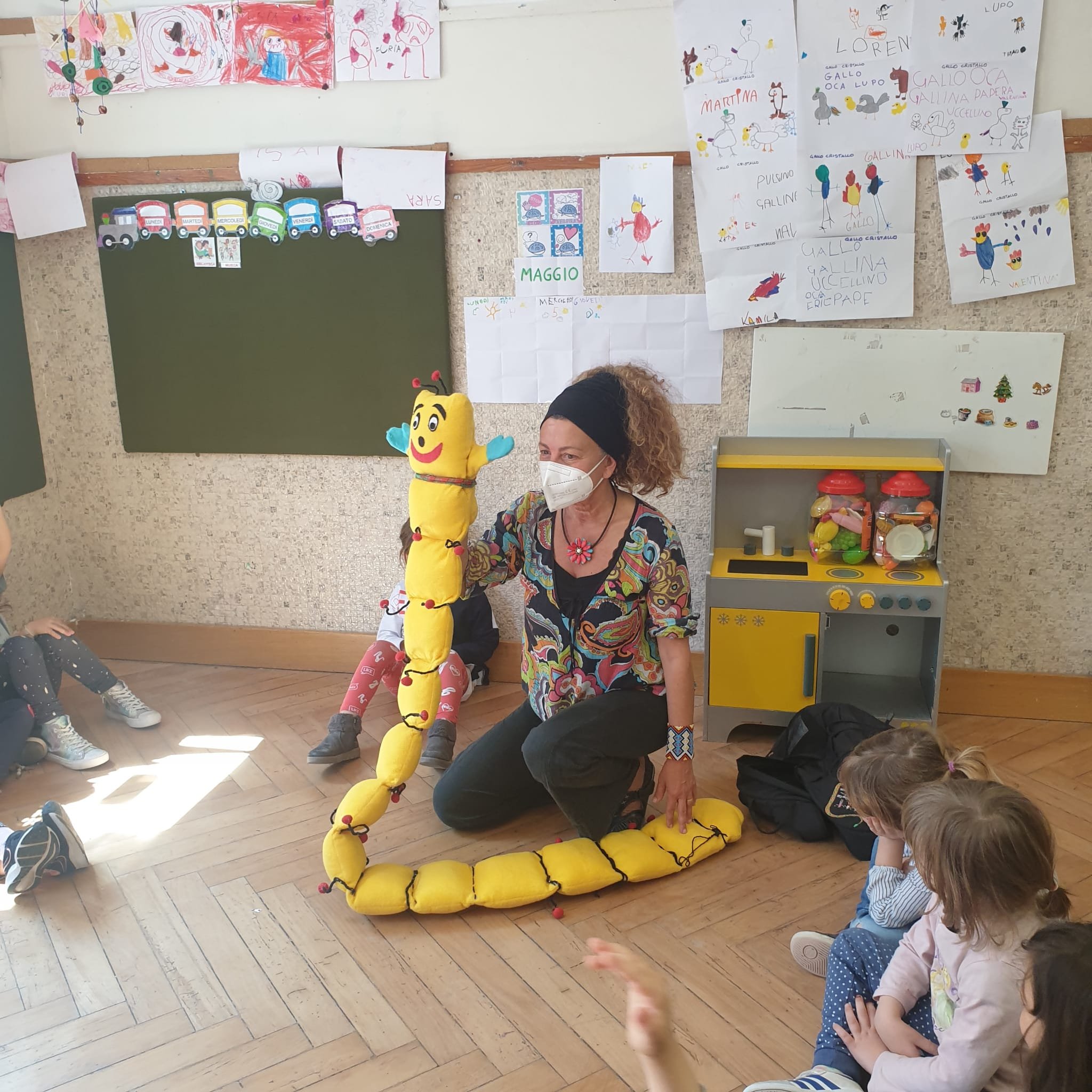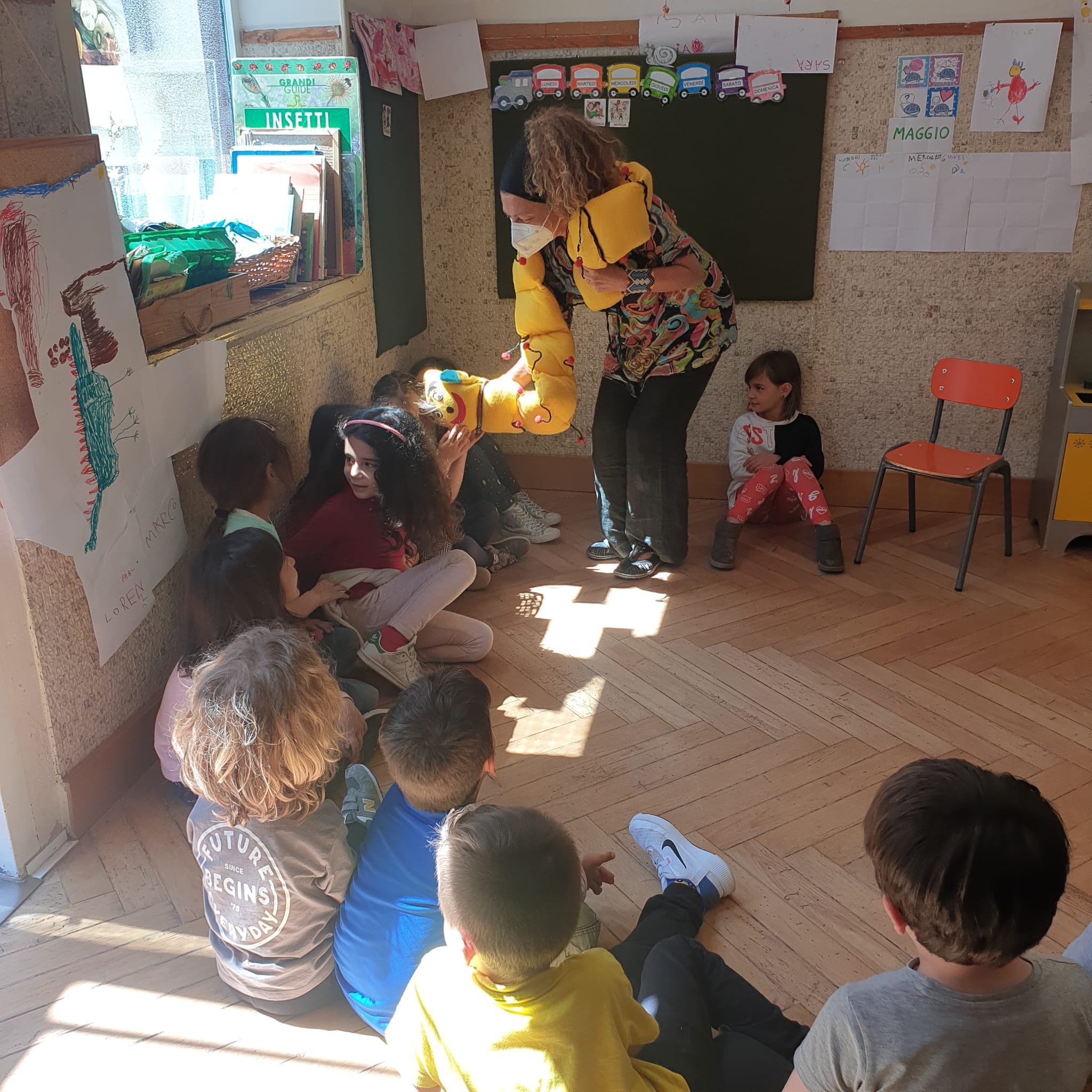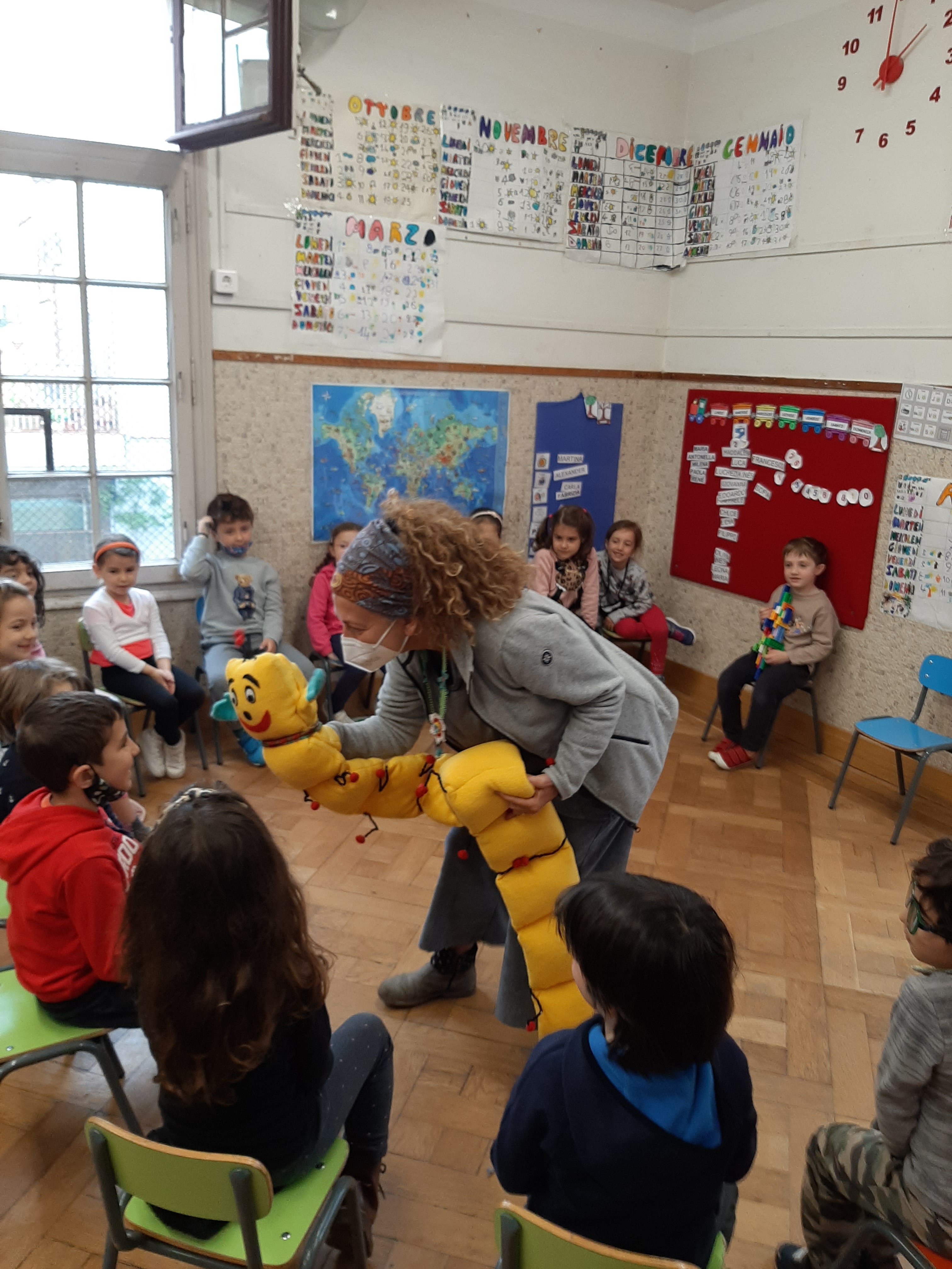 All’interno del progetto continuitá scuola dell’Infanzia e scuola Elementare é venuta a trovarci la maestra Daniela. Daniela é arrivata accompagnata da ” Cifrino” , un simpatico bruco, che pare conosca proprio bene i numeri ed il mondo della matematica. Abbiamo parlato con Daniela e giocato con il bruchetto. É stata davvero una bella occasione per fare amicizia con la maestra, che ha anche imparato a conoscerci un poco. Grazie tante maestra Daniela !!! Ci rivedremo presto !!!