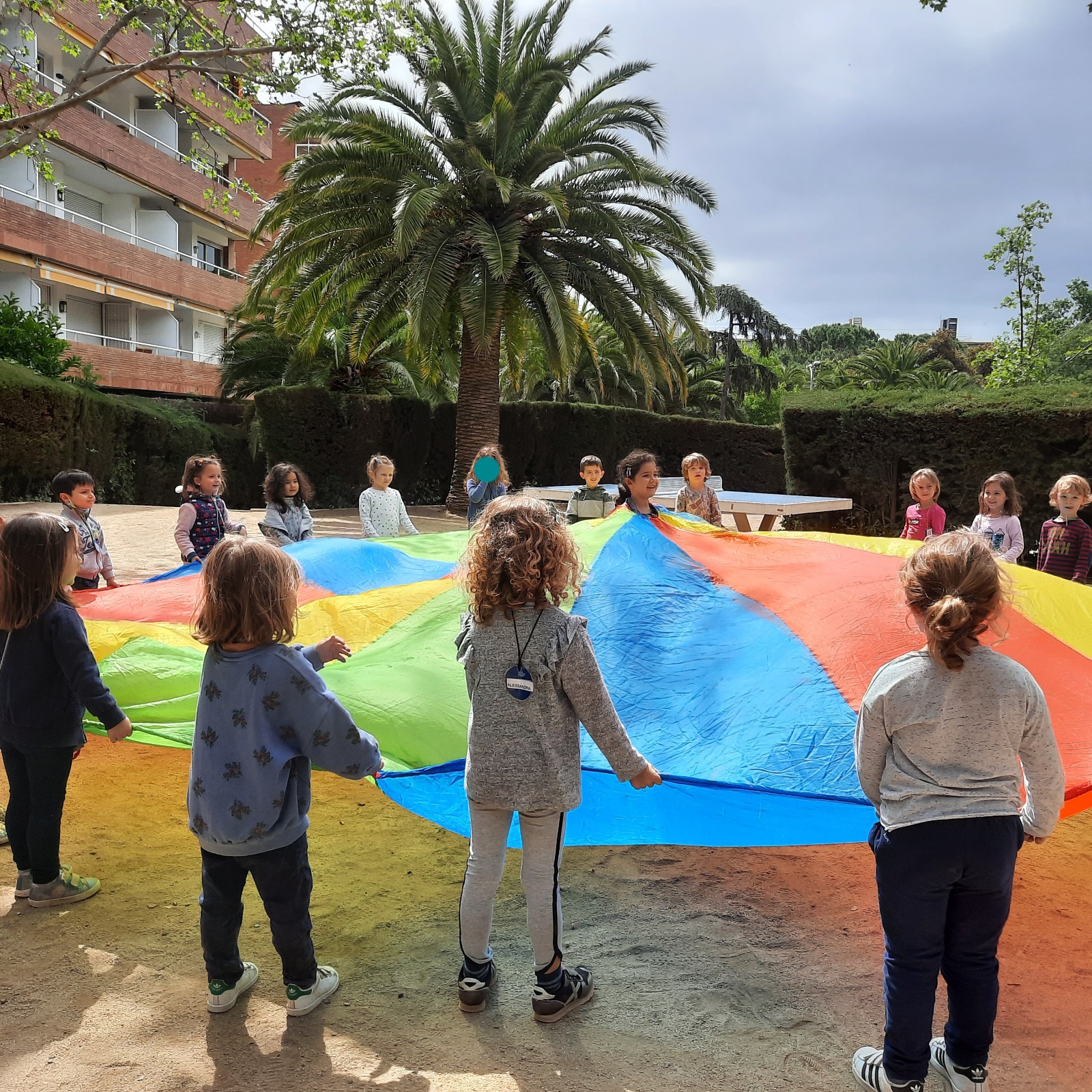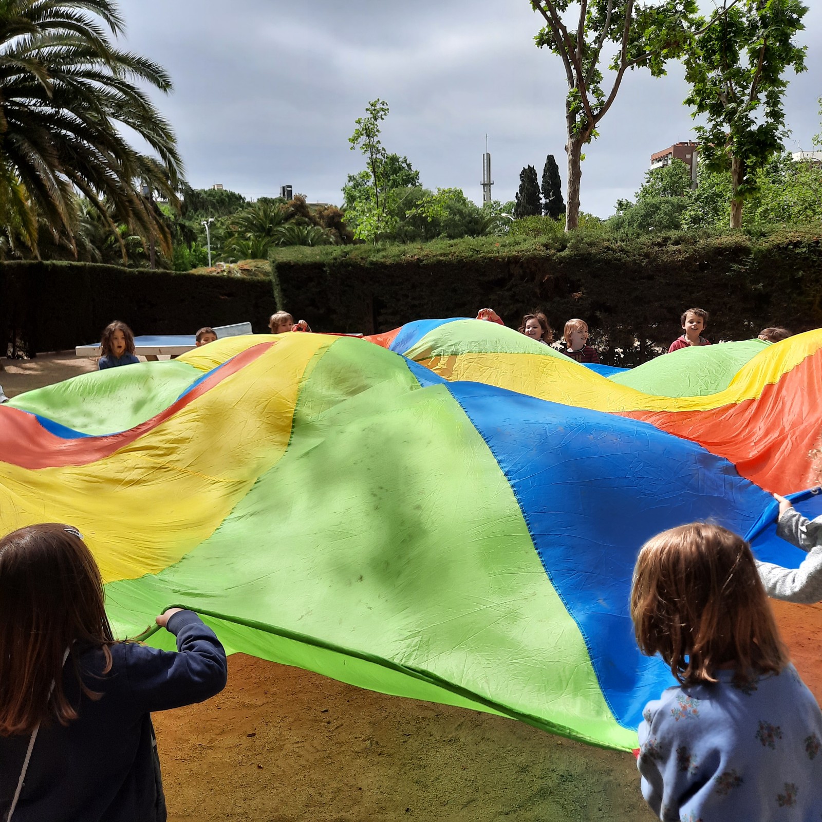 Nonostante i nuvoloni mattutini alla fine é uscito il sole! Siamo andati ad esplorare i giardini di Vil·la Cecília e dopo corse, arrampicate e giochi con il paracadute ludico ci siamo goduti il meritato pic-nic!