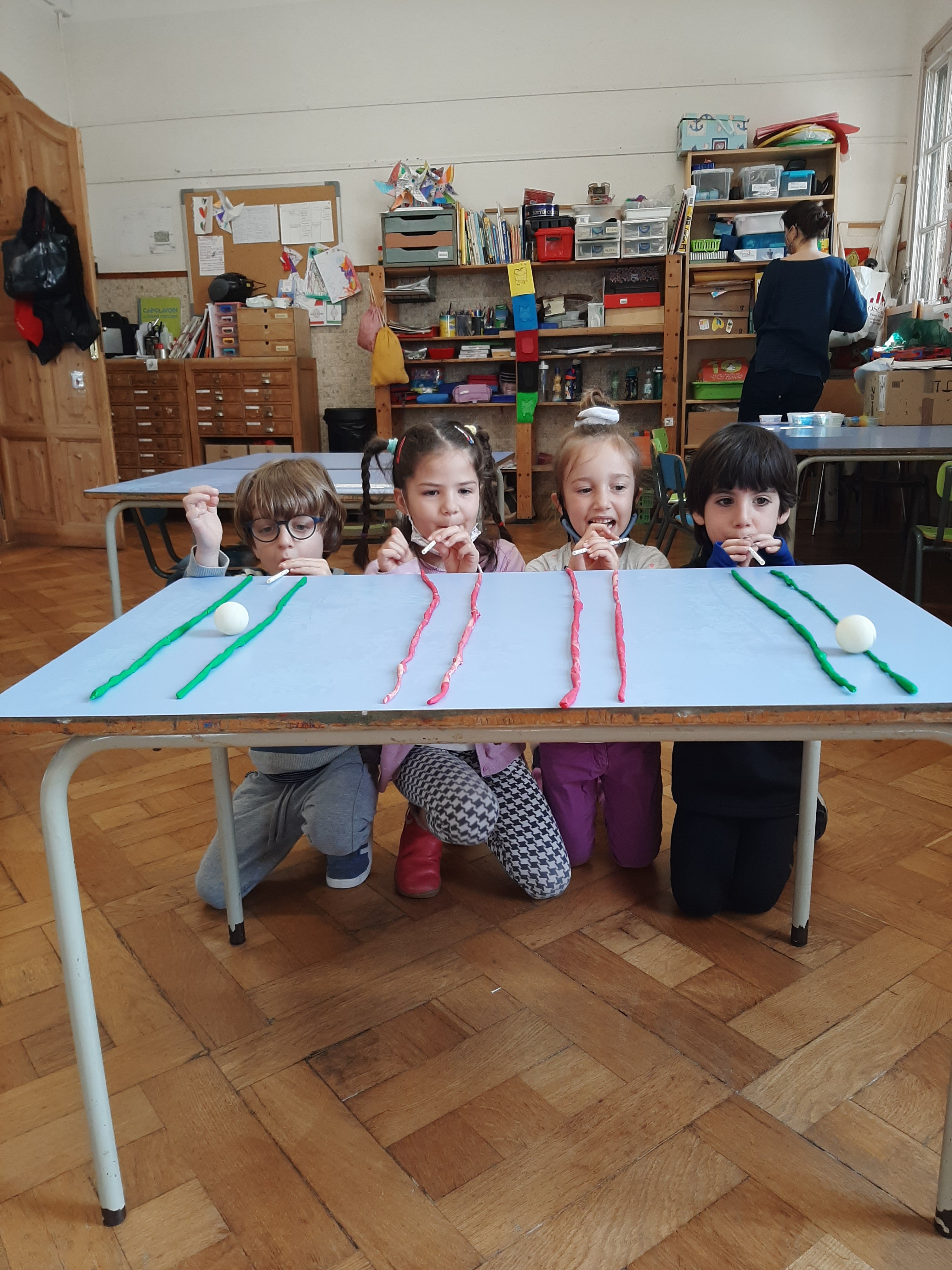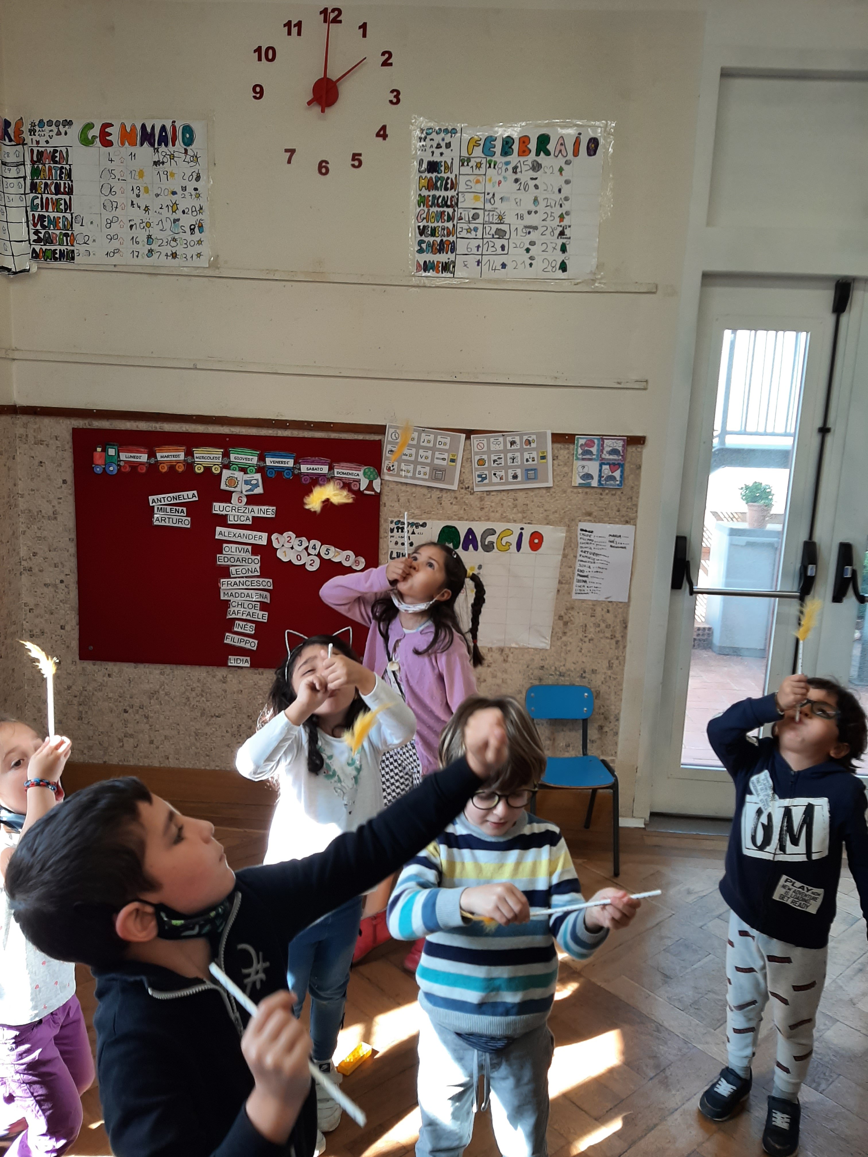 Giochiamo con palline leggere, piume e veline. Ci divertiamo facendole muovere e danzare con il nostro soffio