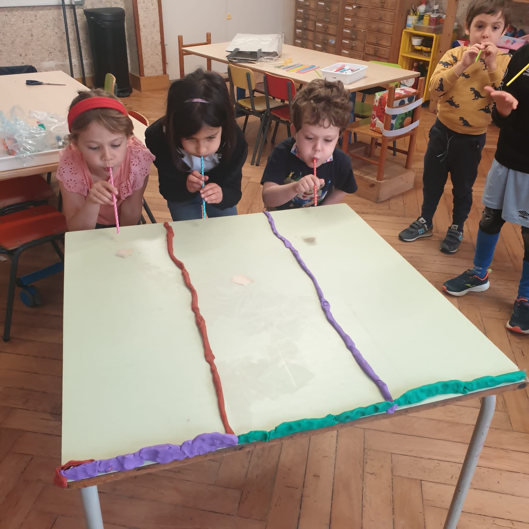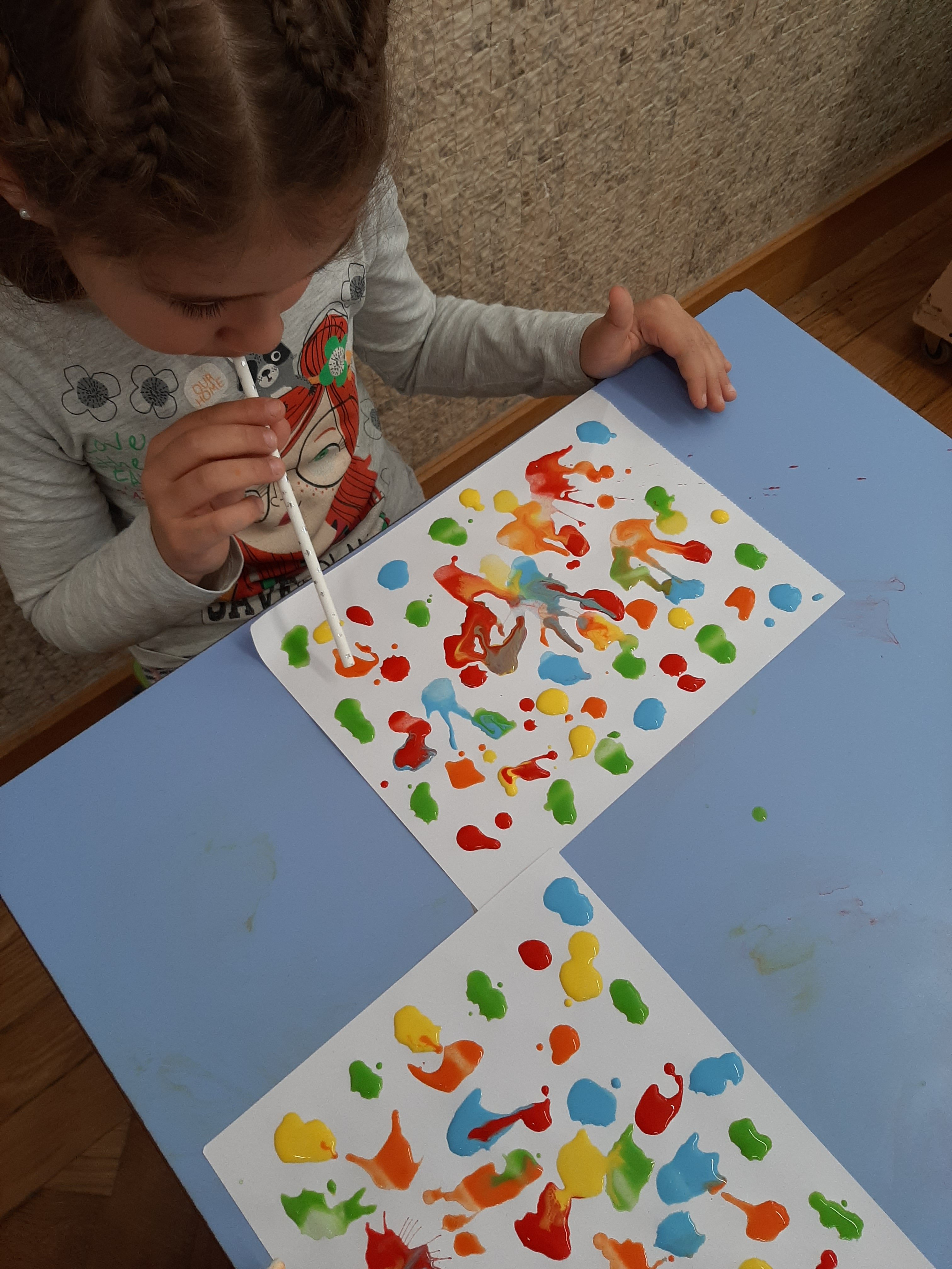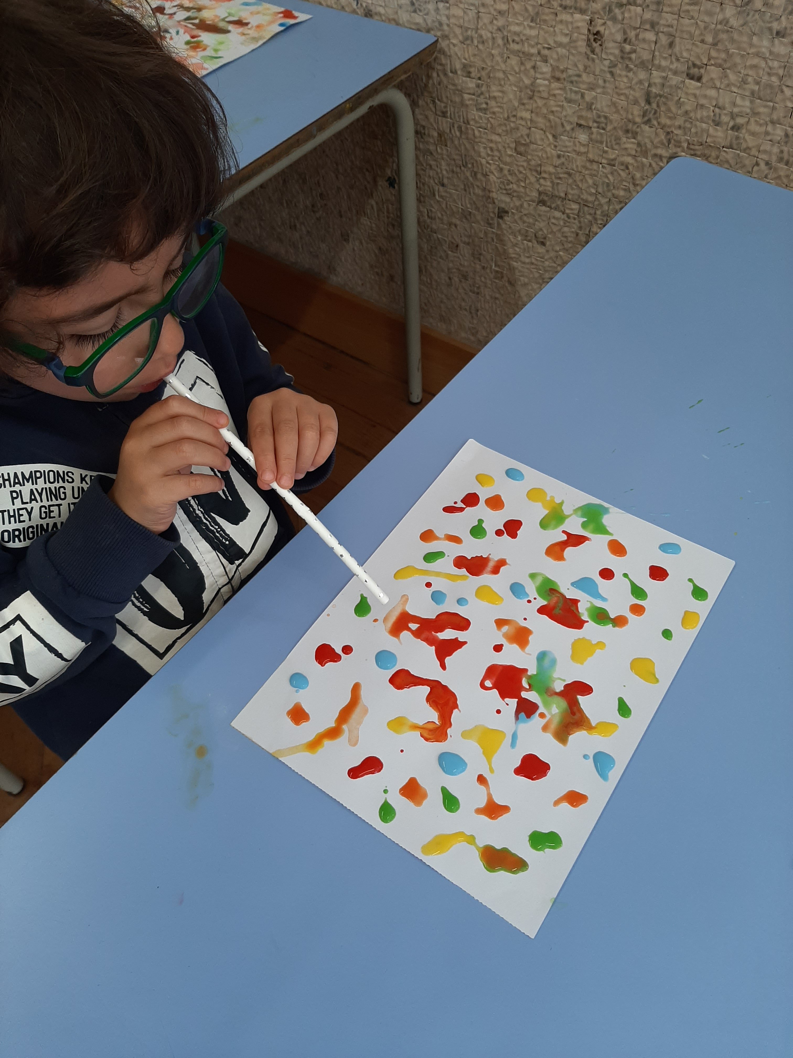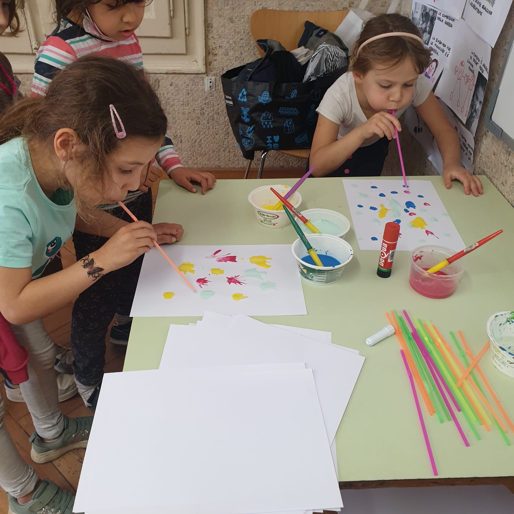 Infine con acquerelli e cannucce ci cimentiamo nella pittura a soffio.