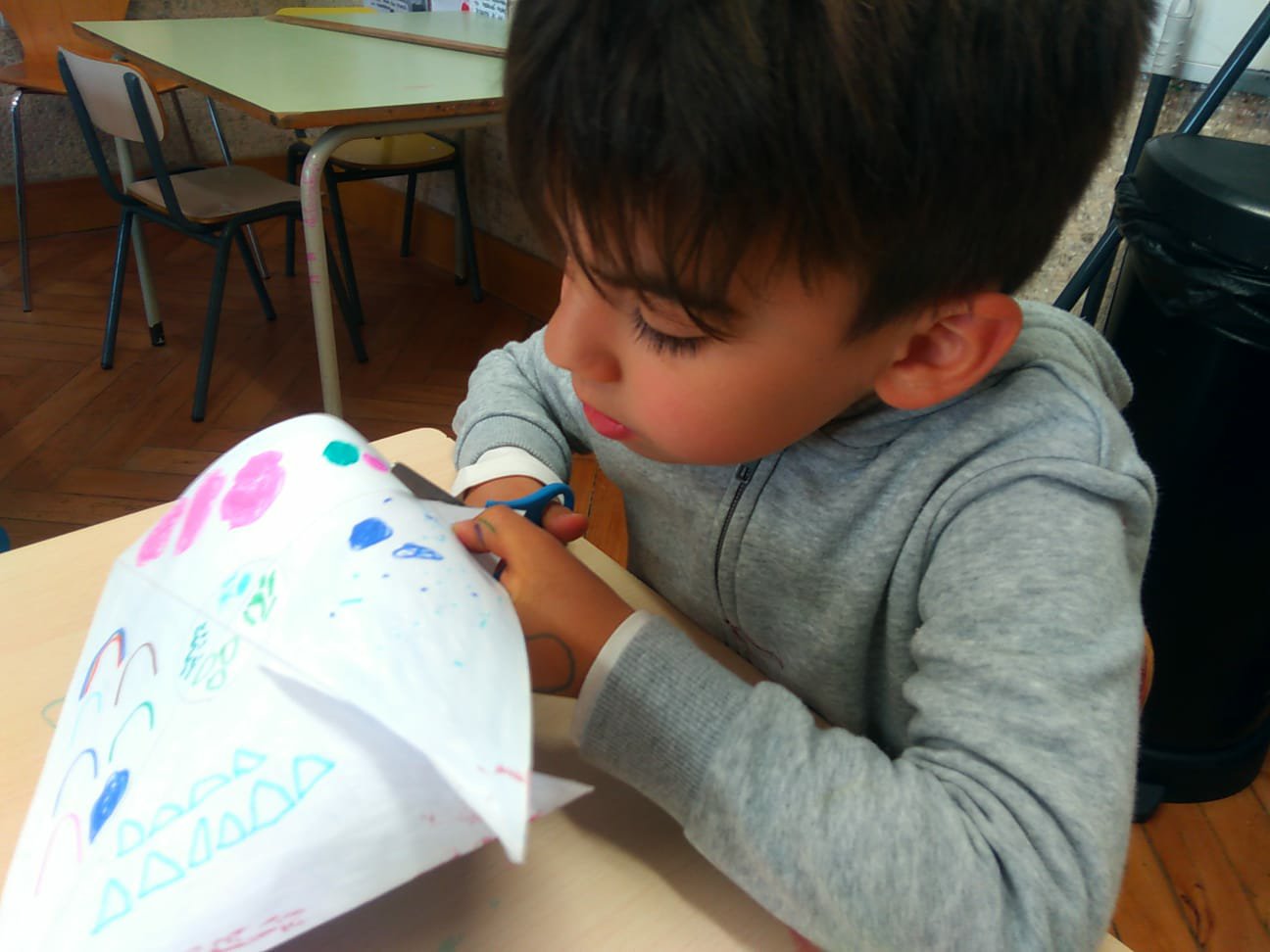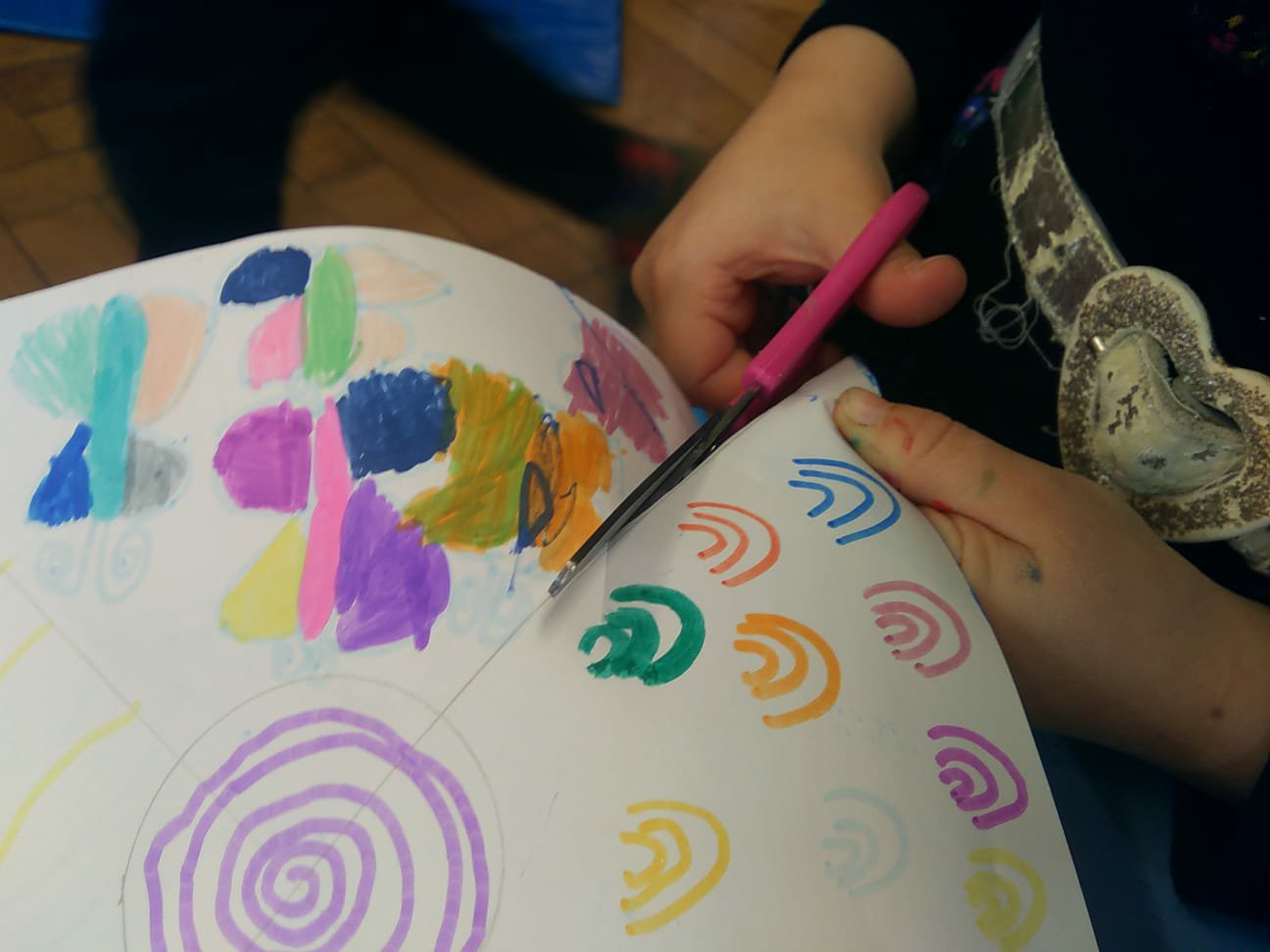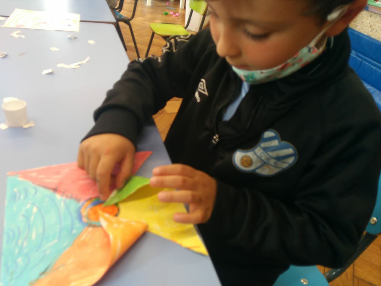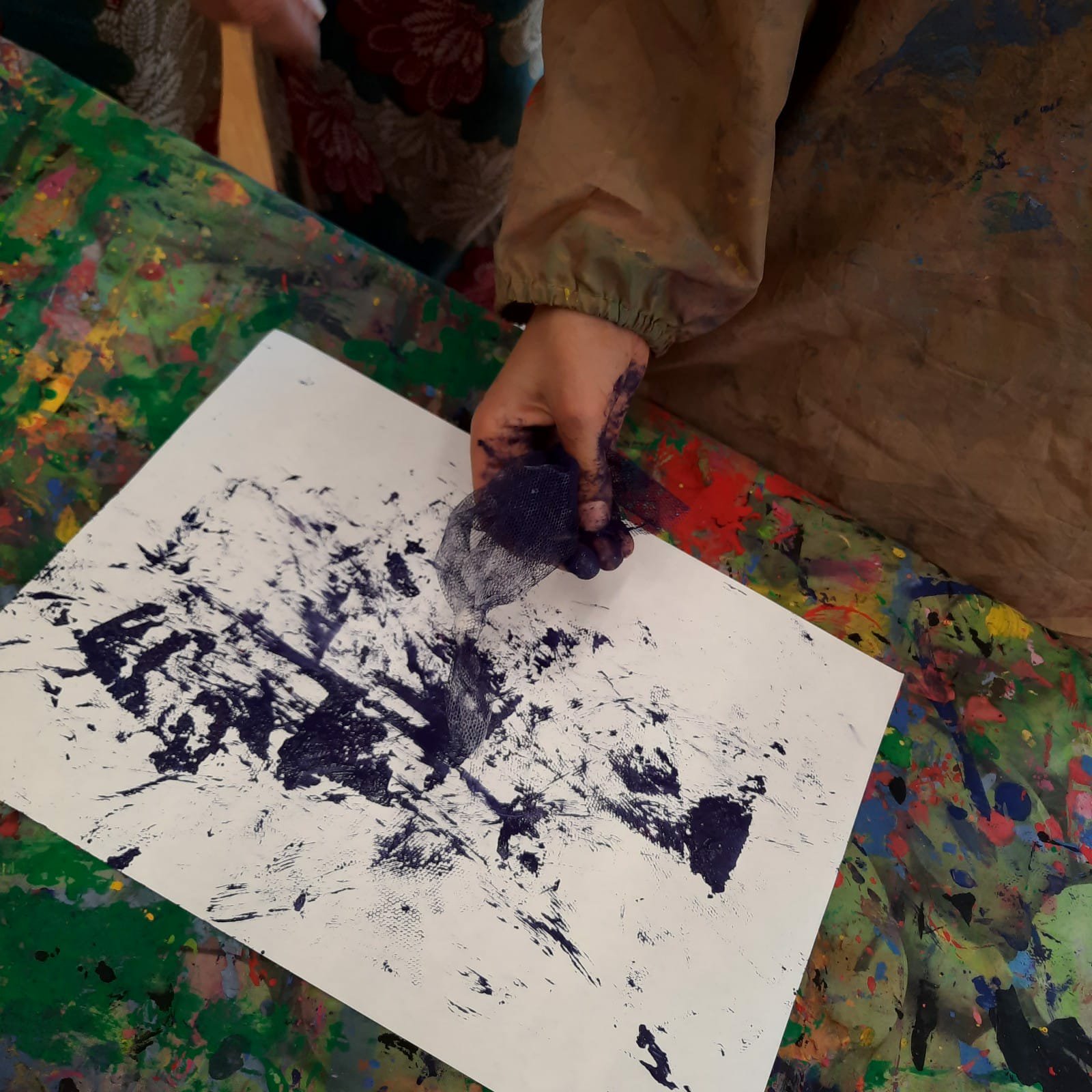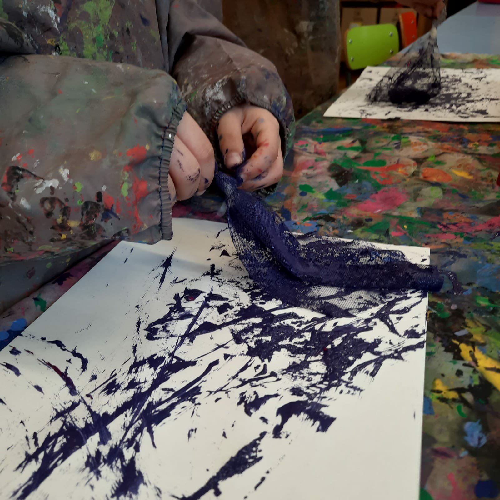 Ascoltiamo la poetica storia: “Di che colore é il vento?” di Anne Herbauts. Utilizziamo veli e pitture per rendere artisticamente la carezza del vento.
