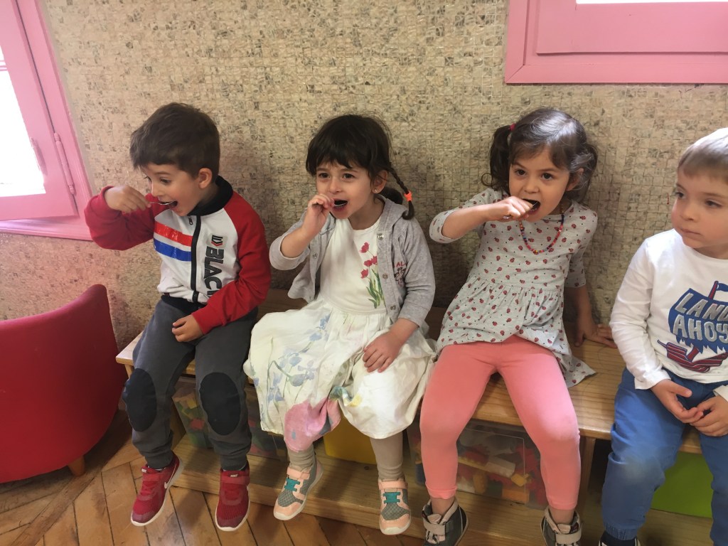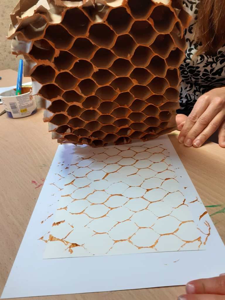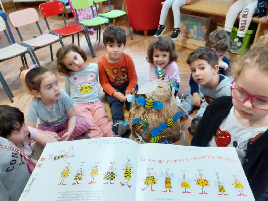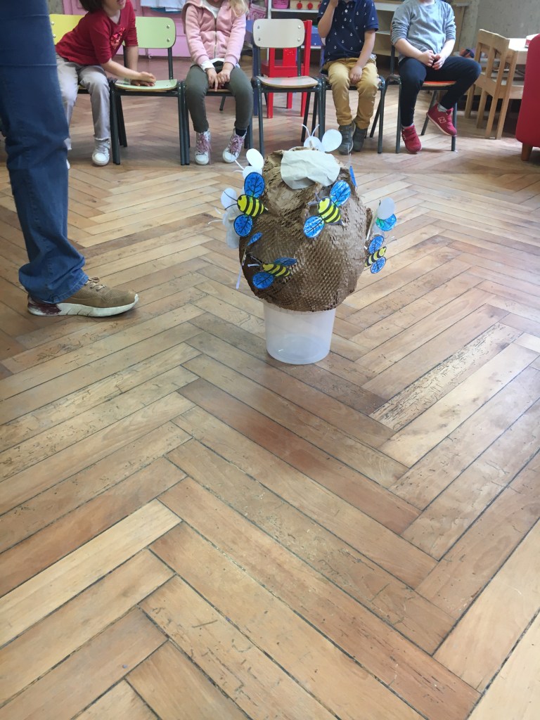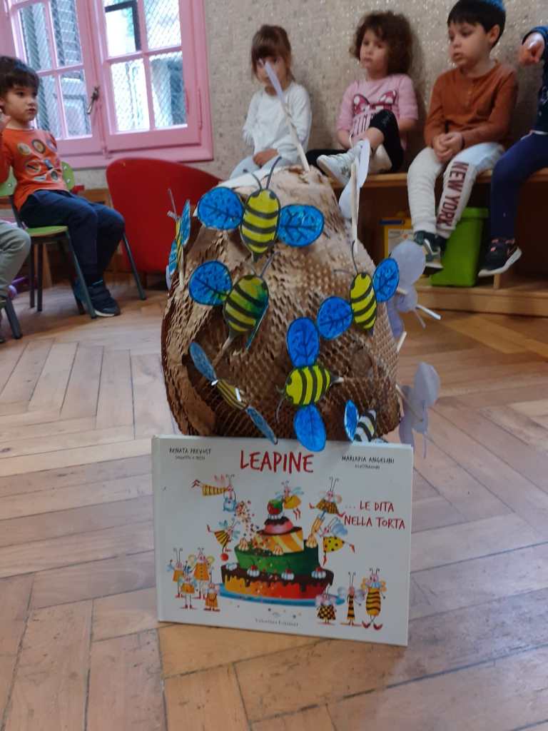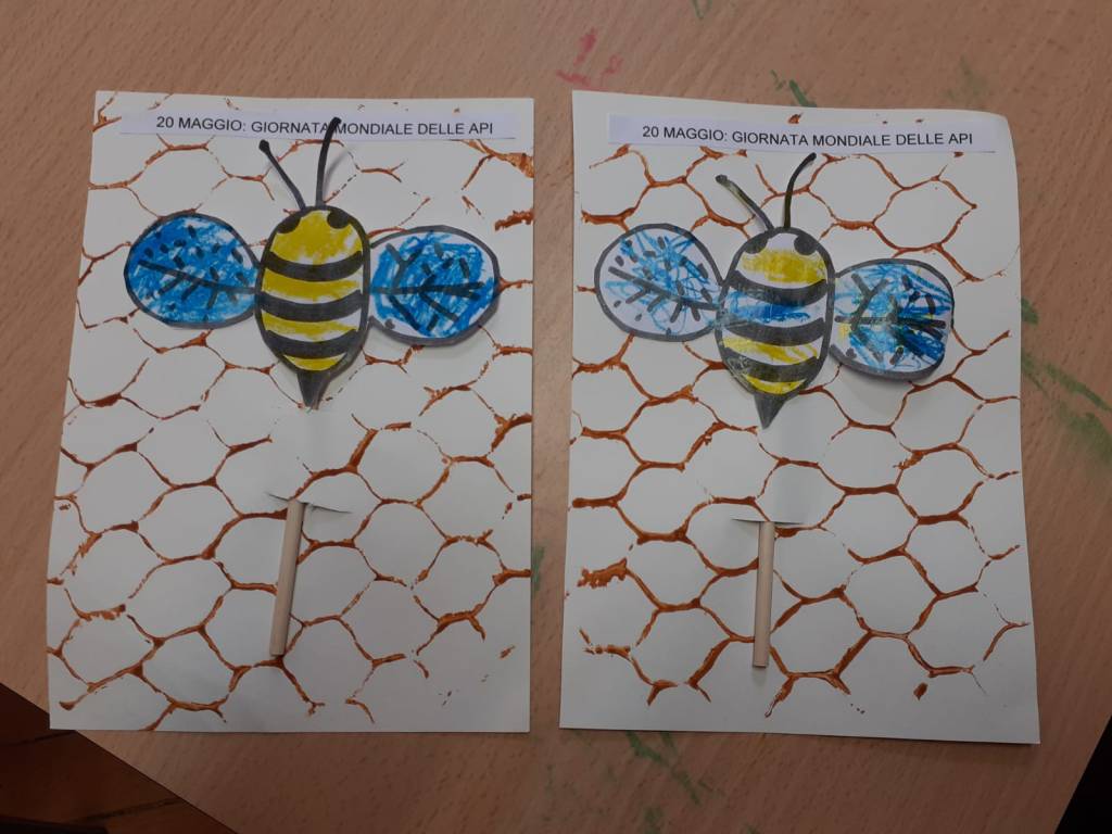 In occasione della giornata mondiale delle api, lo scorso 20 maggio abbiamo approfittato per conoscere queste preziose amiche, e la loro importanza per l’ecosistema, attraverso il racconto : “Le Apine – Le dita nella torta”. Poi abbiamo assaggiato un buonissimo miele biologico, costruito un alveare di carta, e prodotto delle api di carta, le abbiamo attaccate ad un bastoncino, e le abbiamo inserite nel nostro alveare. Infine con un cartone avente una struttura a celle esagonali abbiamo creato un timbro per rappresentare l’alveare su un cartoncino, per poi inserirci la nostra apina da portare a casa .