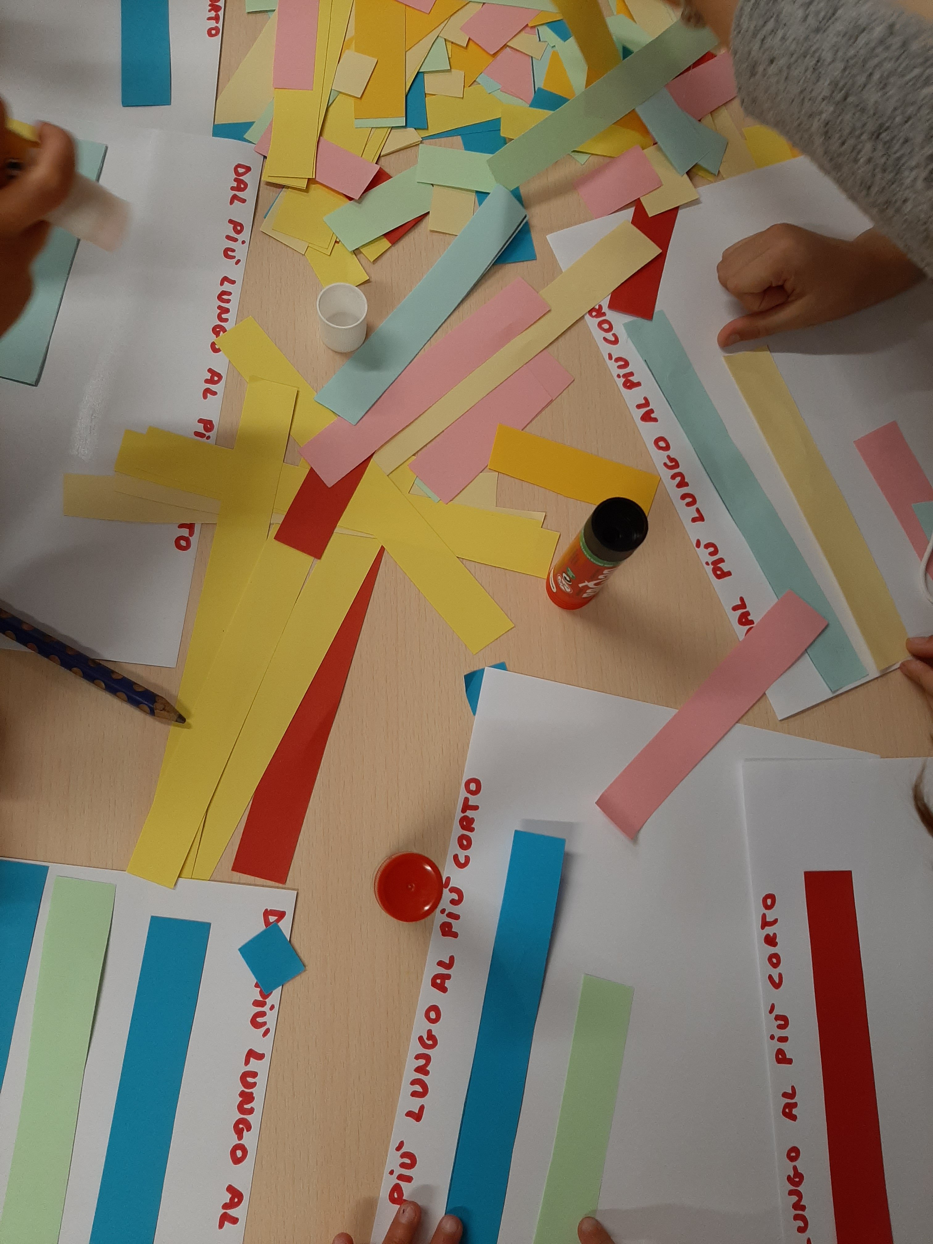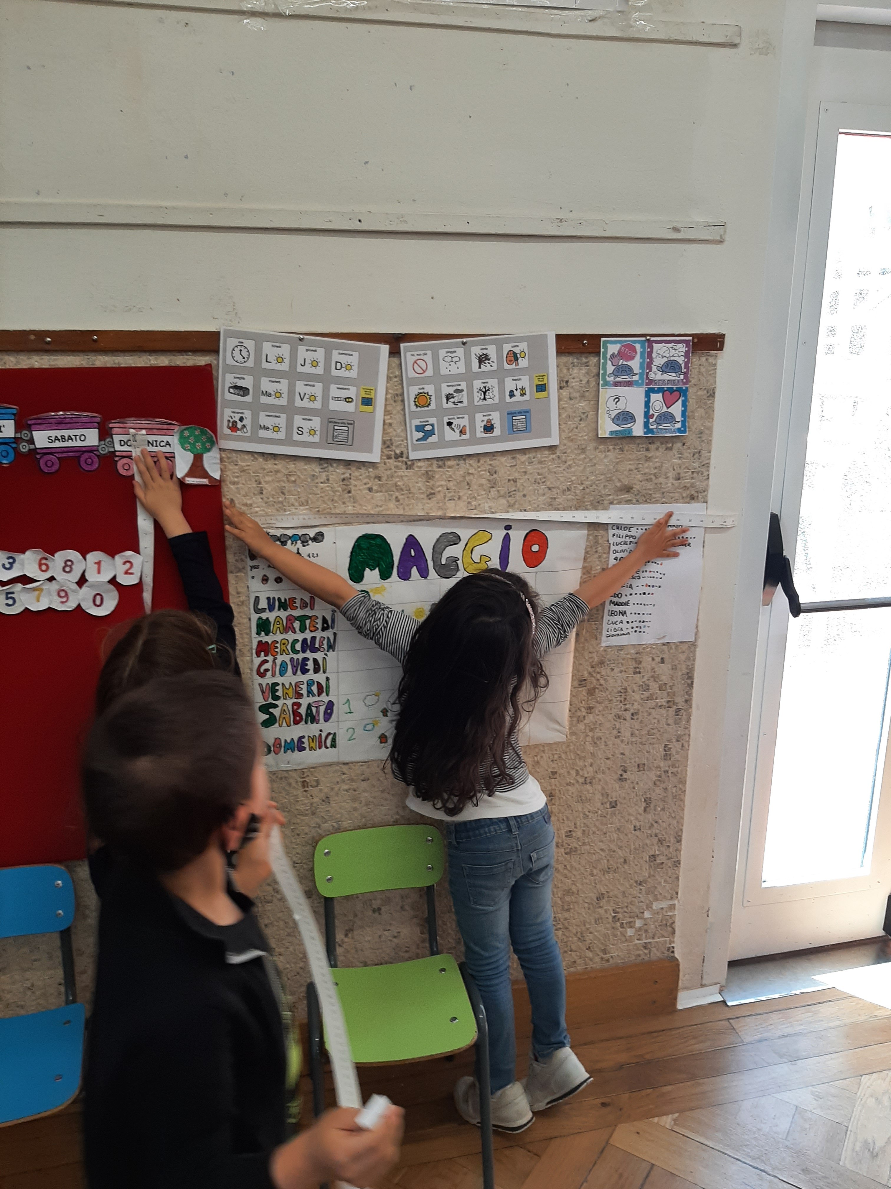 Con metri, palmi, mani, dita e striscioline, abbiamo anche misurato molti oggetti delle classi. Contando ed osservando, ci siamo resi conto che le cose si possono misurare in larghezza, lunghezza, altezza e spessore.
