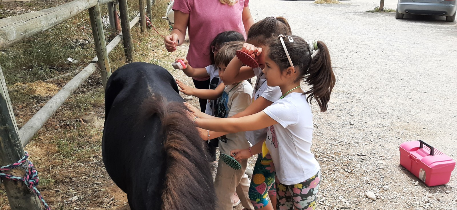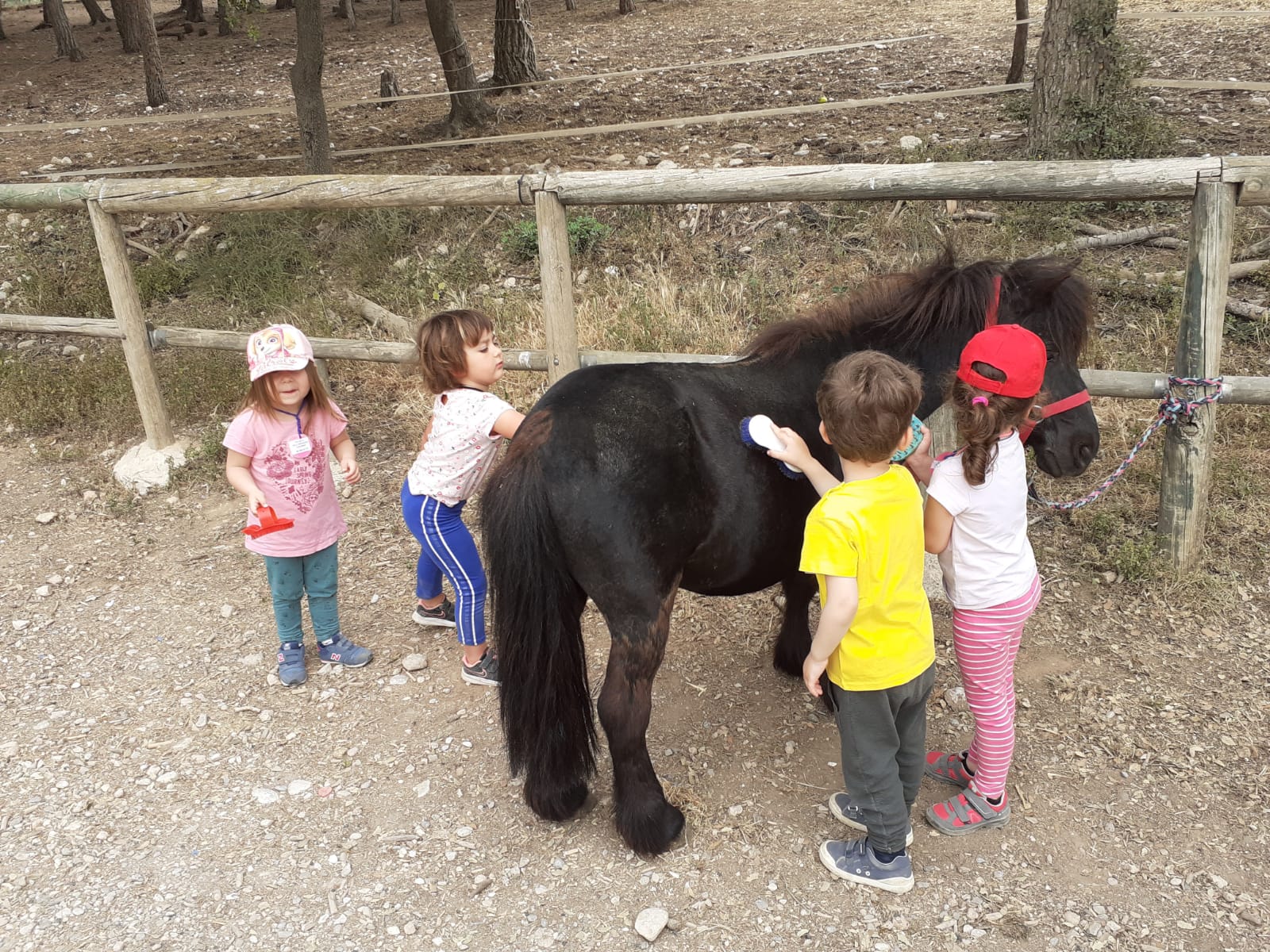Il ritrovamento della Girandola è avvenuto al centro ippico Camins a cavall a Esparraguera, dove ci siamo avvicinati ai pony. Li abbiamo nutriti, pettinati, accarezzati e persino cavalcati. Relazionarsi con i cavalli ci ha permesso, ancora una volta, di sperimentare delle emozioni, lavorare l’empatia, il concetto di cura, di rispetto, la comunicazione non verbale.