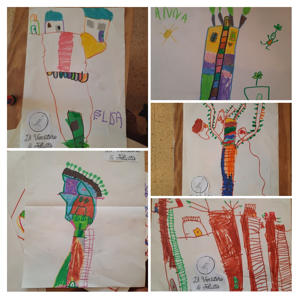 E siccome a tutti e a tutte ci farebbe felici avere una bella casetta sull’albero, come quelle dei personaggi de Il venditore della felicità, abbiamo sognato con la nostra casa sull’albero e l’abbiamo rappresentata! Eccone alcune!