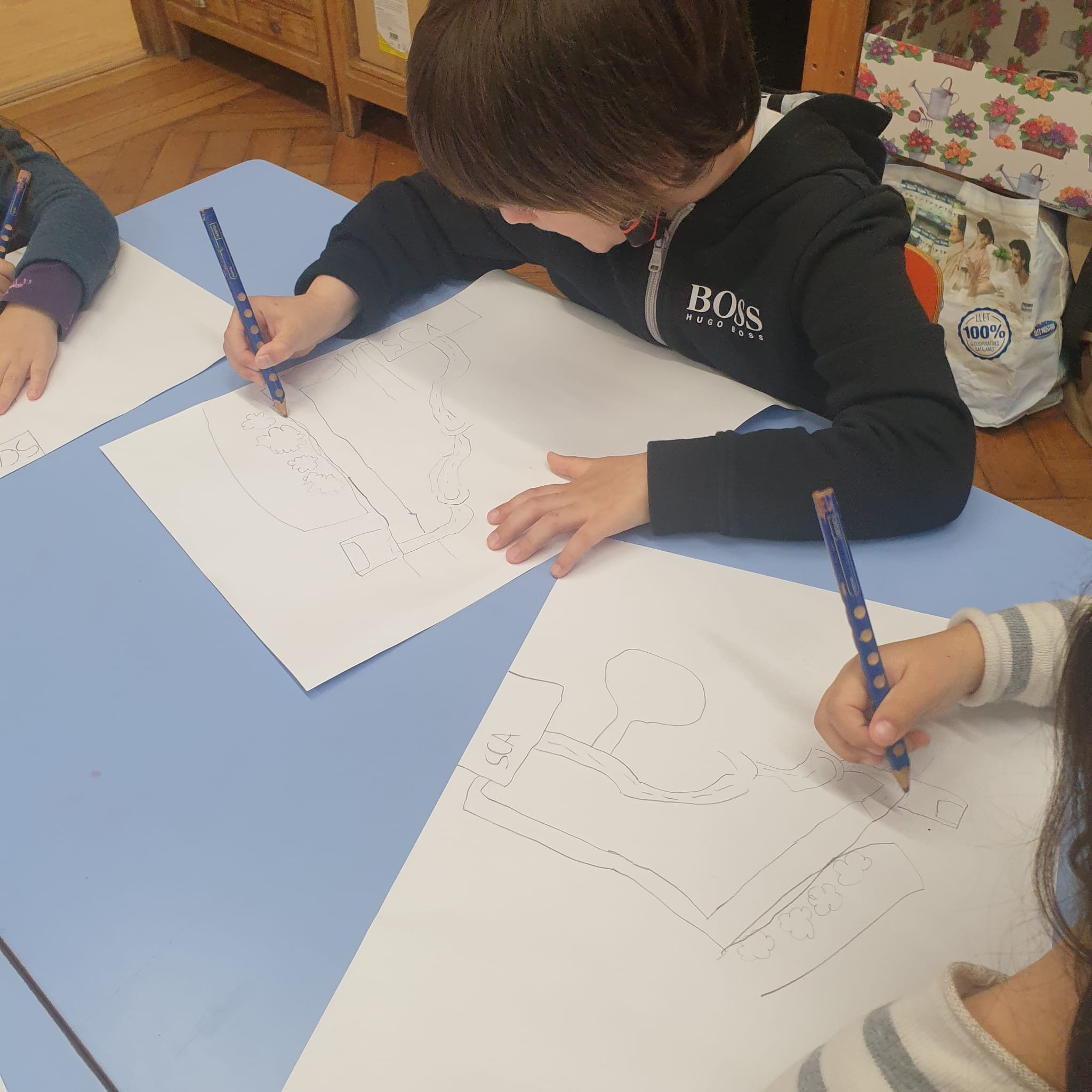Quest’anno abbiamo esplorato molto il quartiere di Sarriá, osservando edifici ed antiche ville. Quindi come veri architetti abbiamo cercato di riprodurre delle case, usando differenti forme e costruendo modellini. Infine abbiamo ricreato su carta la nostra casa, facendone la piantina con l’esatta ubicazione delle varie stanze.