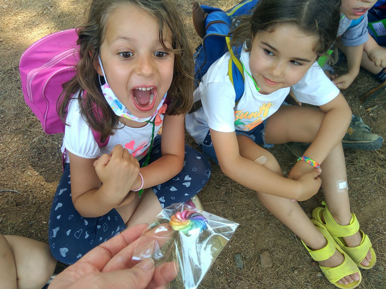 E dopo aver ascoltato il suono di un aliante che sorvolava il parco, abbiamo ritrovato, in mezzo a dei cespugli, un plico indirizzato a tutte le esploratrici ed esploratori, con i ringraziamenti di Aleandro. Che bella sorpresa!!!! Il pacchetto conteneva delle meravigliose girandoline con i colori delle emozioni per tutti!!!
