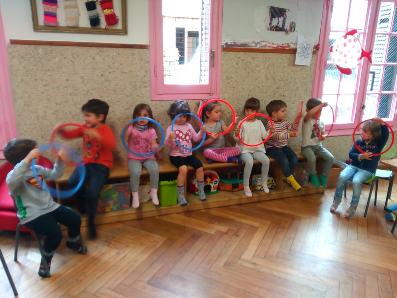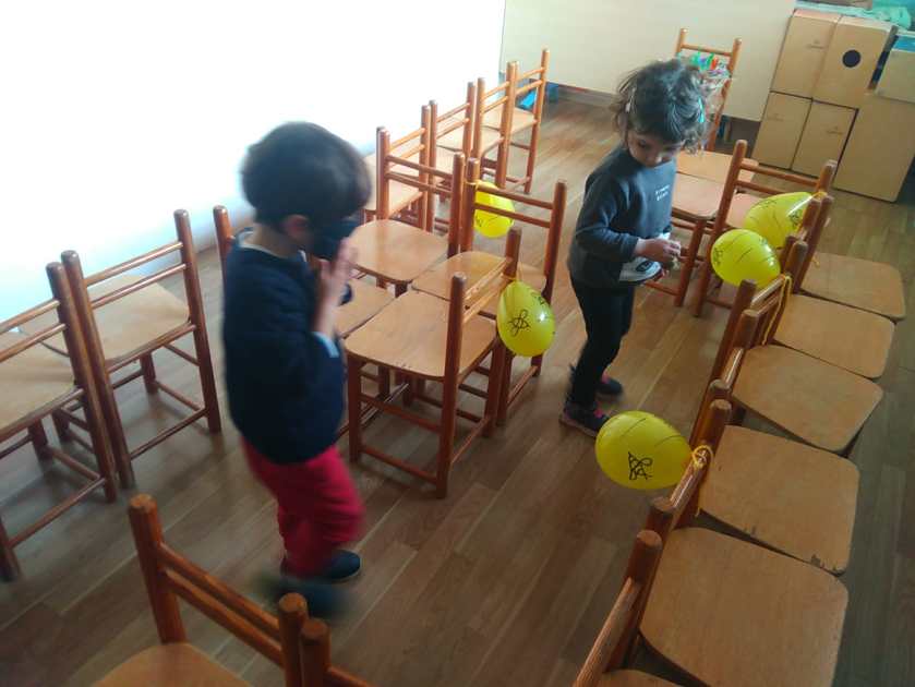Balliamo mimando le canzoni Zum zum fa l’abella, El llop al bosc i Puja al cotxe.