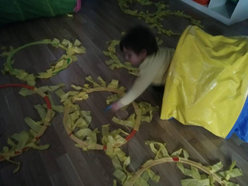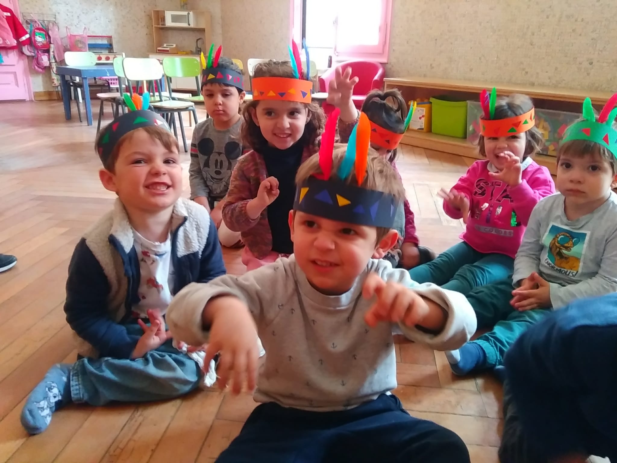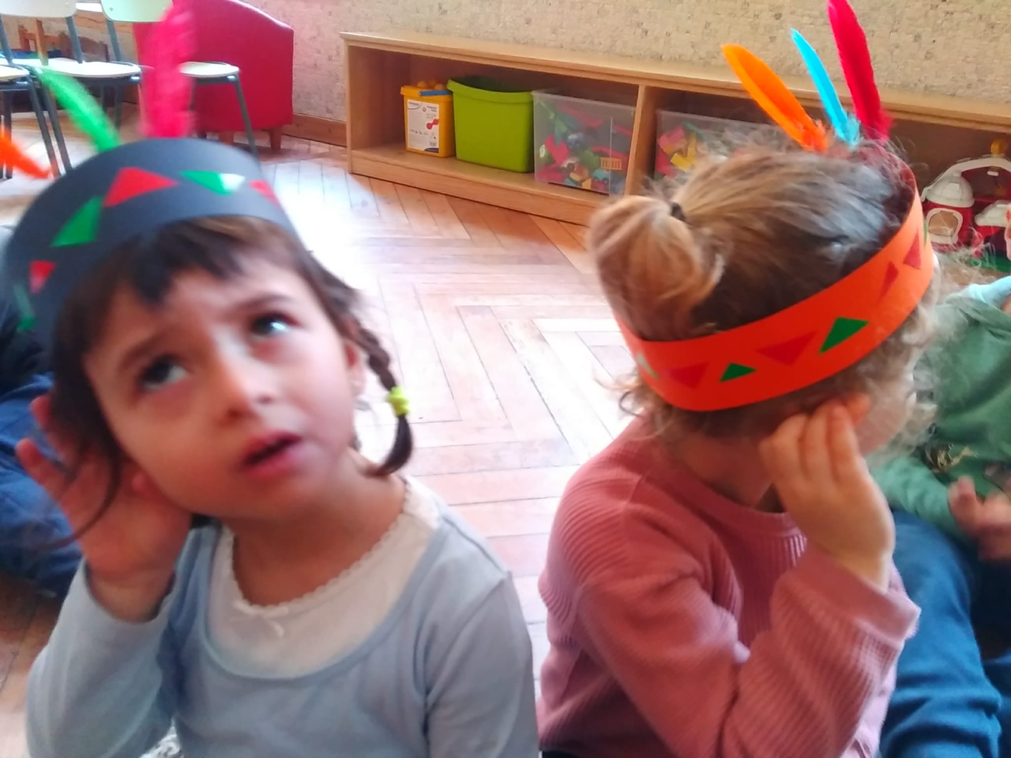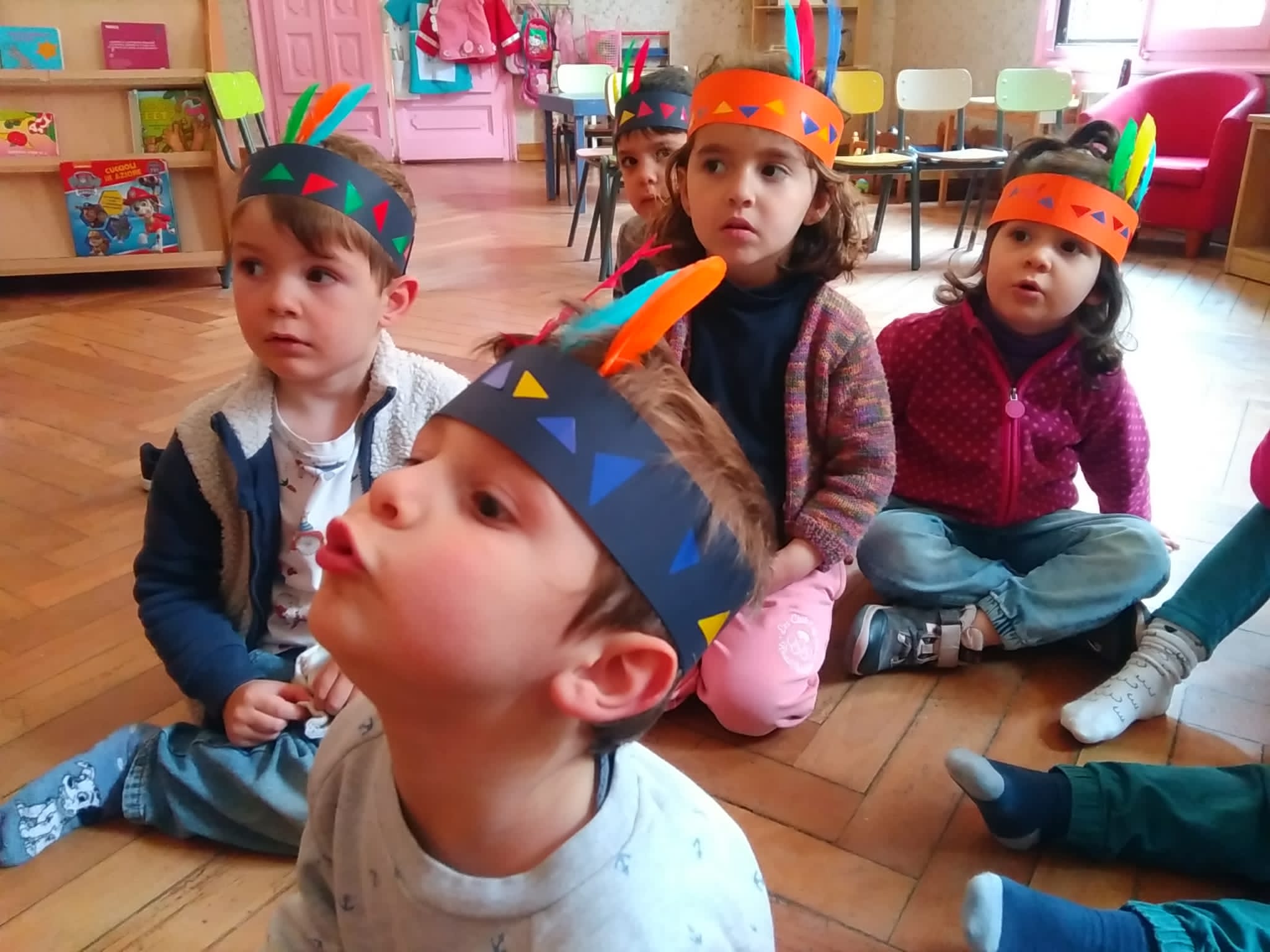 … e con i gomets, per decorare i copricapi di Indianina e Indianino, ascoltando i suoni della natura.
