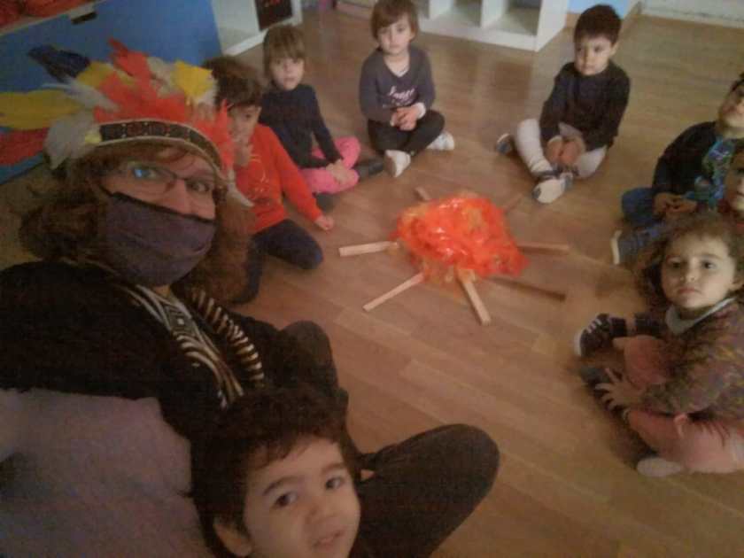Attorno al fuoco hanno ascoltato la Storia di Indianino e Indianina e attraverso giochi, percorsi e labirinti sensoriali hanno scoperto come… essere silenziosi come la tigre, ascoltare con orecchie da lupo e guardare con occhi di lince!