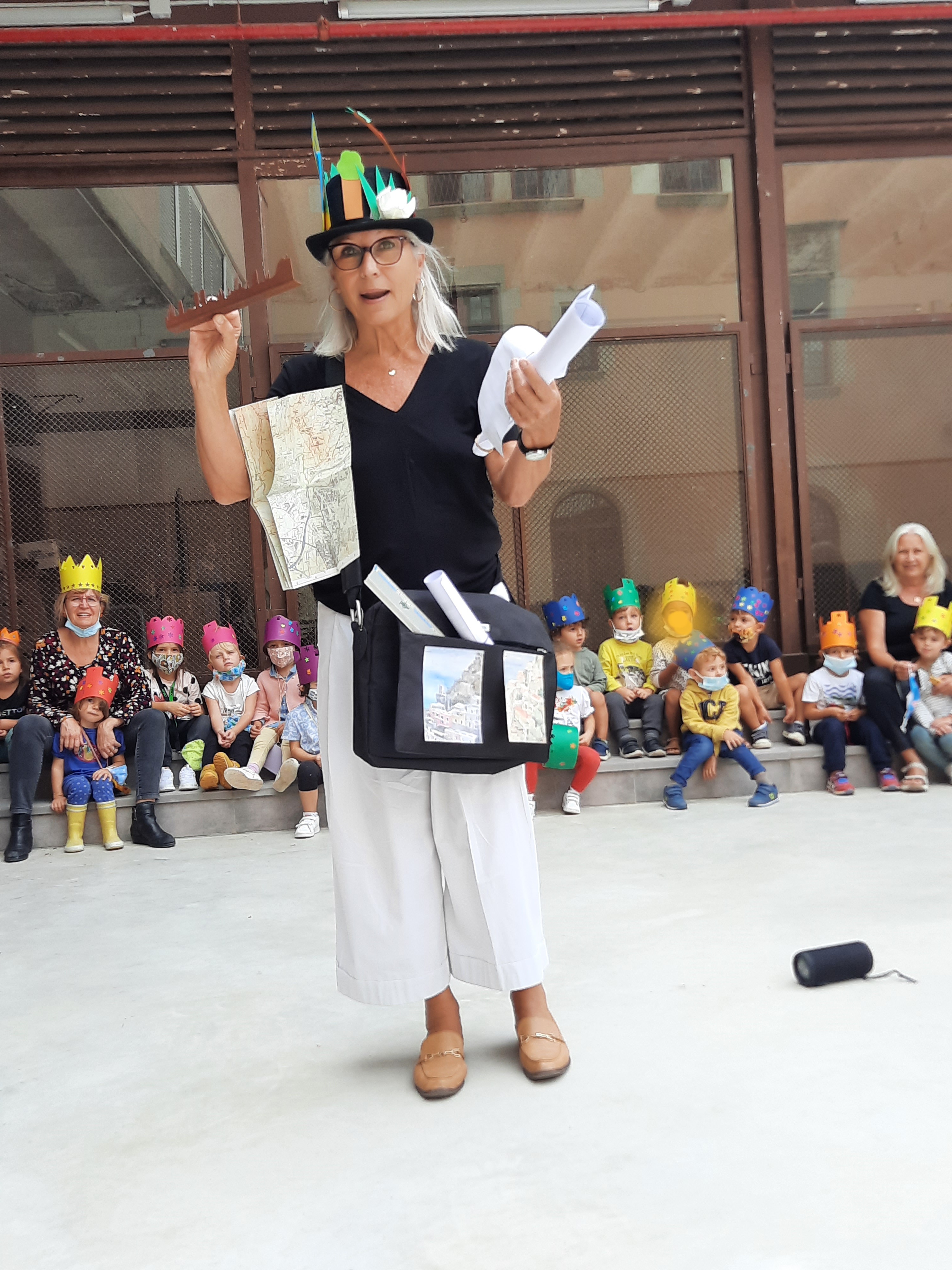 Così si è presentata, durante la nostra festa della Mercè a scuola, Diletta, la Bio-Architetta. E mentre raccontava, tirava fuori tutto il suo arsenale: squadre, metri, mappe, piantine, skylines, costruzioni di carta, una valigia piena di sorprese!