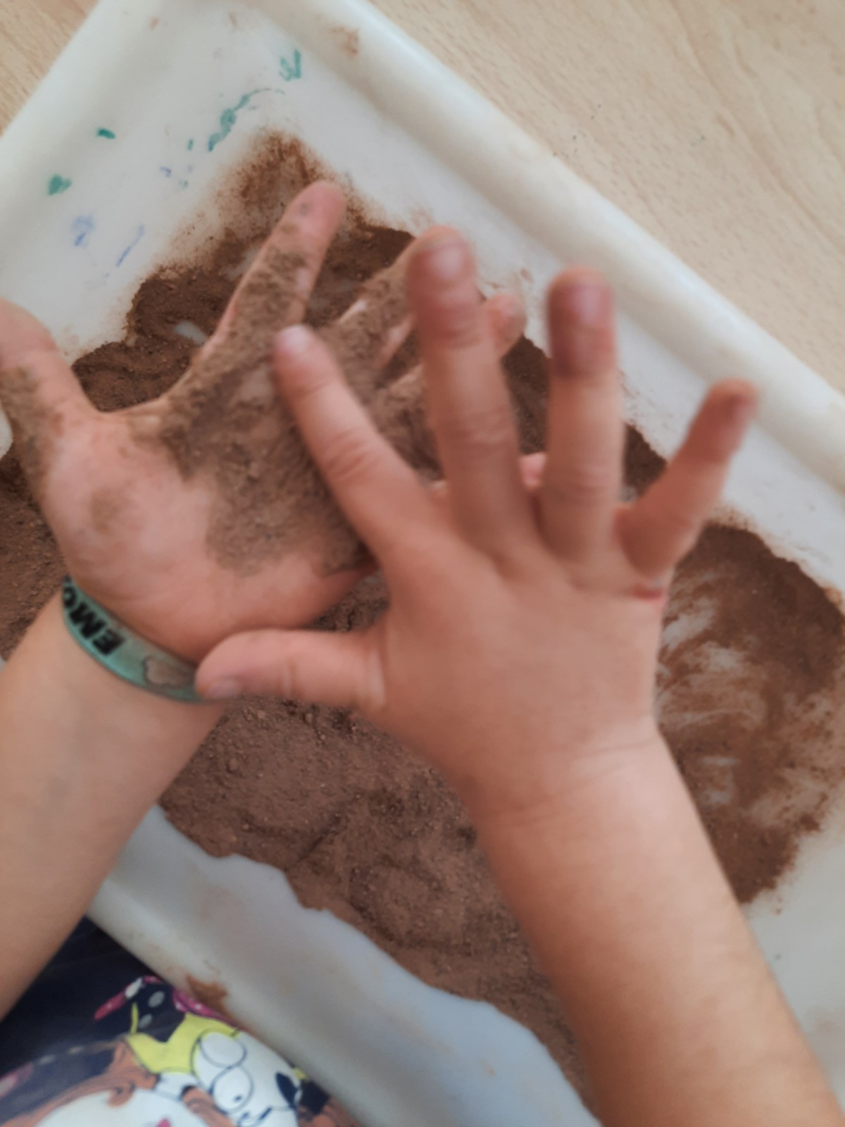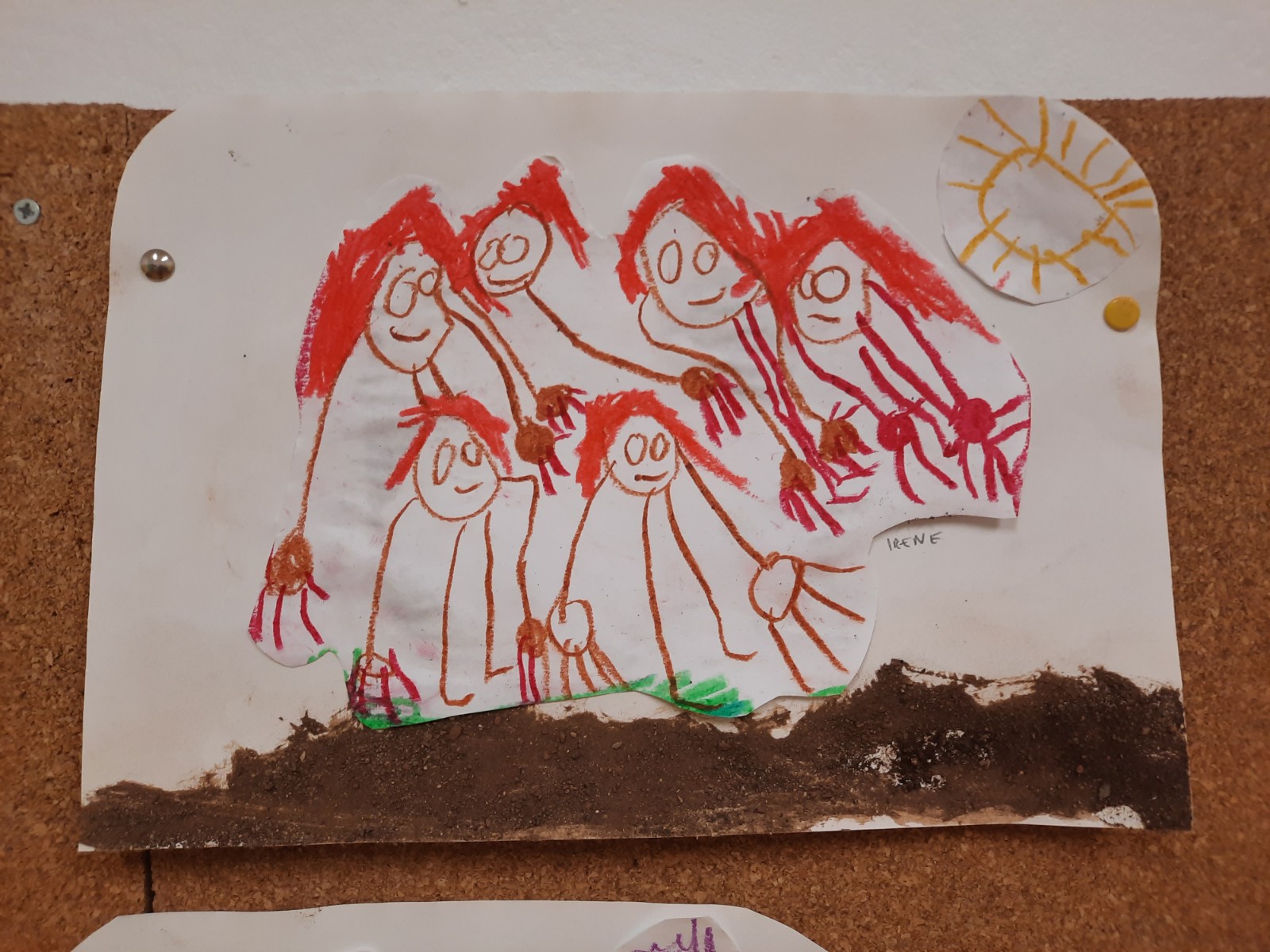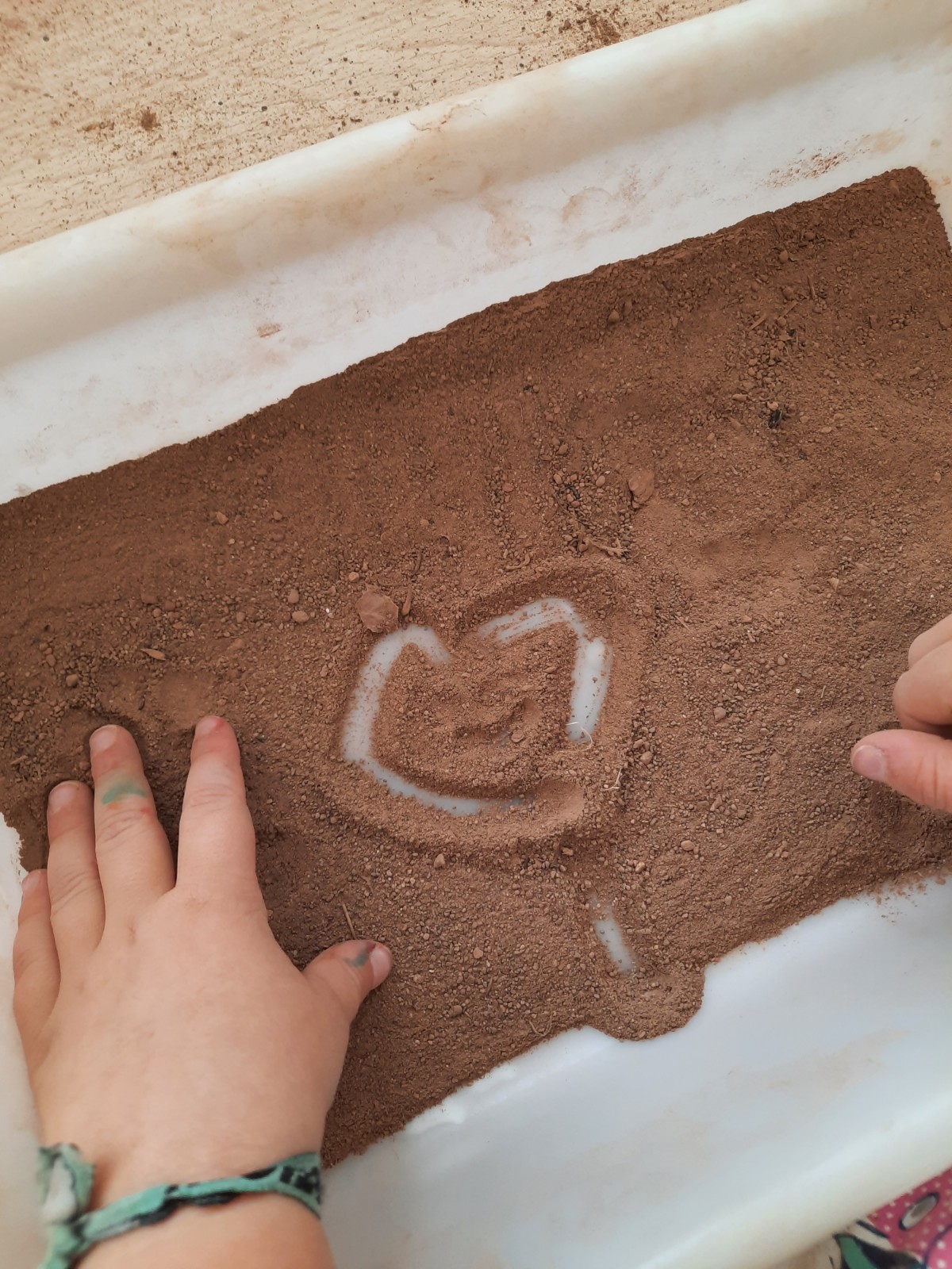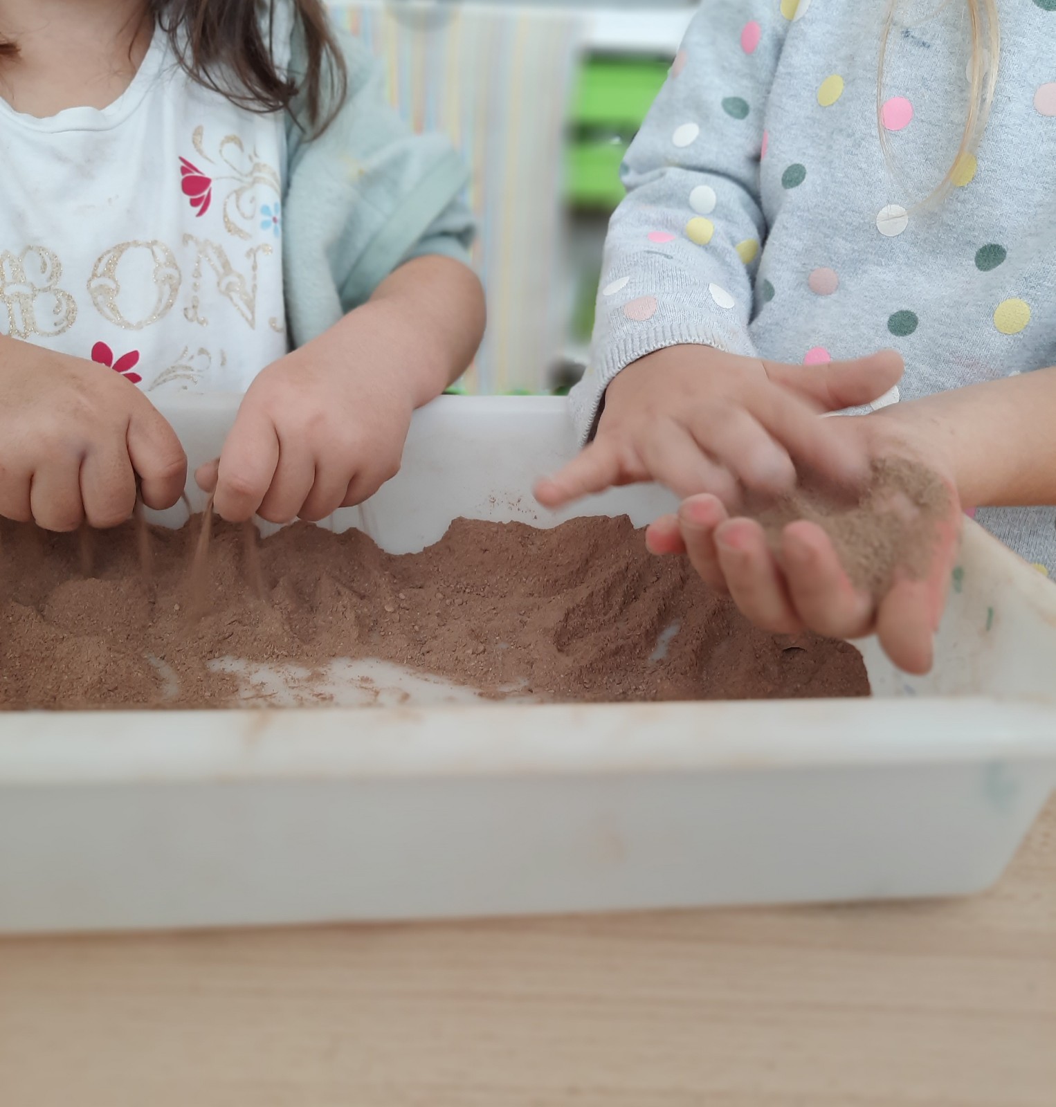 Questa è grigia… questa marrone… No, sono marrone chiaro e marrone scuro! Odora di terra… Odorano anche le foglie e fanno rumore. La terra serve per piantare fiori… e per fare un castello… no, quello si fa con la sabbia! Le formiche vivono nella terra… anche le chiocciole… e i ricci. Ho visto un fungo velenoso che cresceva sulla terra. Alcune terre sono più soavi… Non mi piace toccare la terra perché mi sporca… A me piace perché si sporcano le mani. A me invece piacciono le foglie! Nella terra si può disegnare!