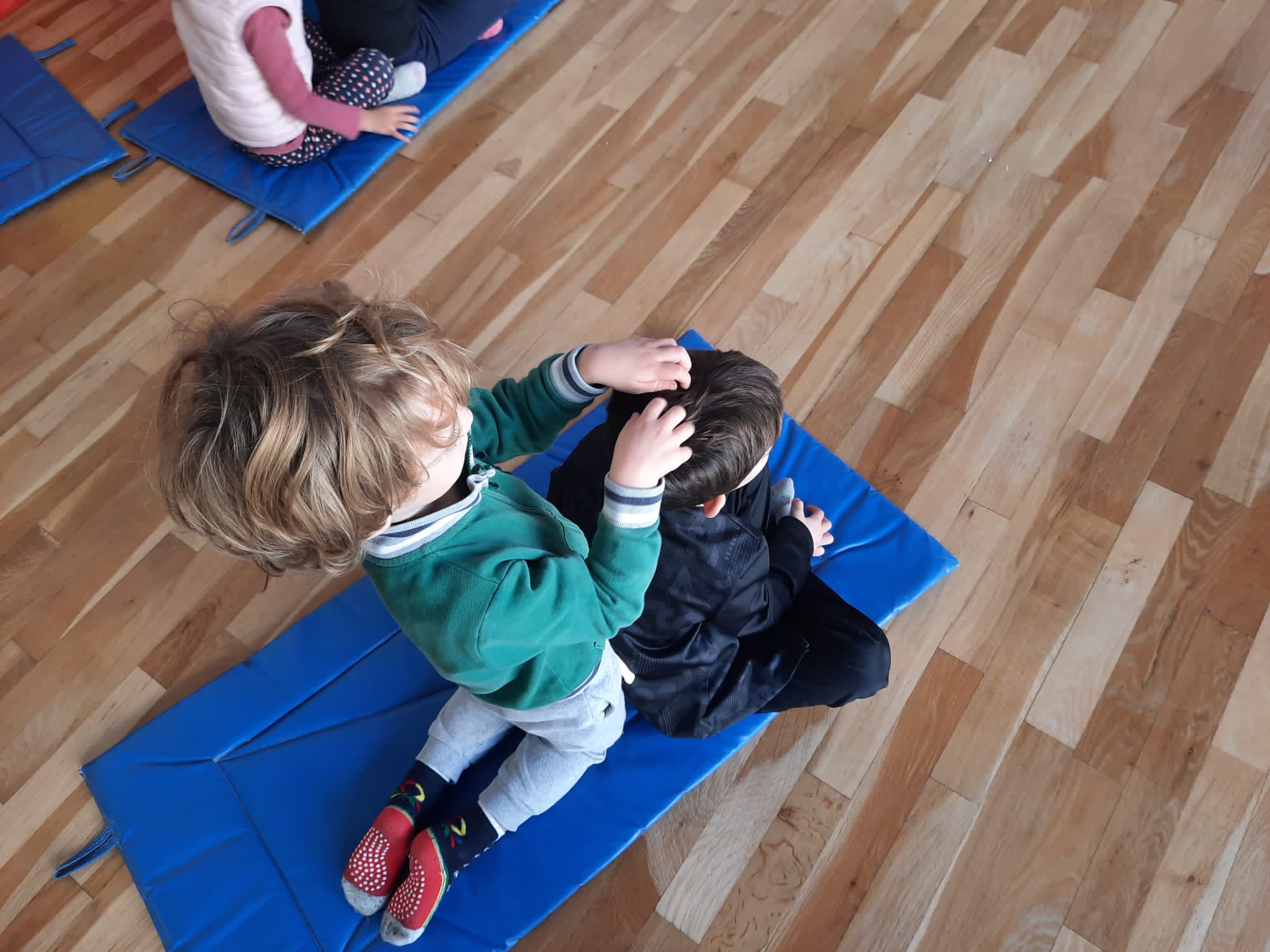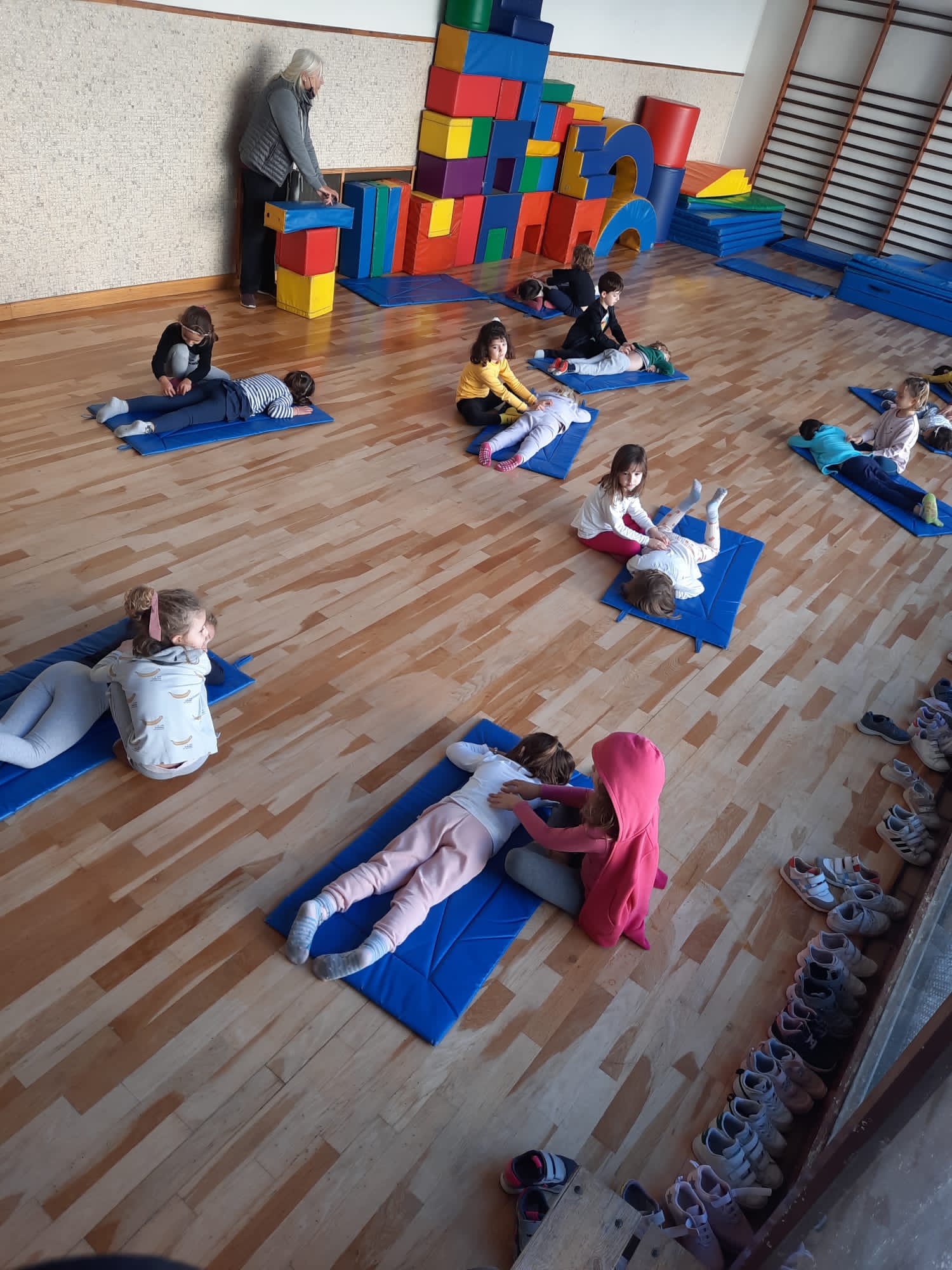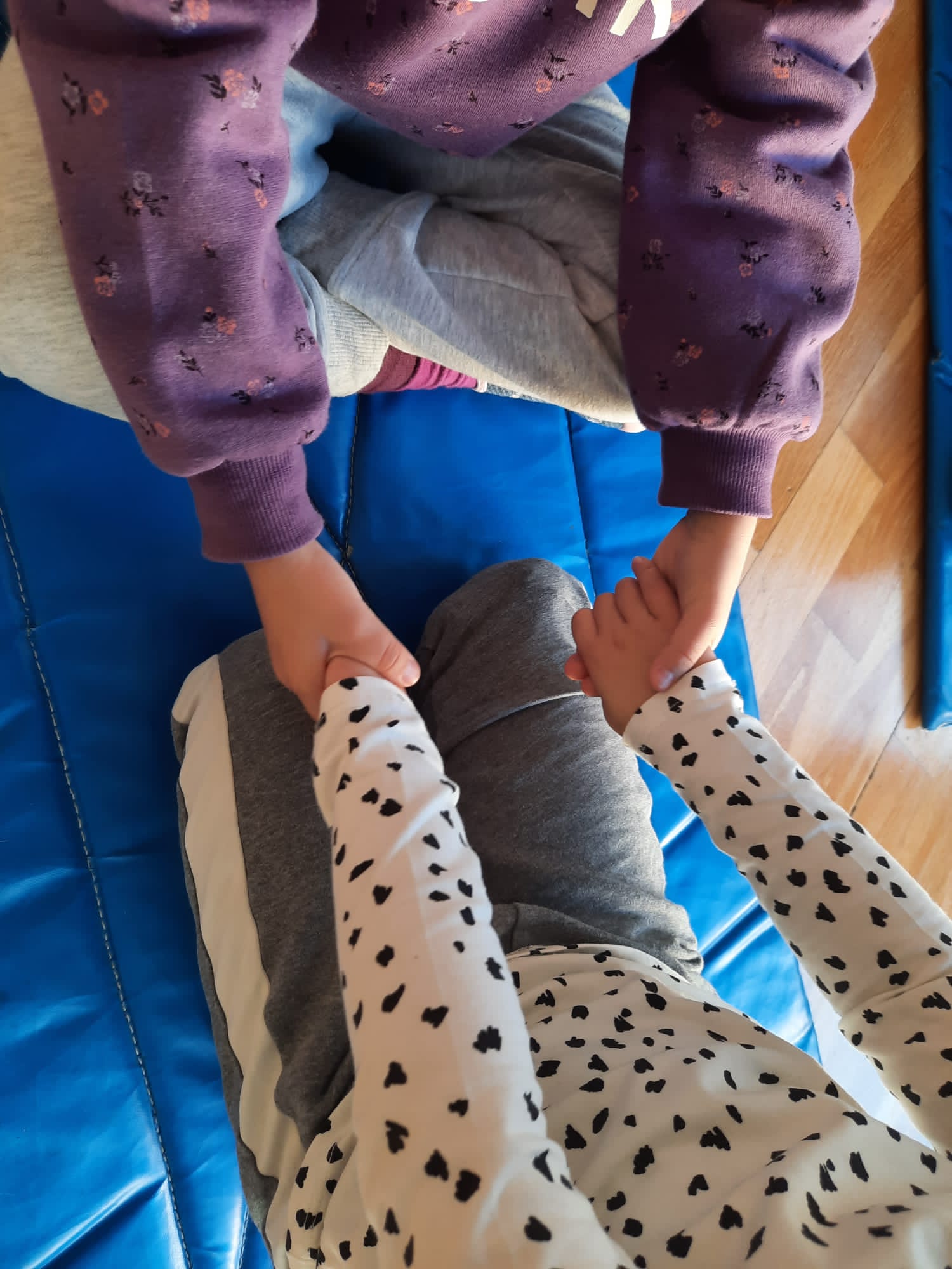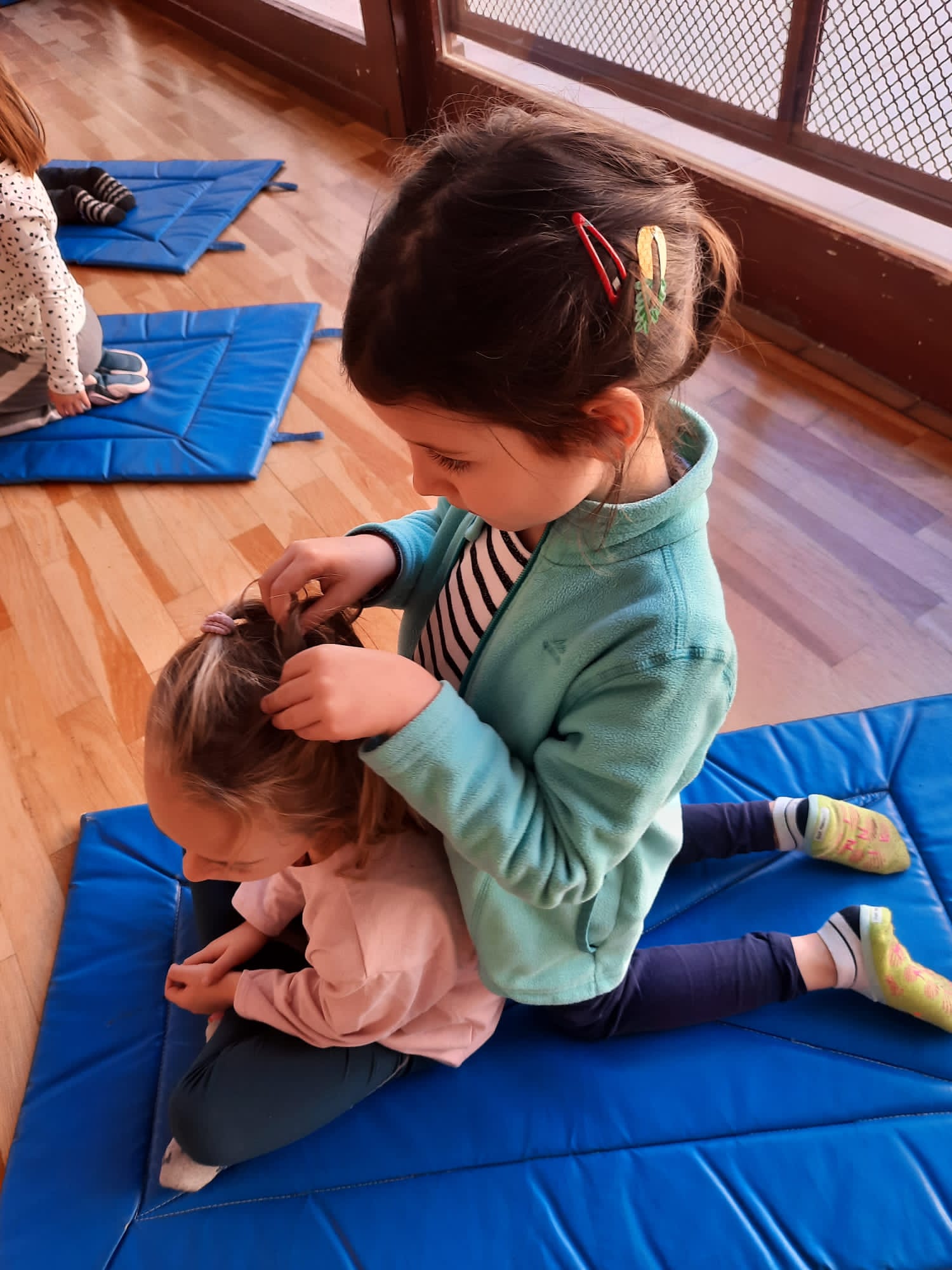 Dopo aver giocato intensamente ci rilassiamo sui materassini. Un massaggio finale aiuta a scaricare le tensioni e ci riporta alla calma.